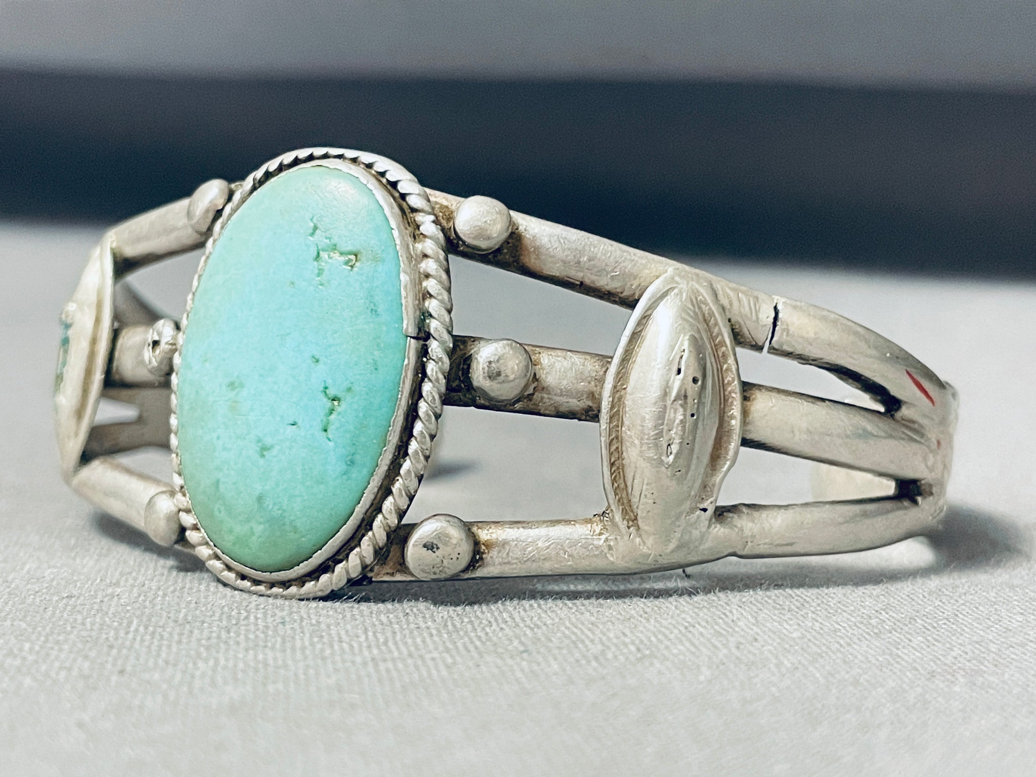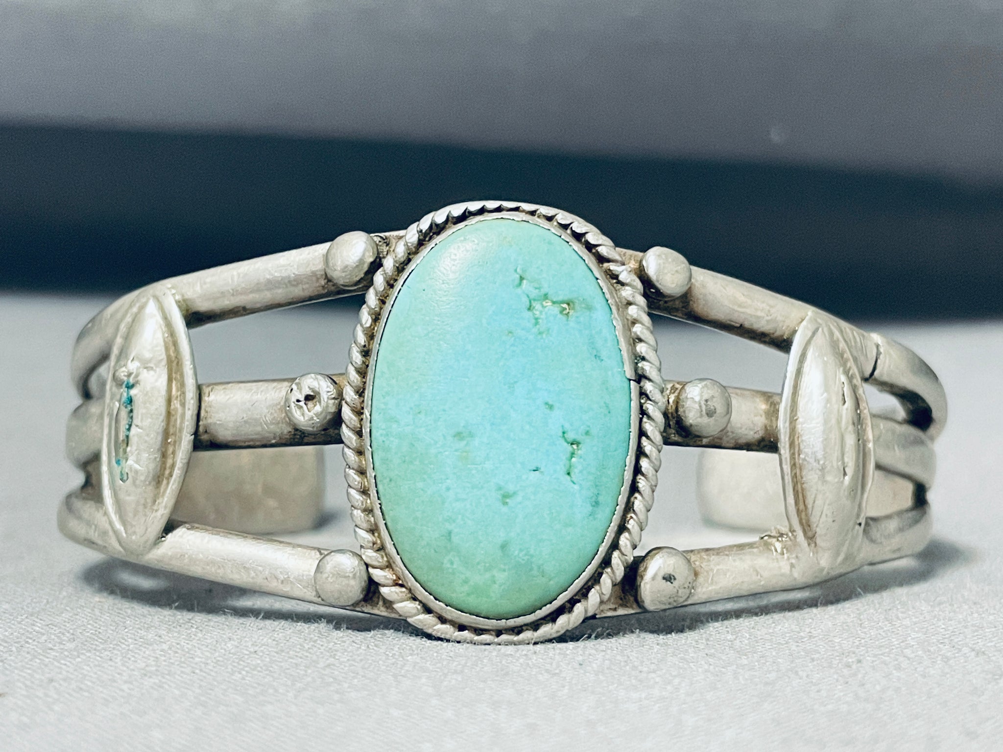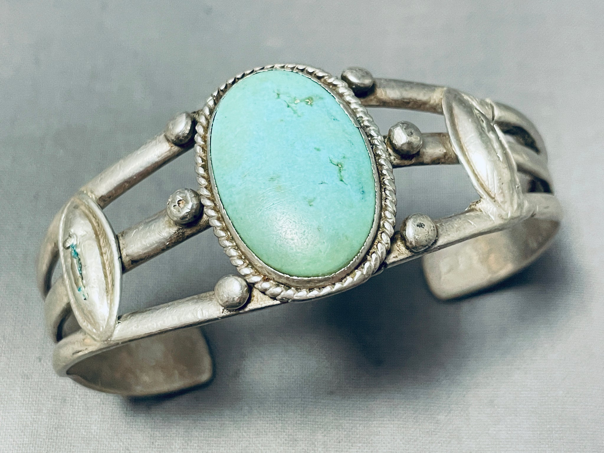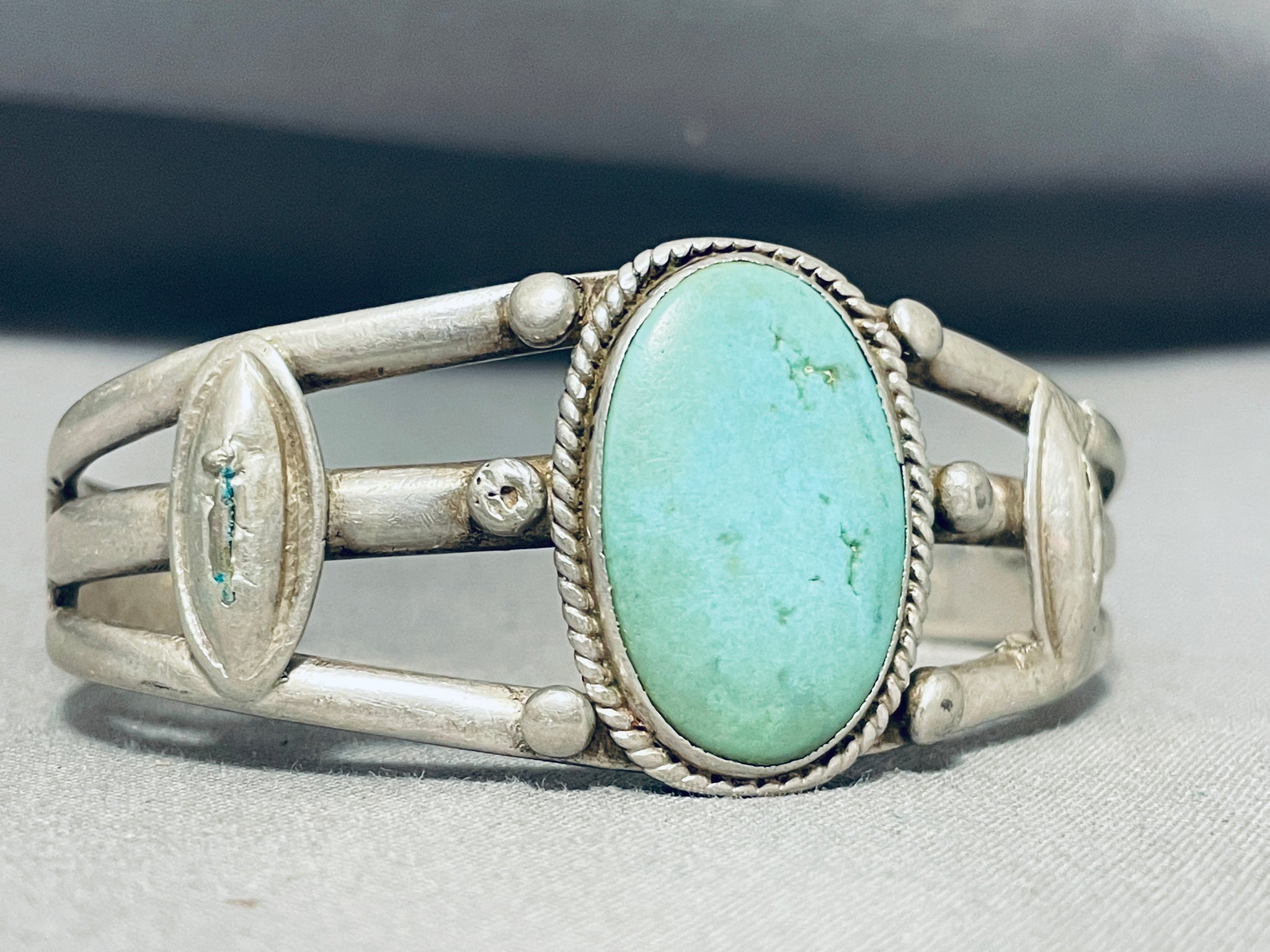 Captivating Vintage Native American Navajo Pilot Mountain Turquoise Sterling Silver Bracelet