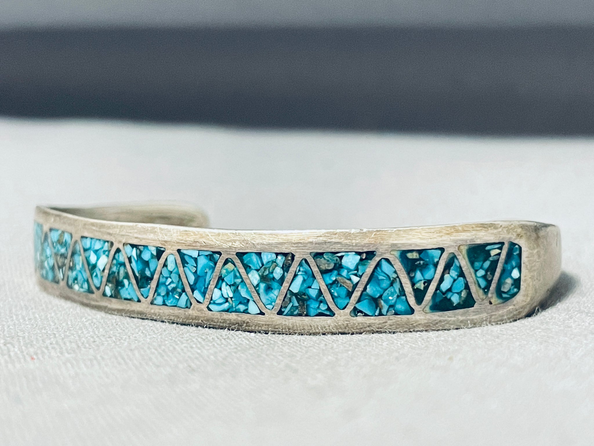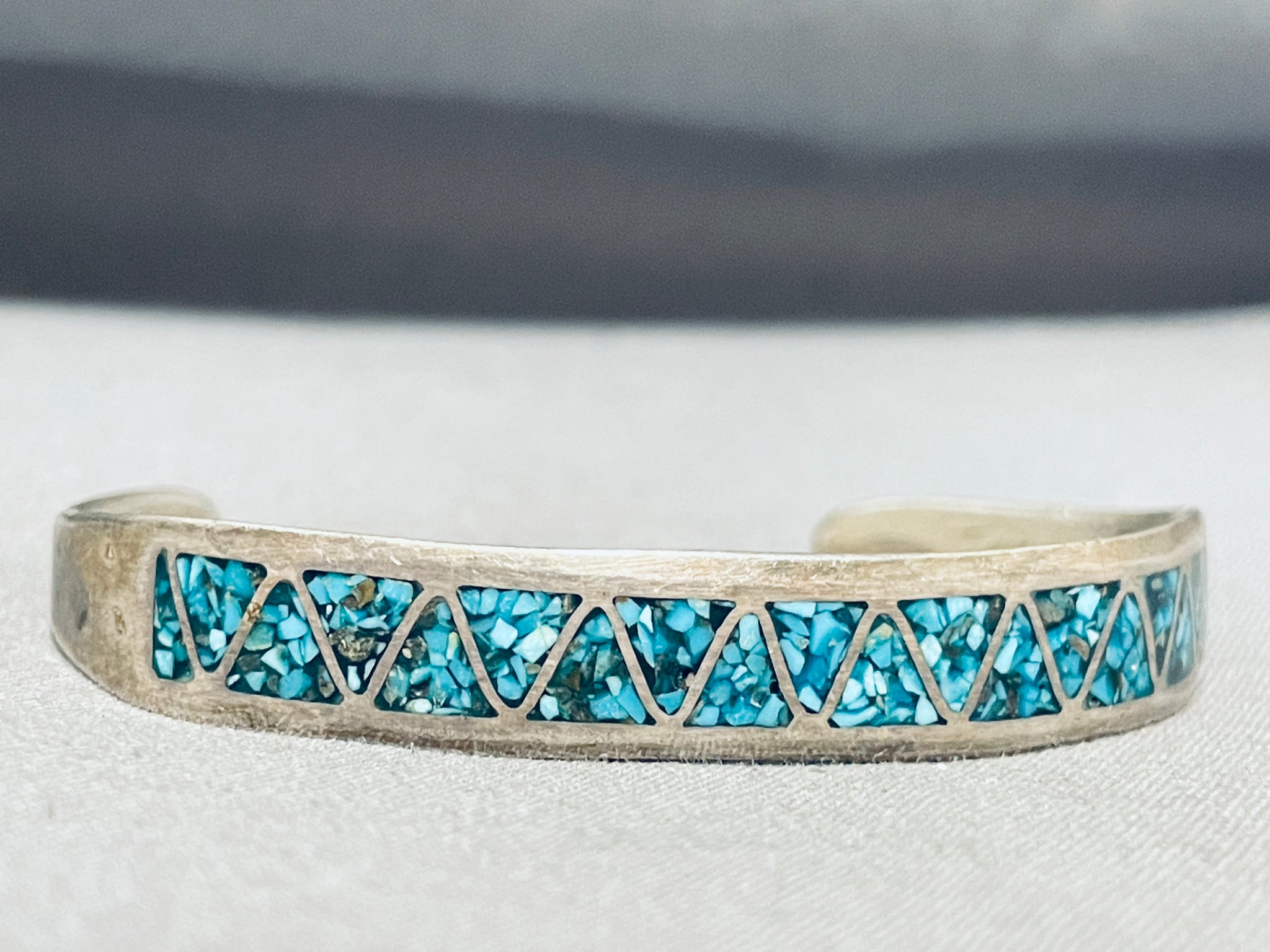 Captivating Vintage Native American Navajo Turquoise Chip Inlay Sterling Silver Bracelet