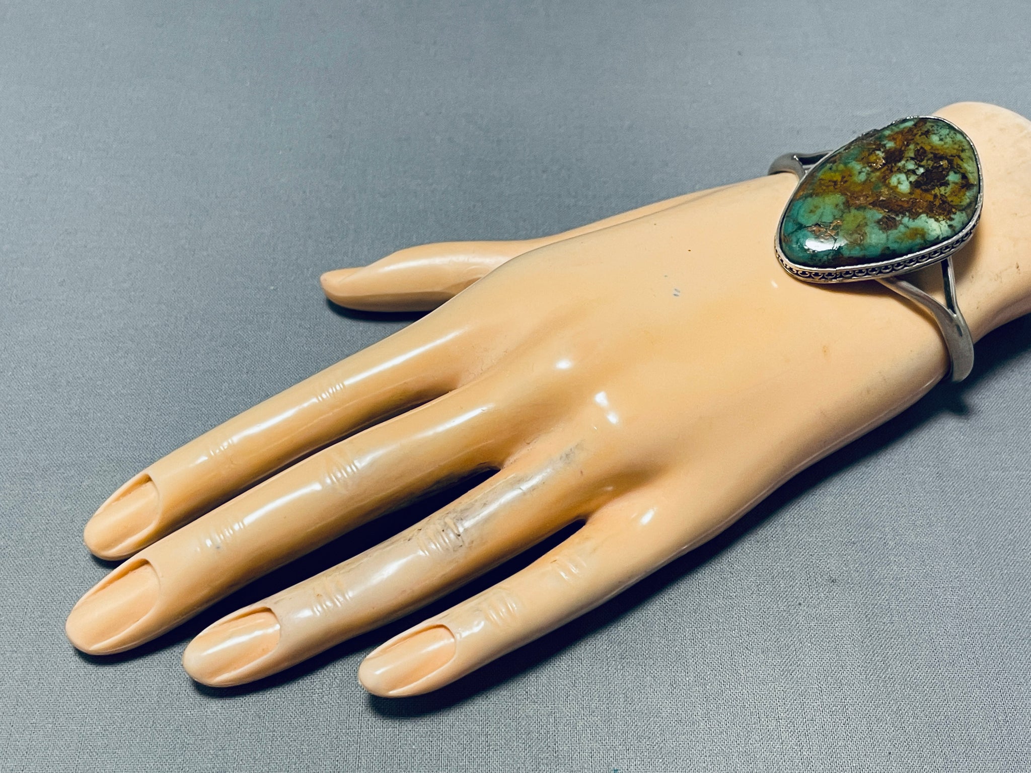 Captivating Vintage Native American Zuni Boulder Royston Turquoise Sterling Silver Bracelet