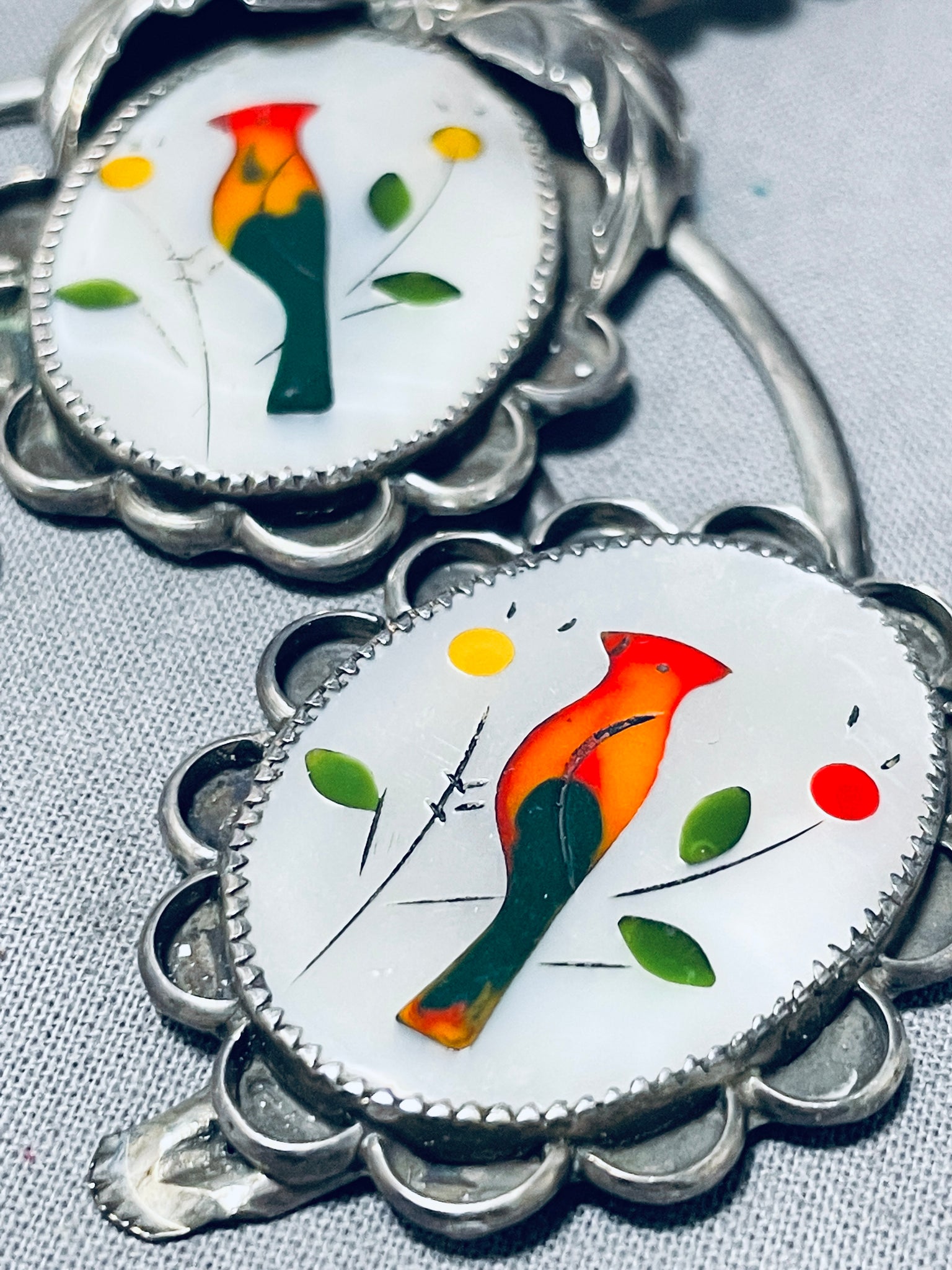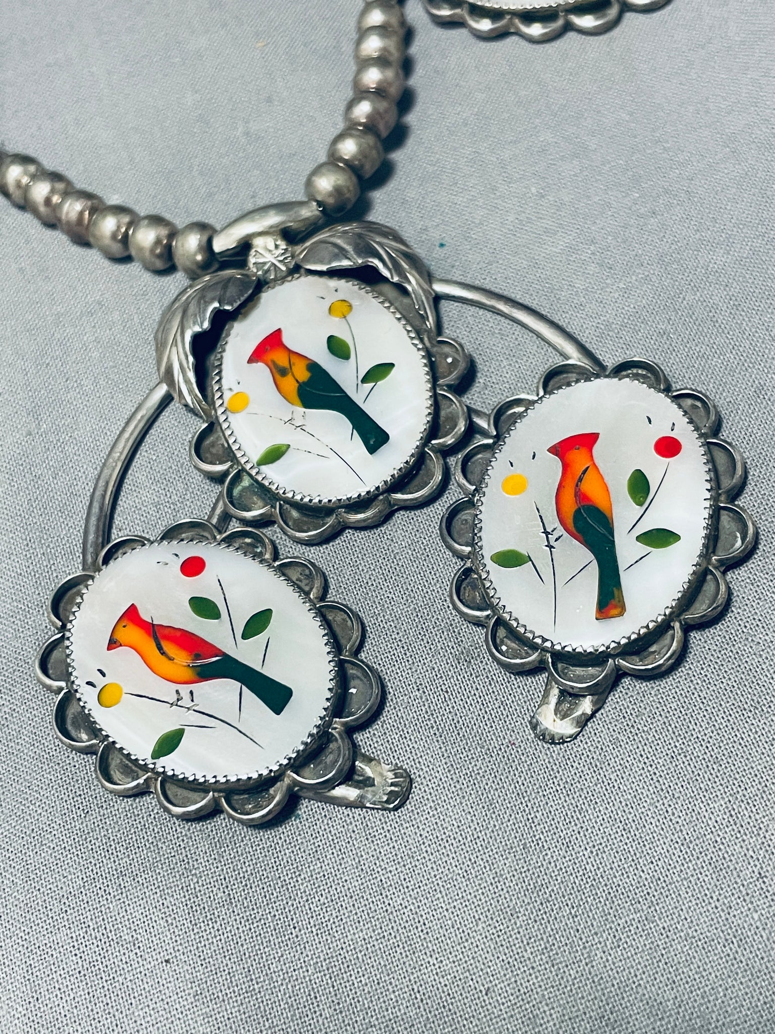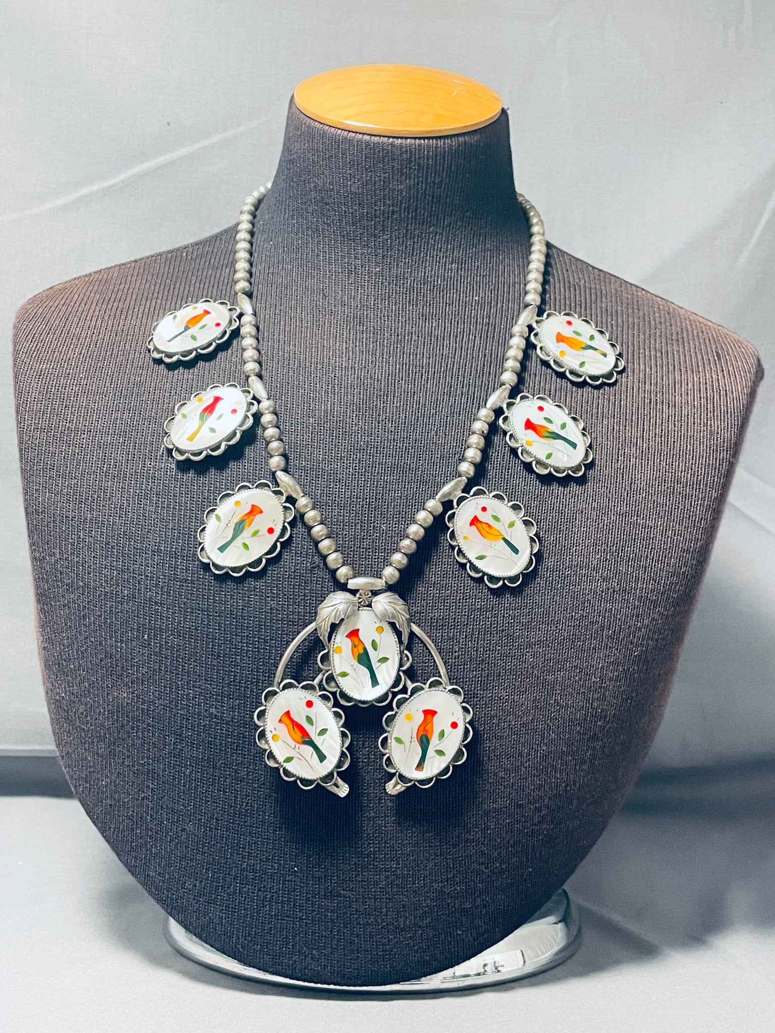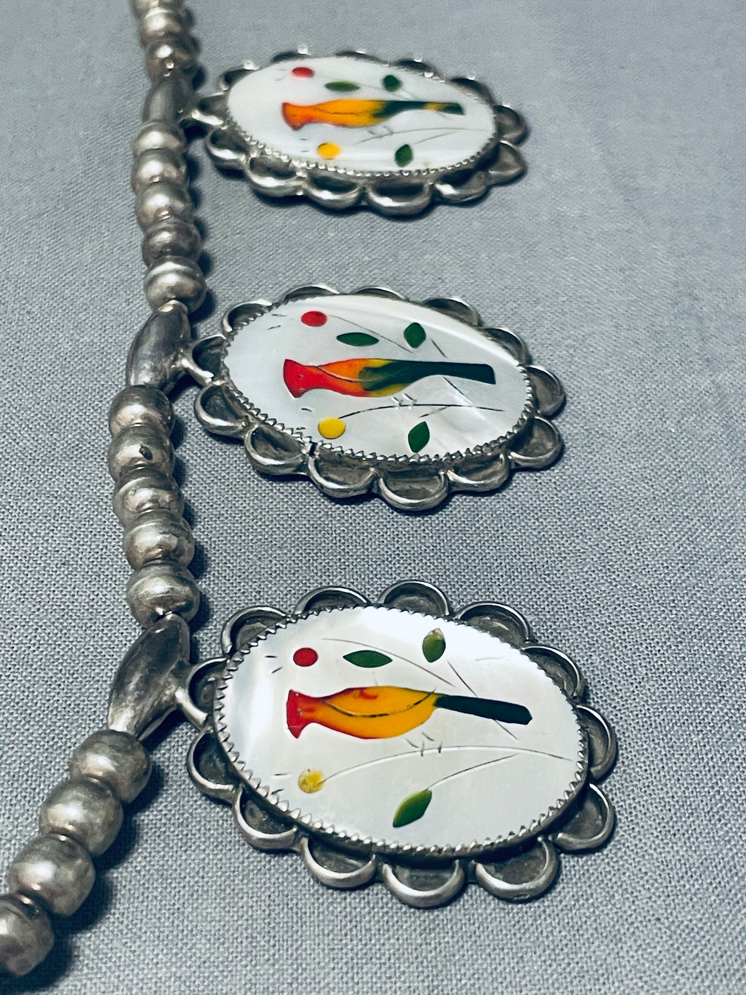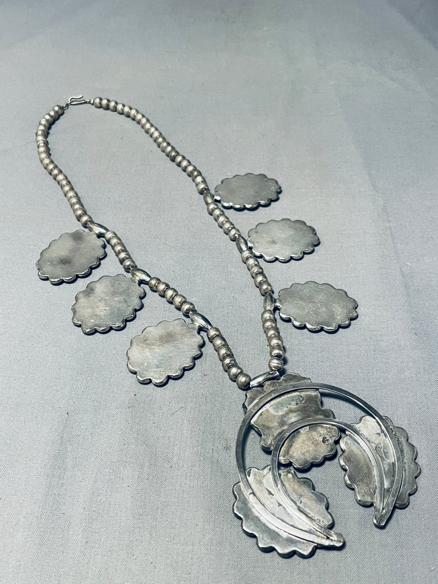 Cardinal Vintage Native American Zuni Sterling Silver Squash Blossom Necklace