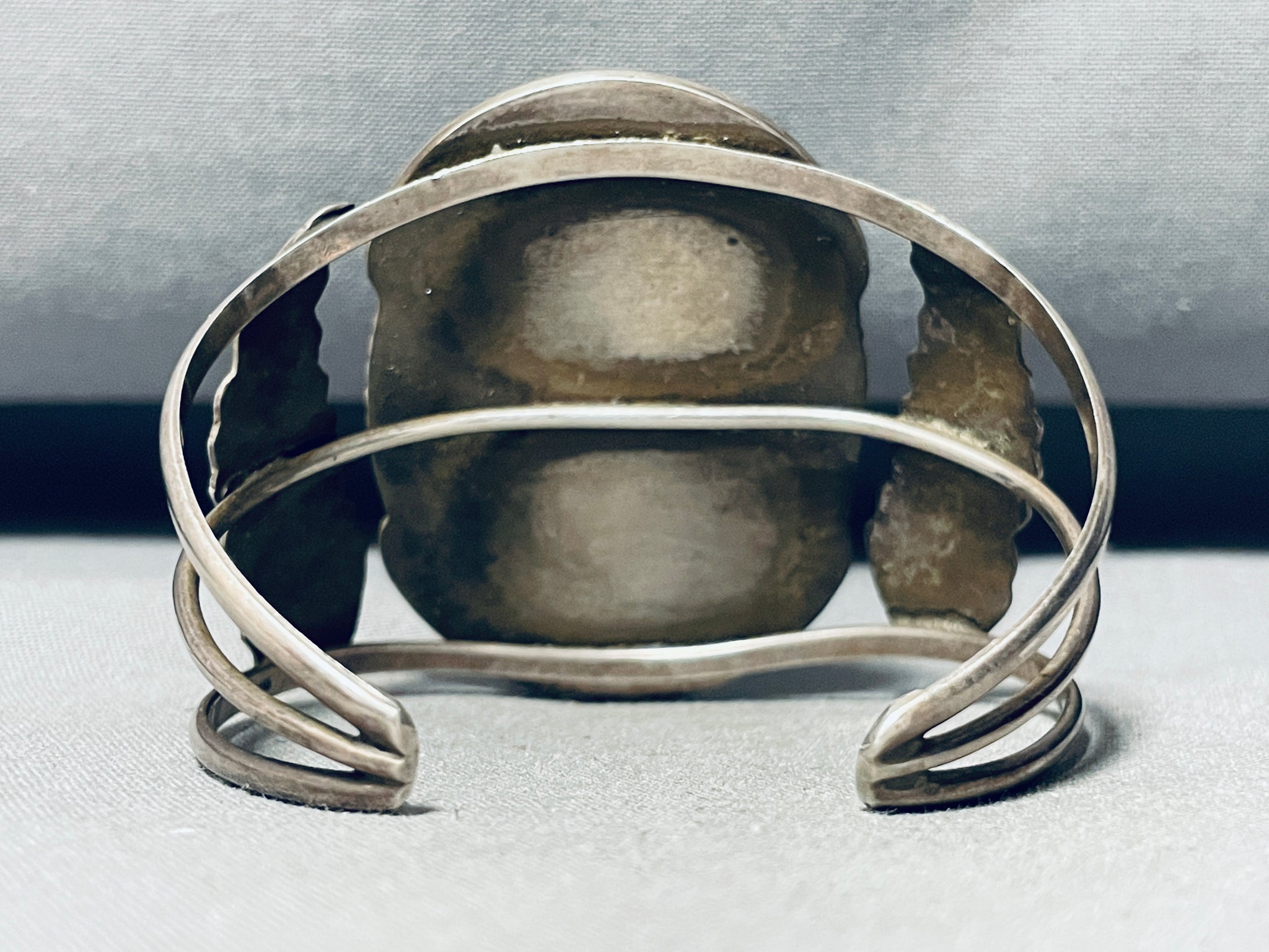 Carmel Jasper!! Vintage Native American Navajo Sterling Silver Leaf Bracelet Cuff