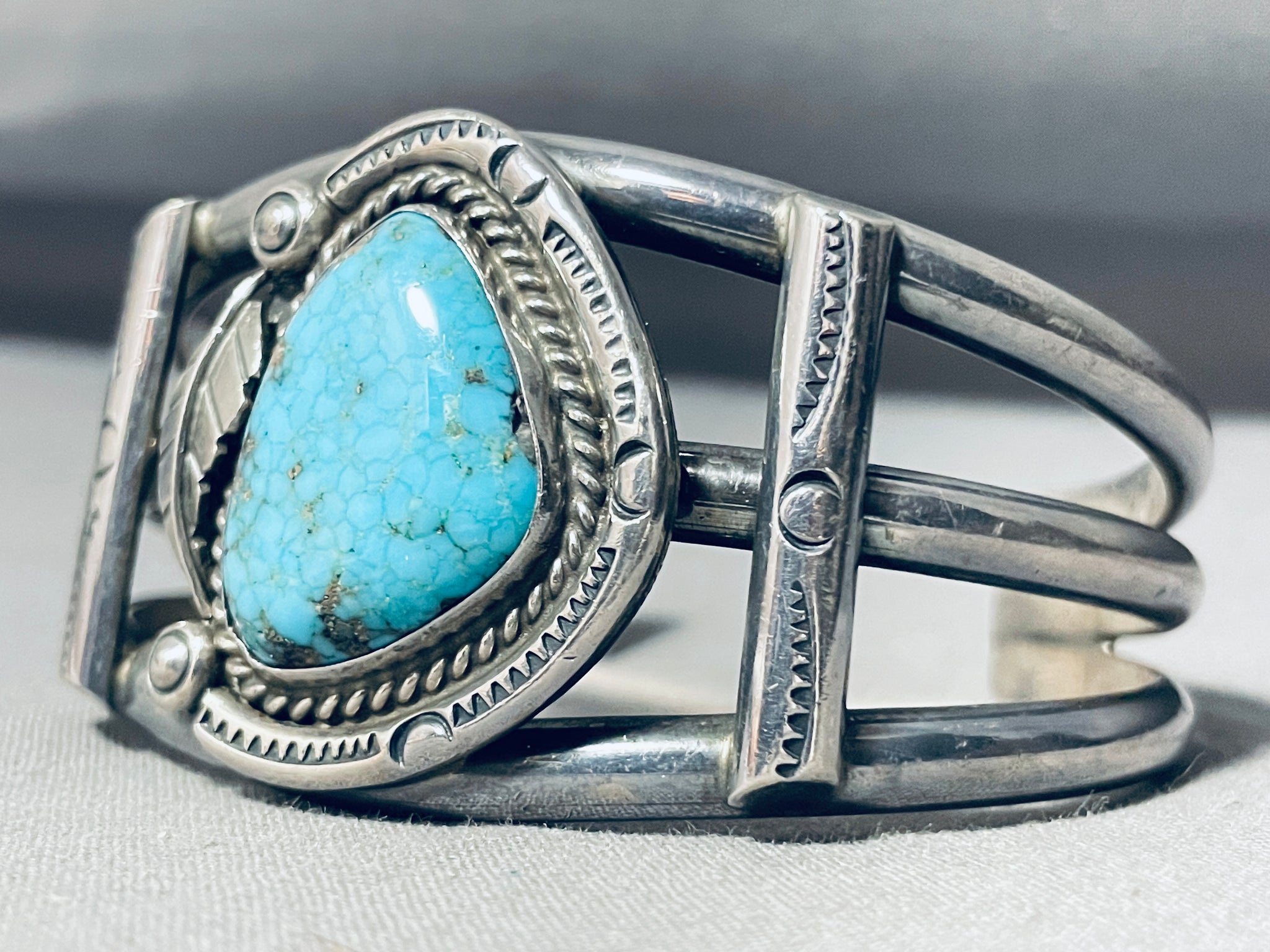 Chapo Family Vintage Native American Navajo Turquoise Sterling Silver Bracelet