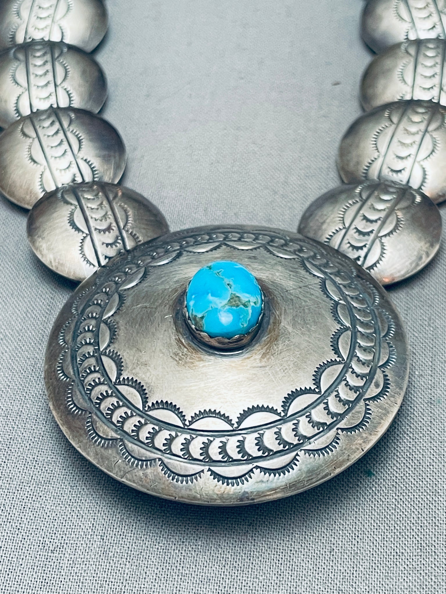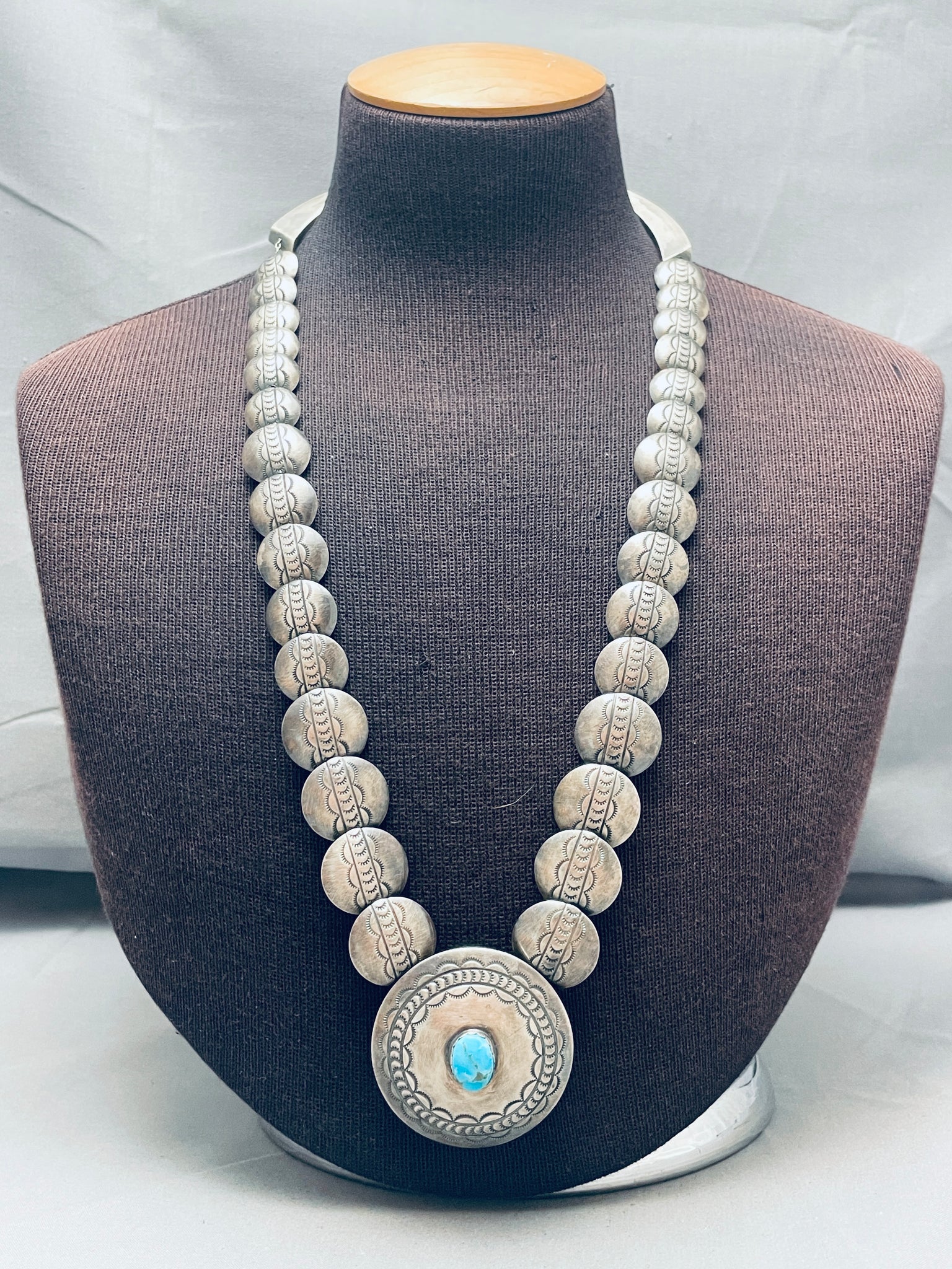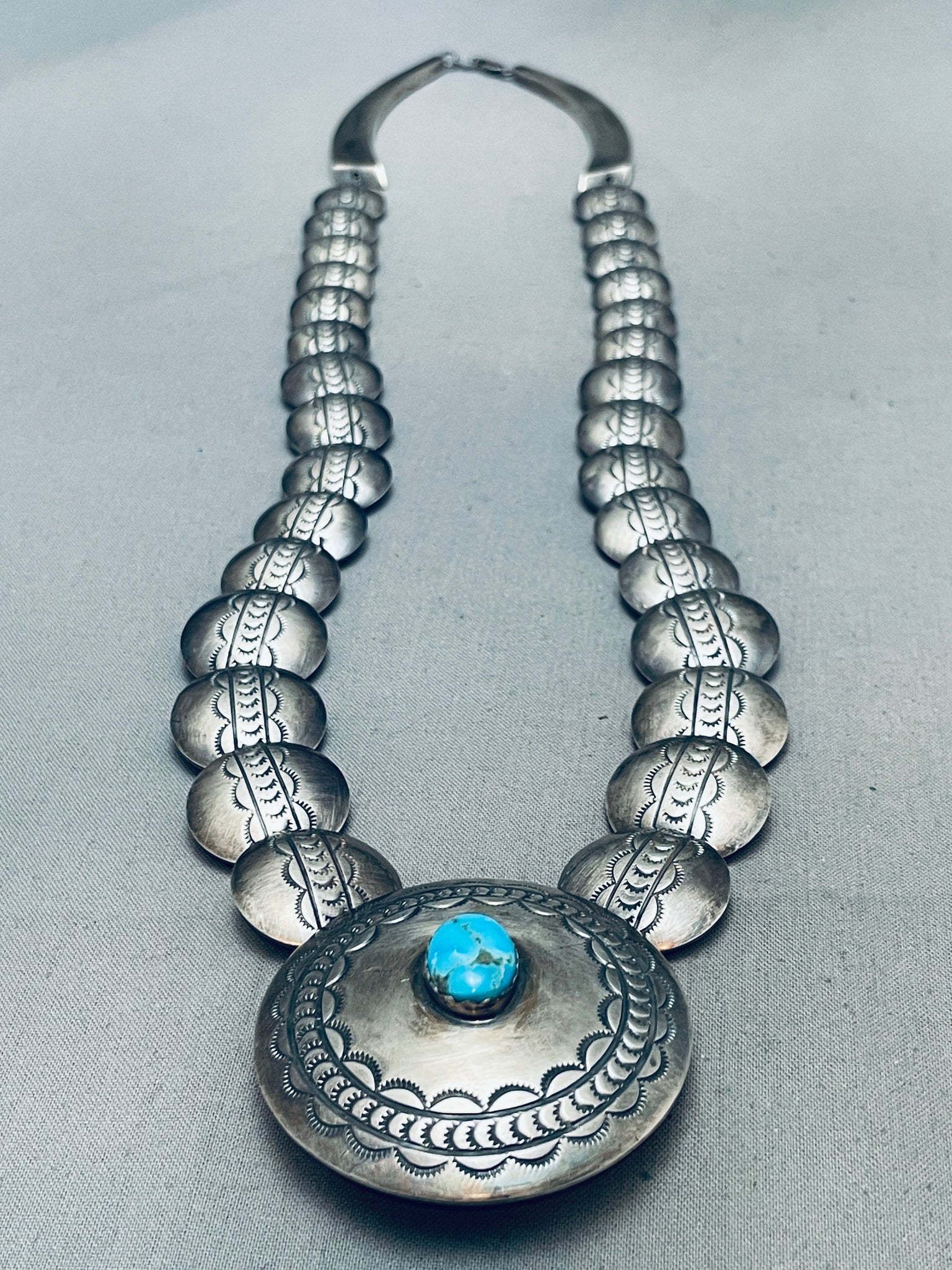 Charlie Bowie Rare Vintage Native American Navajo Turquoise Sterling Silver Necklace