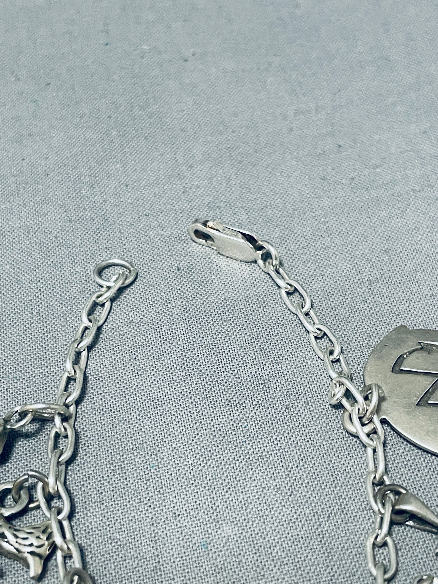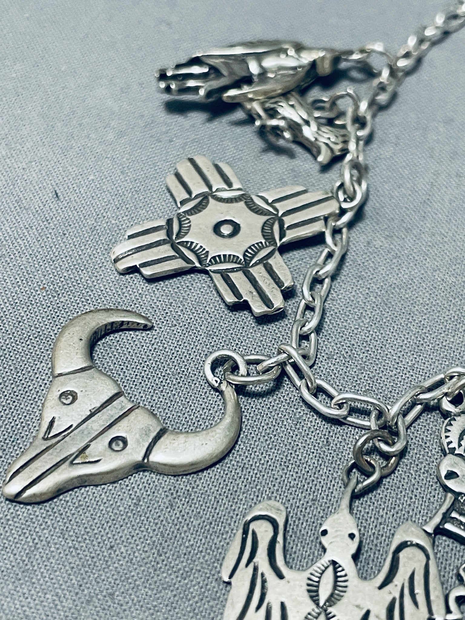 Charming Vintage Native American Navajo Sterling Silver Bear Zia Bird Roadrunner Charms Bracelet