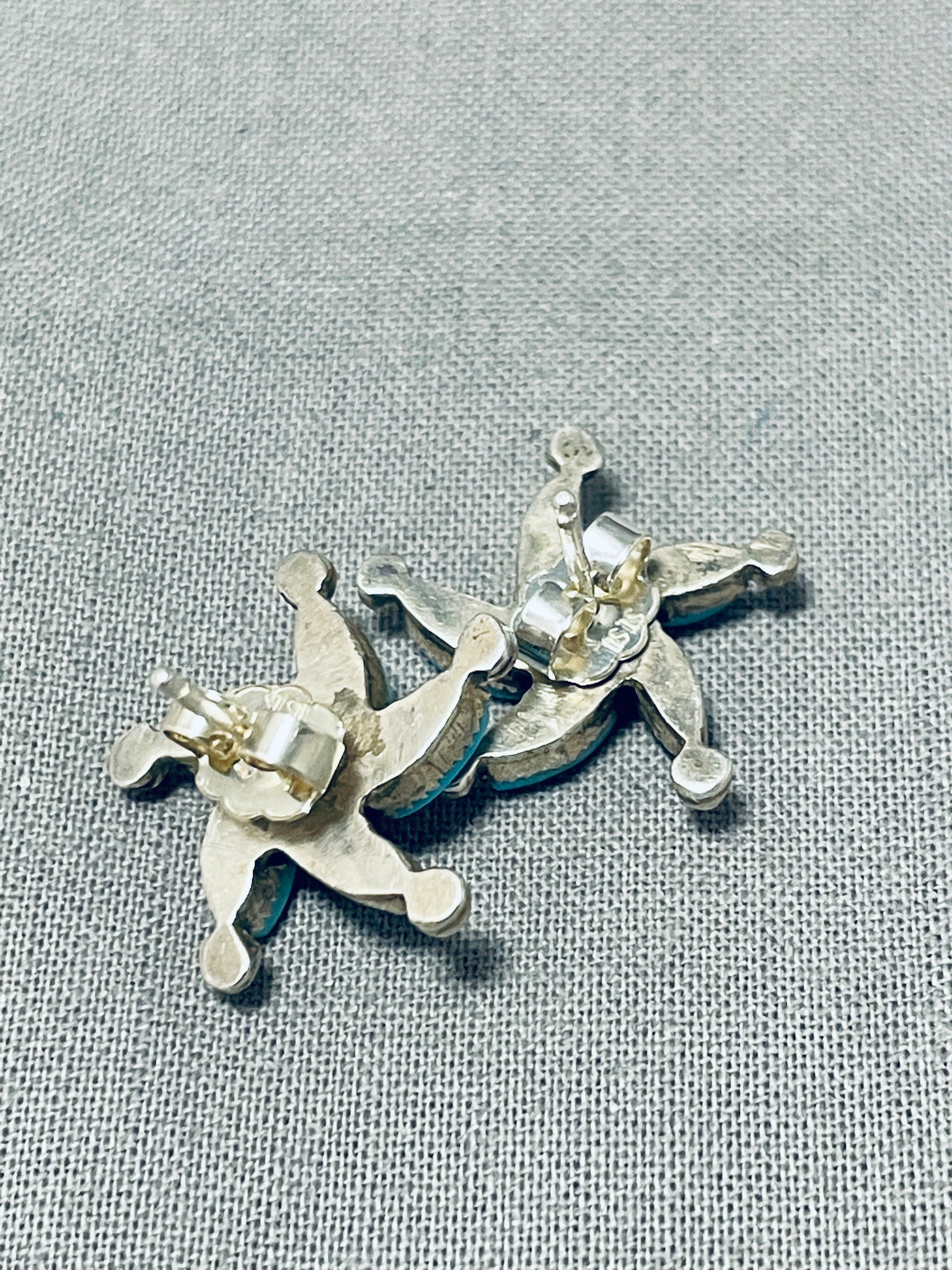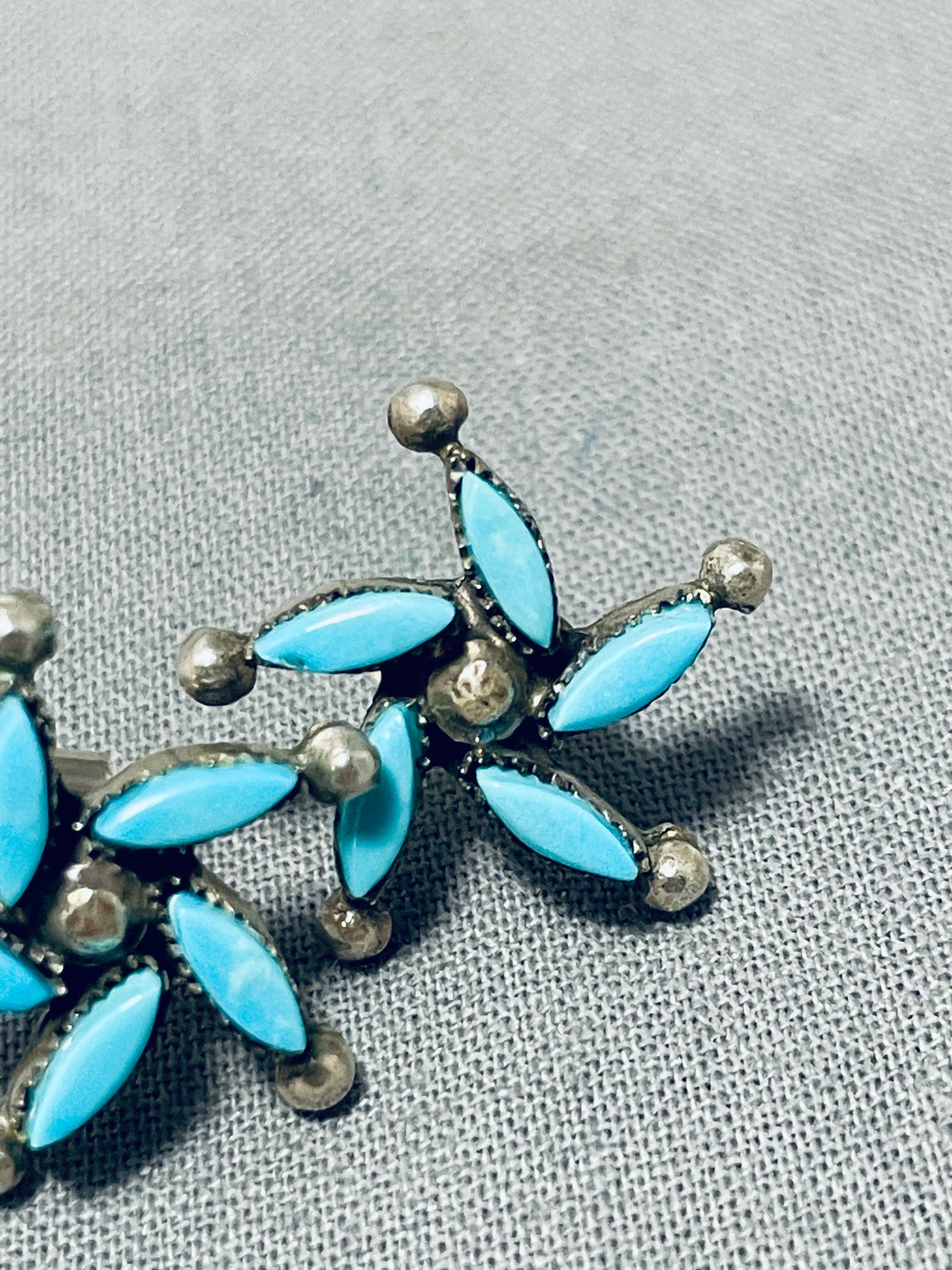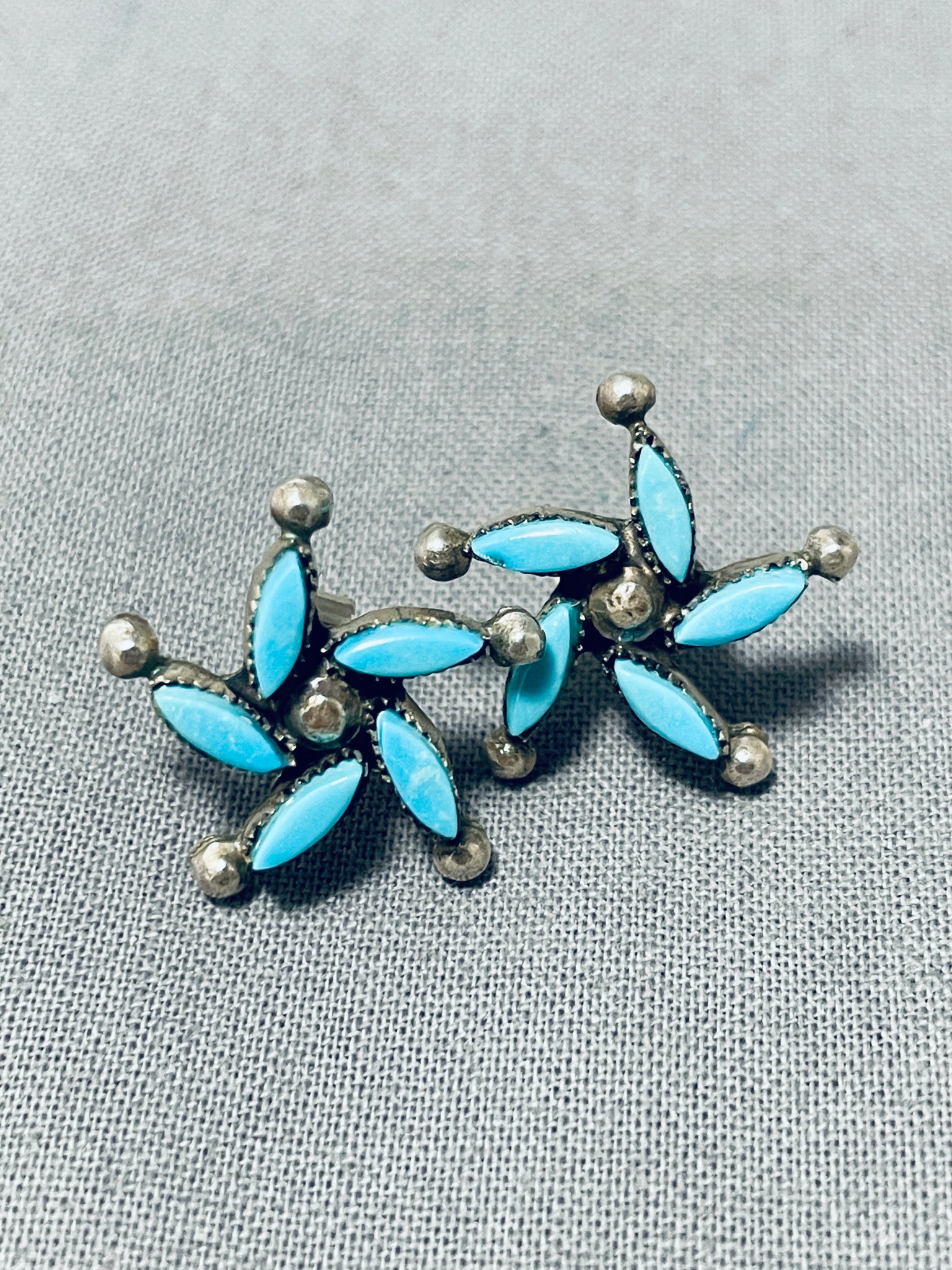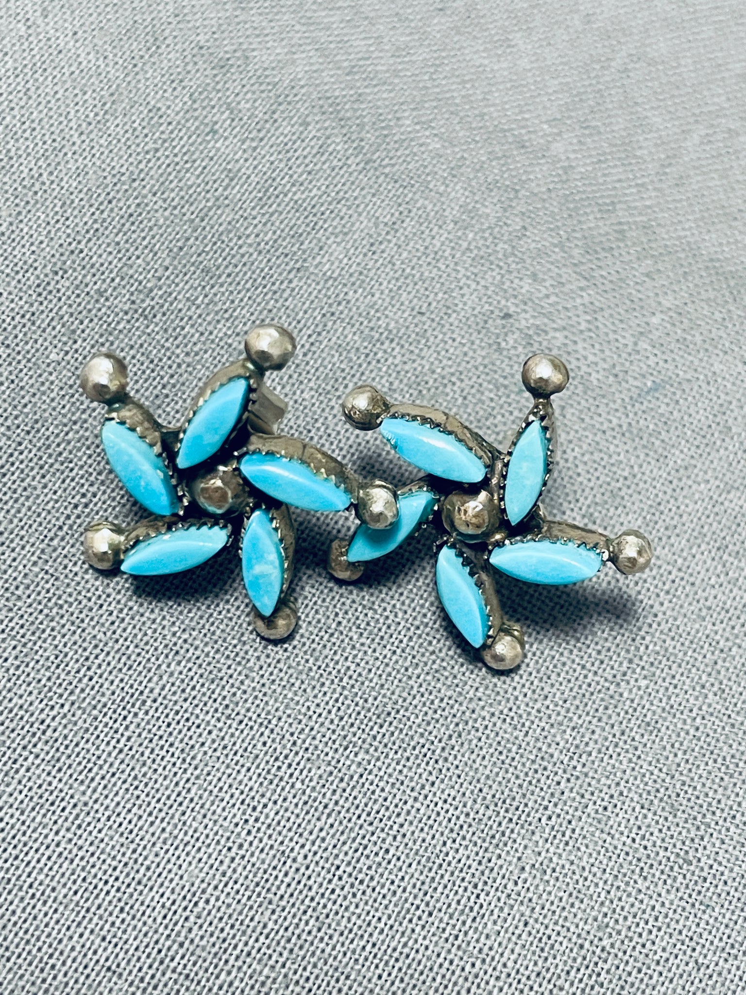 Charming Vintage Native American Zuni Blue Gem Turquoise Sterling Silver Earrings
