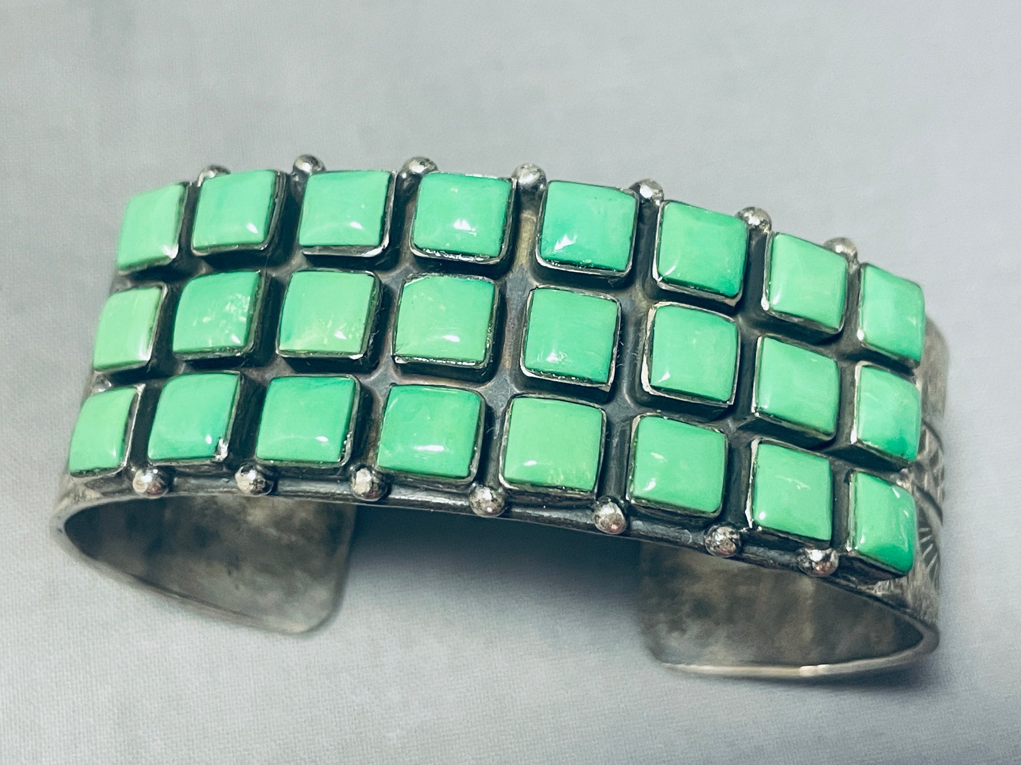 Checkerboard Gaspeite!! Vintage Native American Navajo Sterling Silver Bracelet Cuff