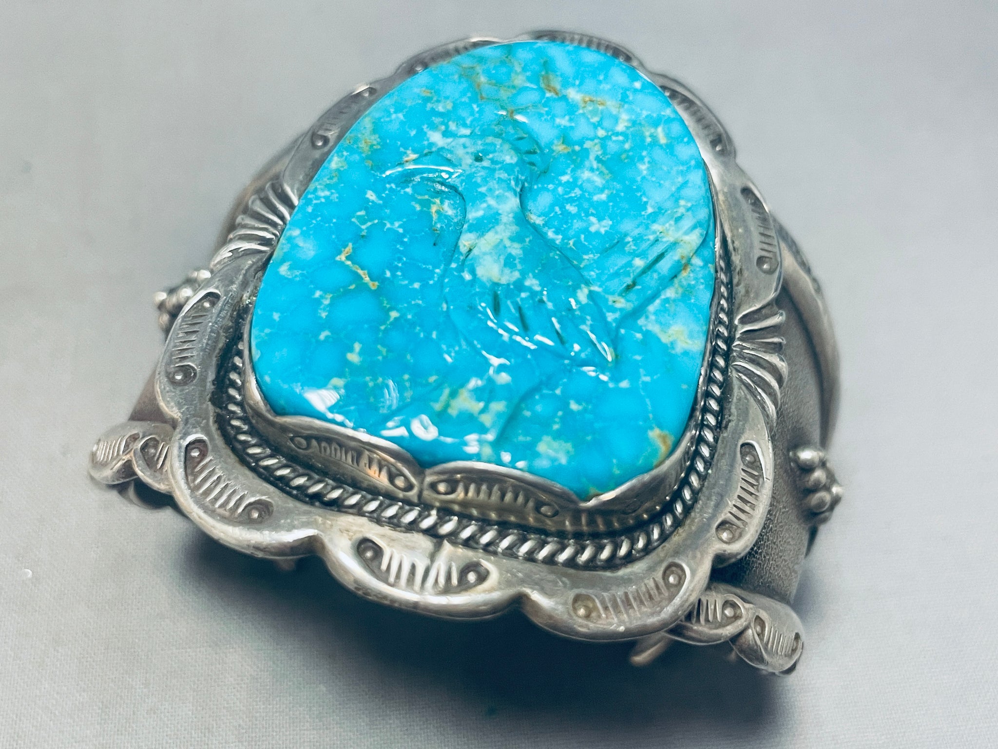Chei Elmo Roadrunner!! Vintage Native American Navajo Turquoise Sterling Silver Bracelet