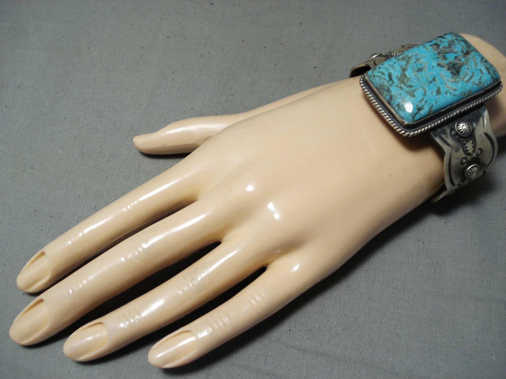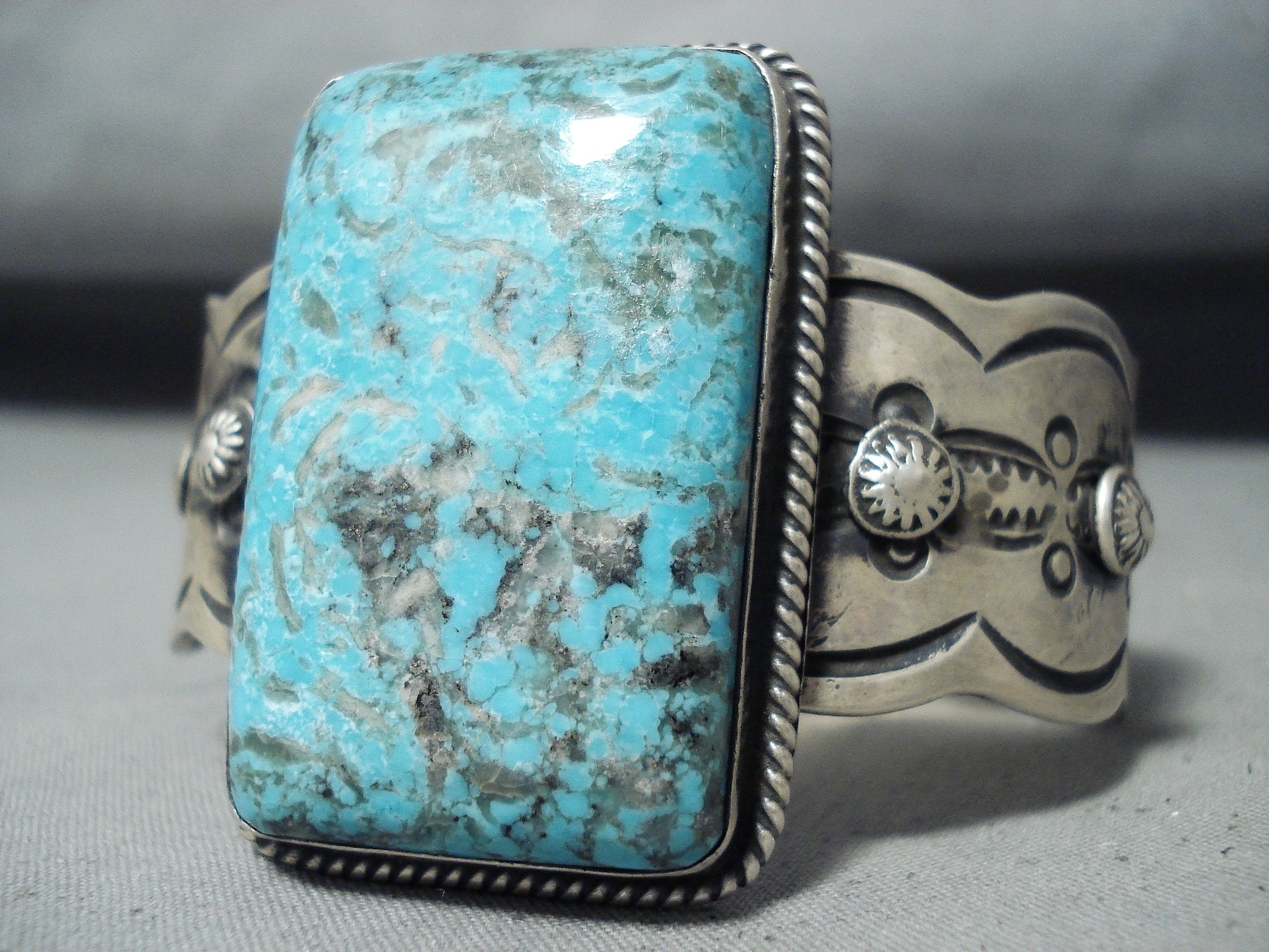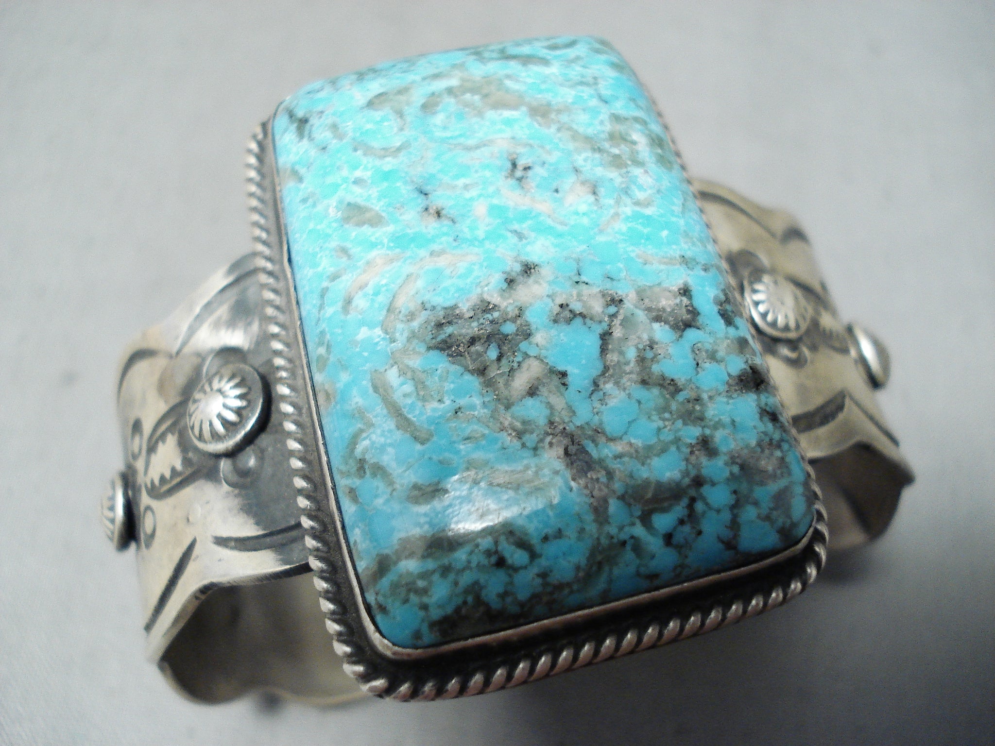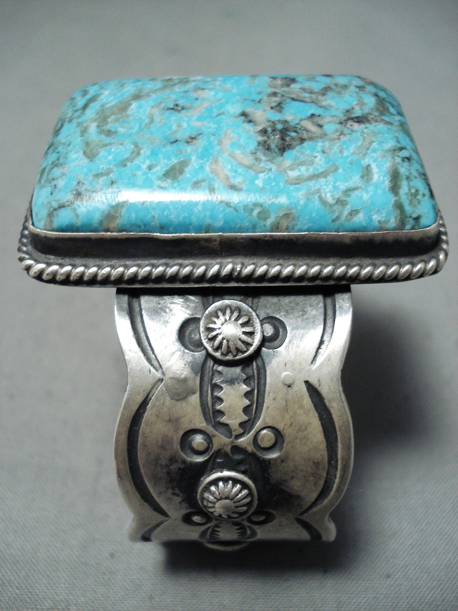 Chimney Butte Amazing Native American Navajo Pilot Mountain Turquoise Sterling Silver Bracelet