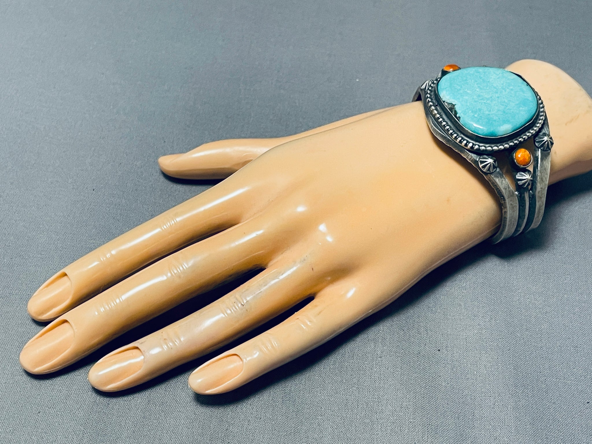 Chimney Butte Native American Navajo Pilot Mountain Turquoise Sterling Silver Bracelet