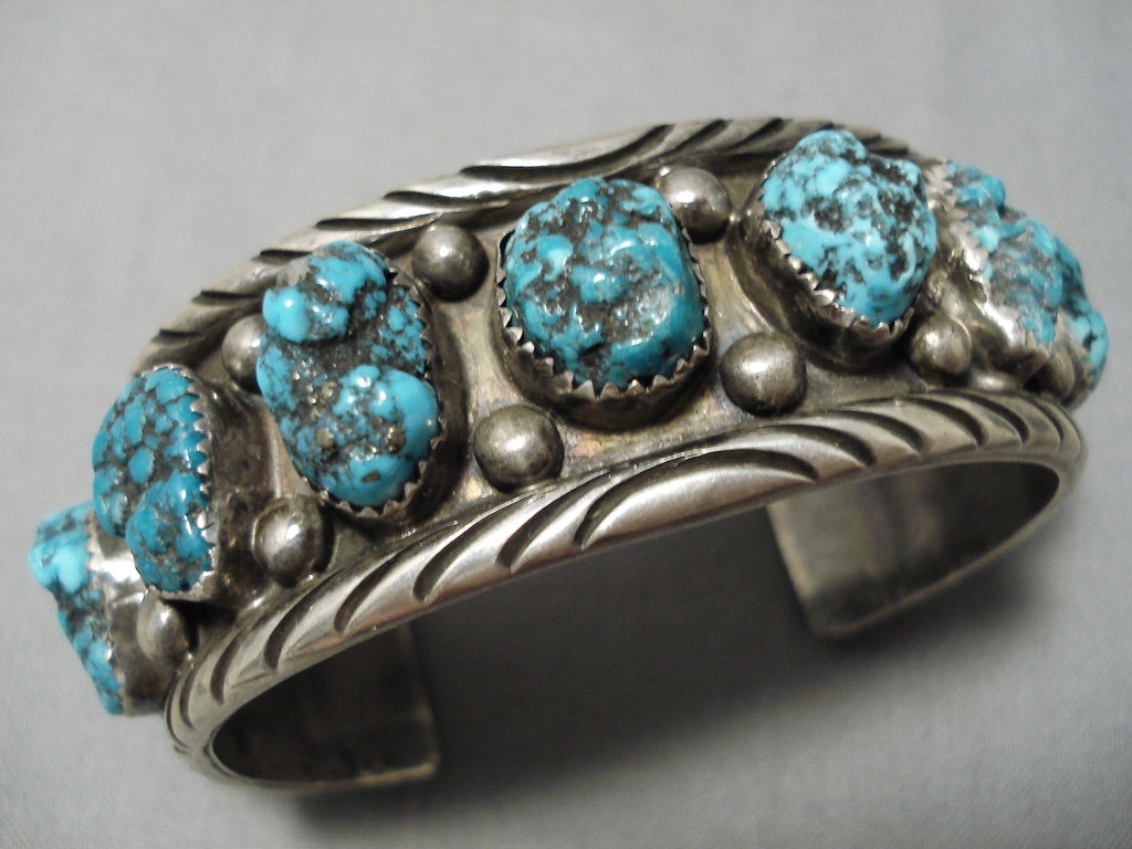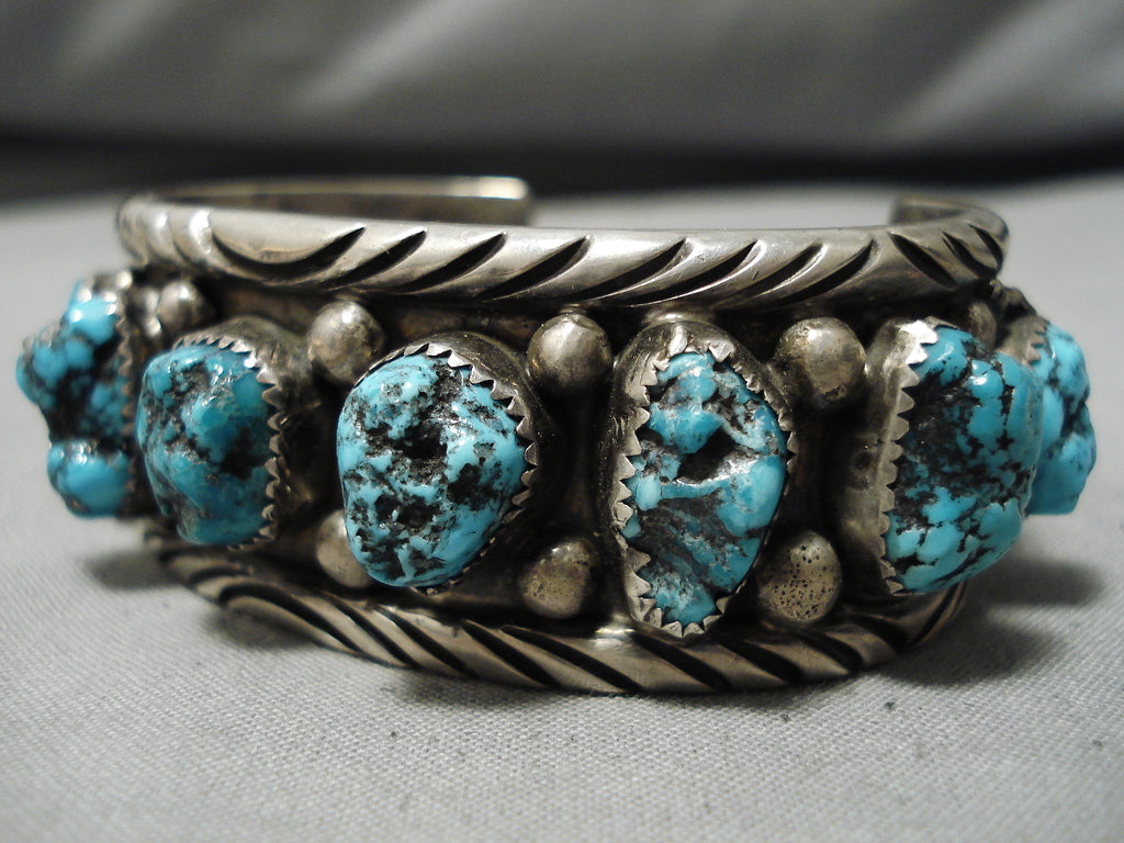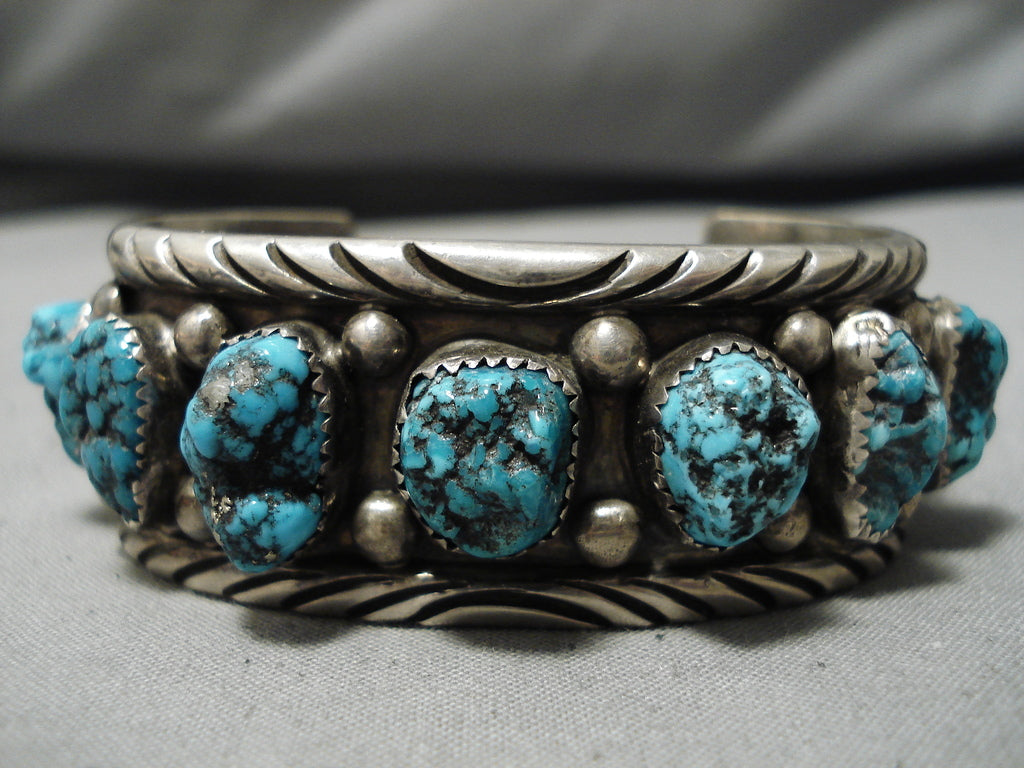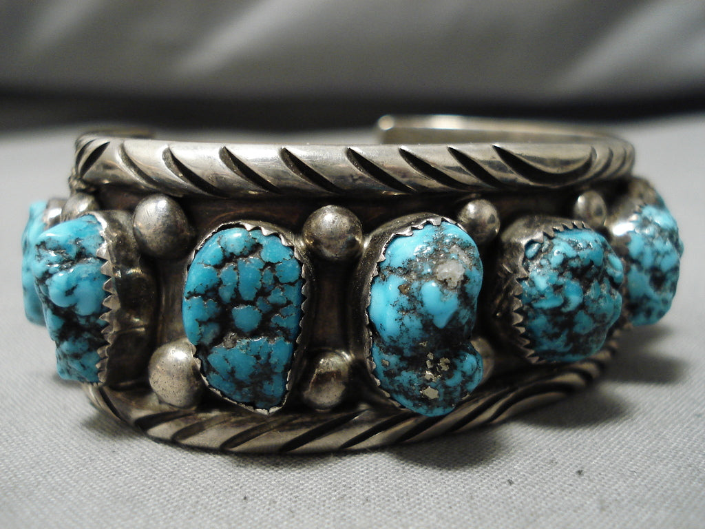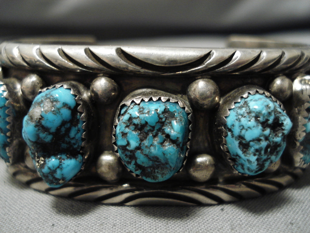Chunky Chunky! Vintage Navajo Turquoise Native American Sterling Silver Bracelet