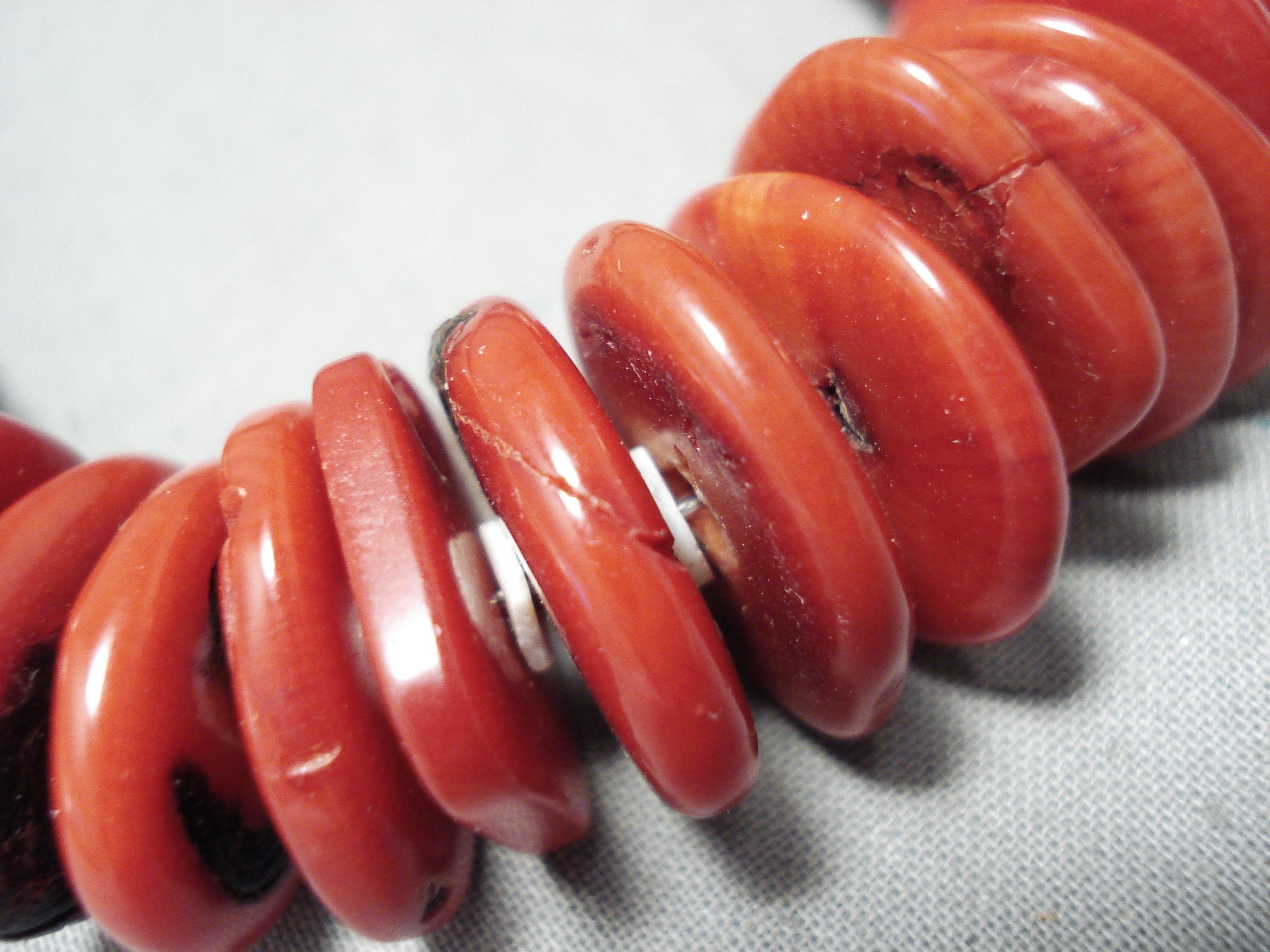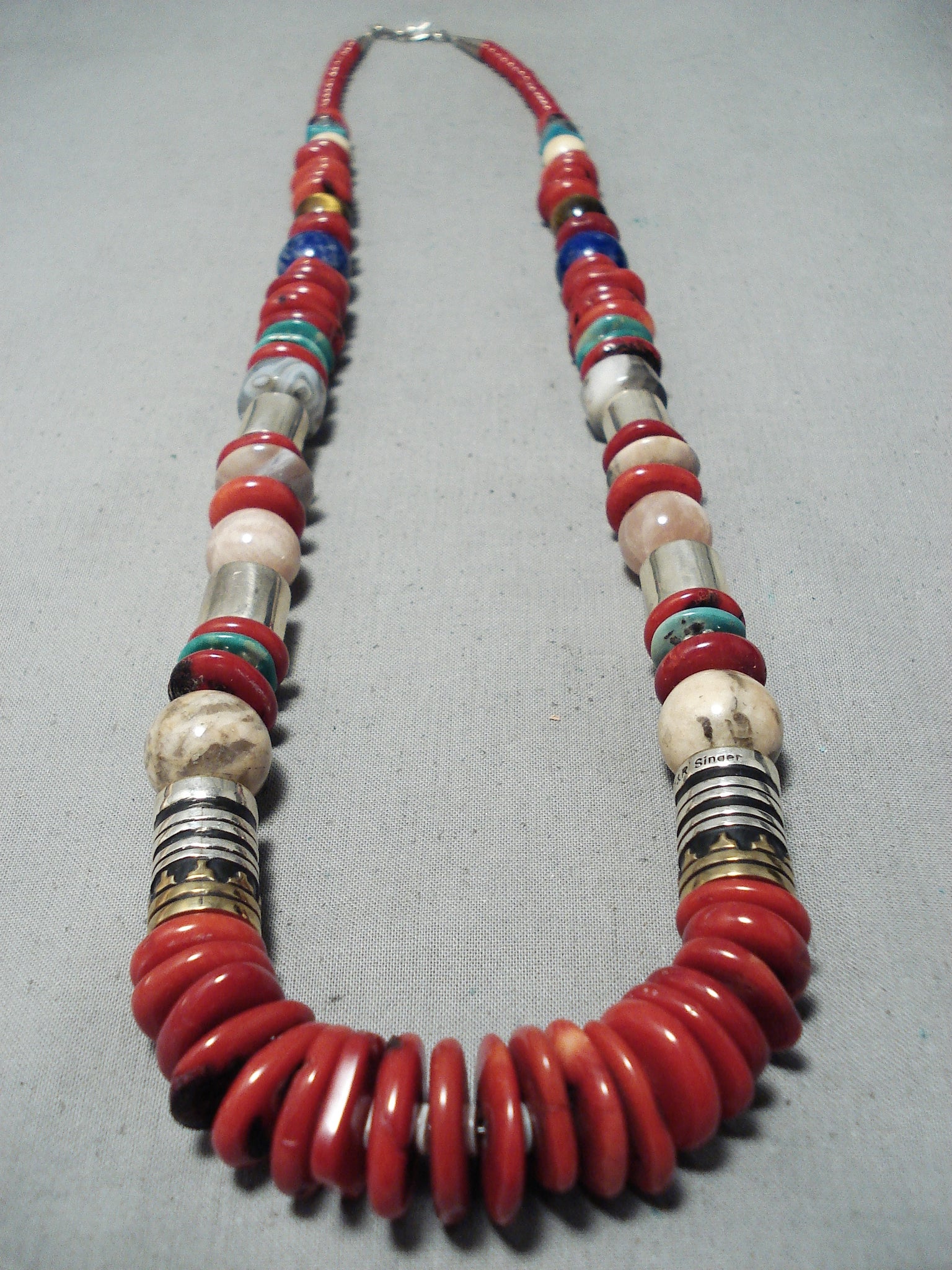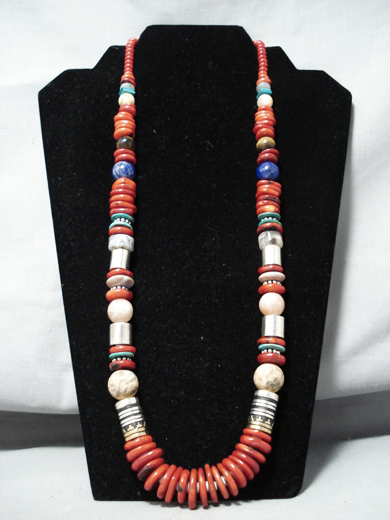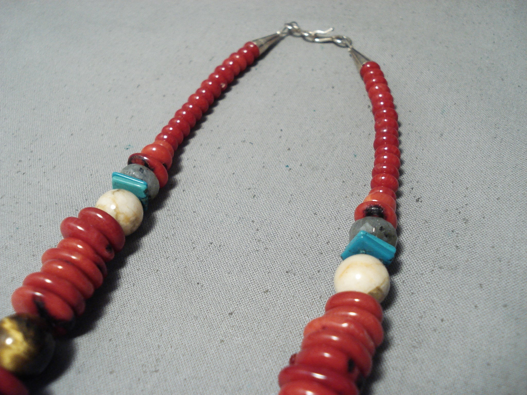 Chunky Coral Native American Navajo Turquoise Singer Sterling Silver Necklace