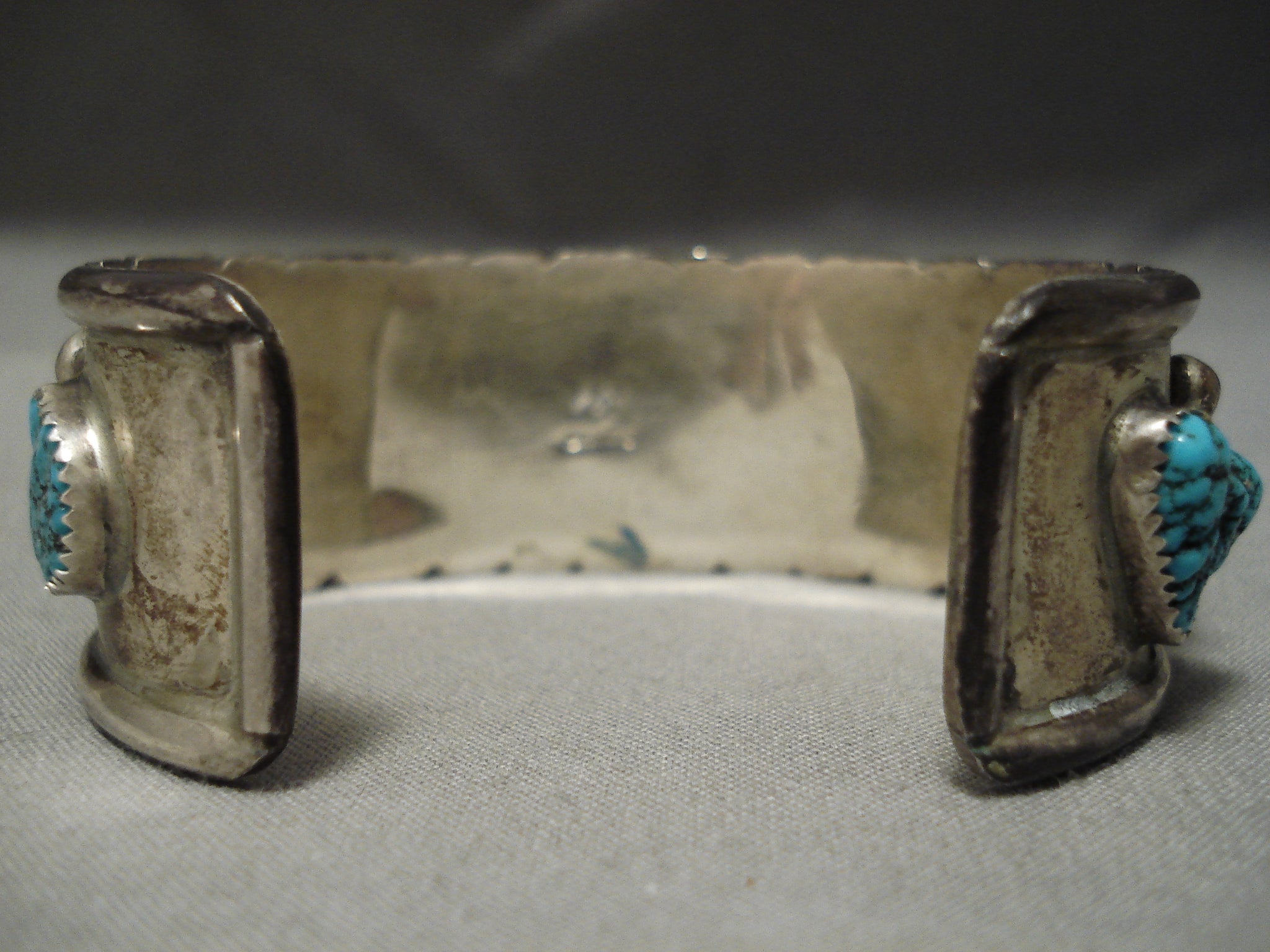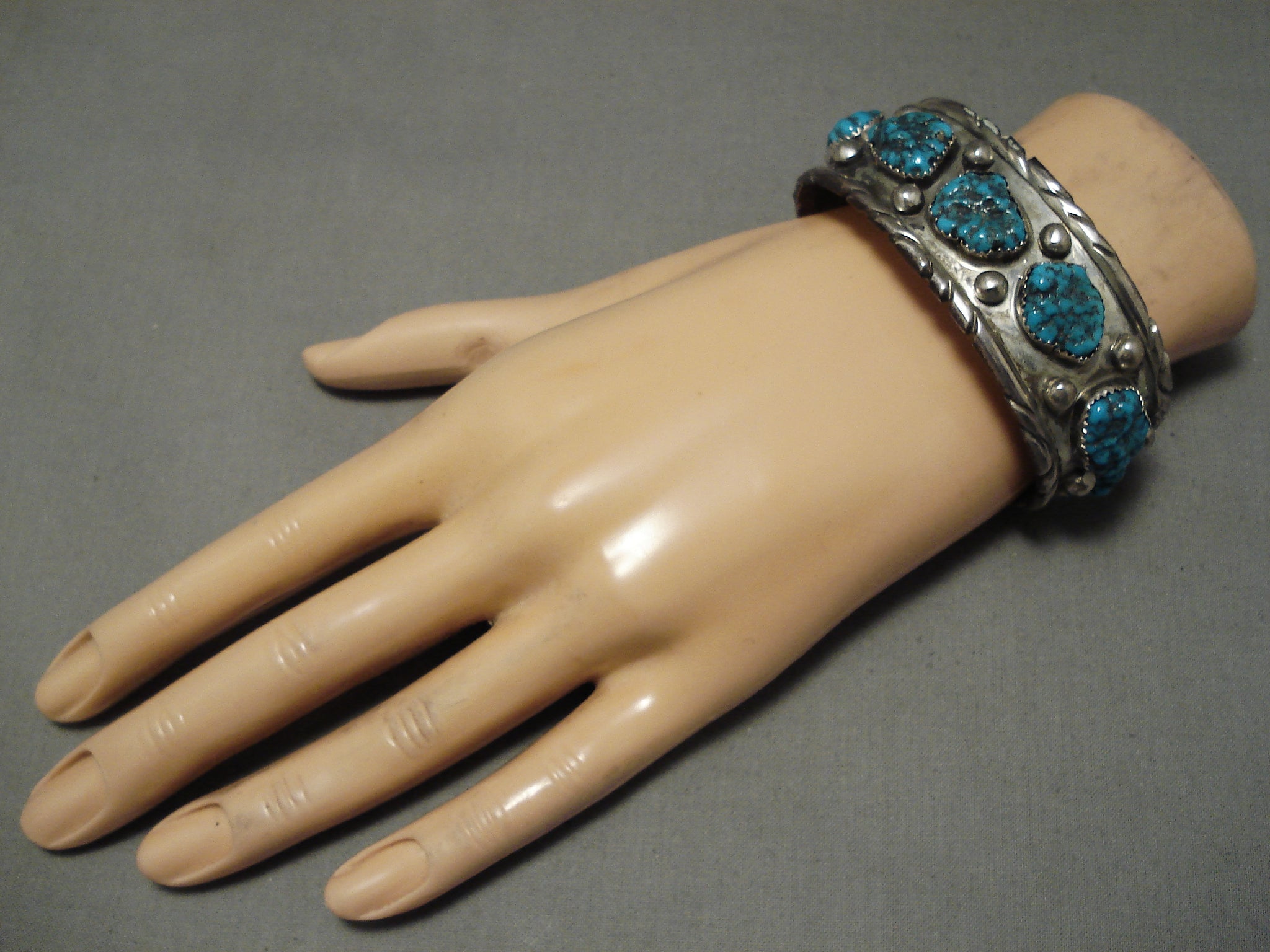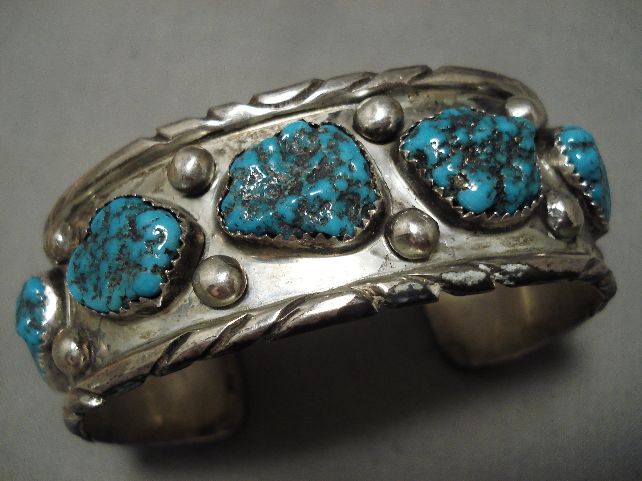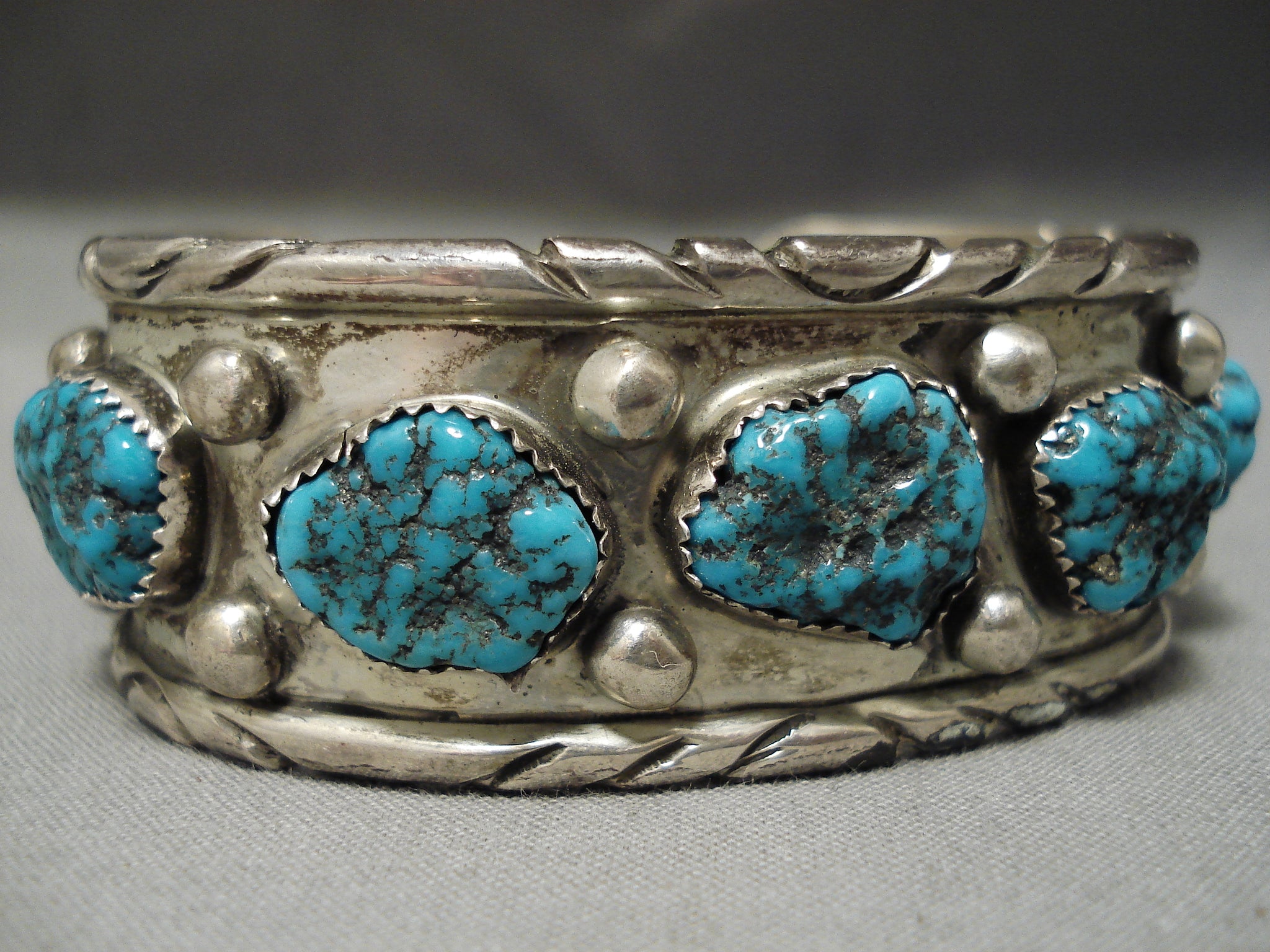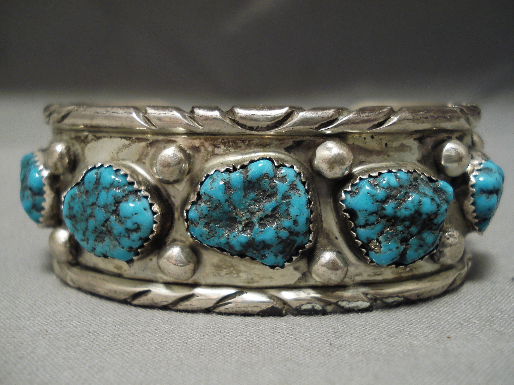 Chunky Dunky Blue Turquoise Vintage Native American Navajo Sterling Silver Bracelet