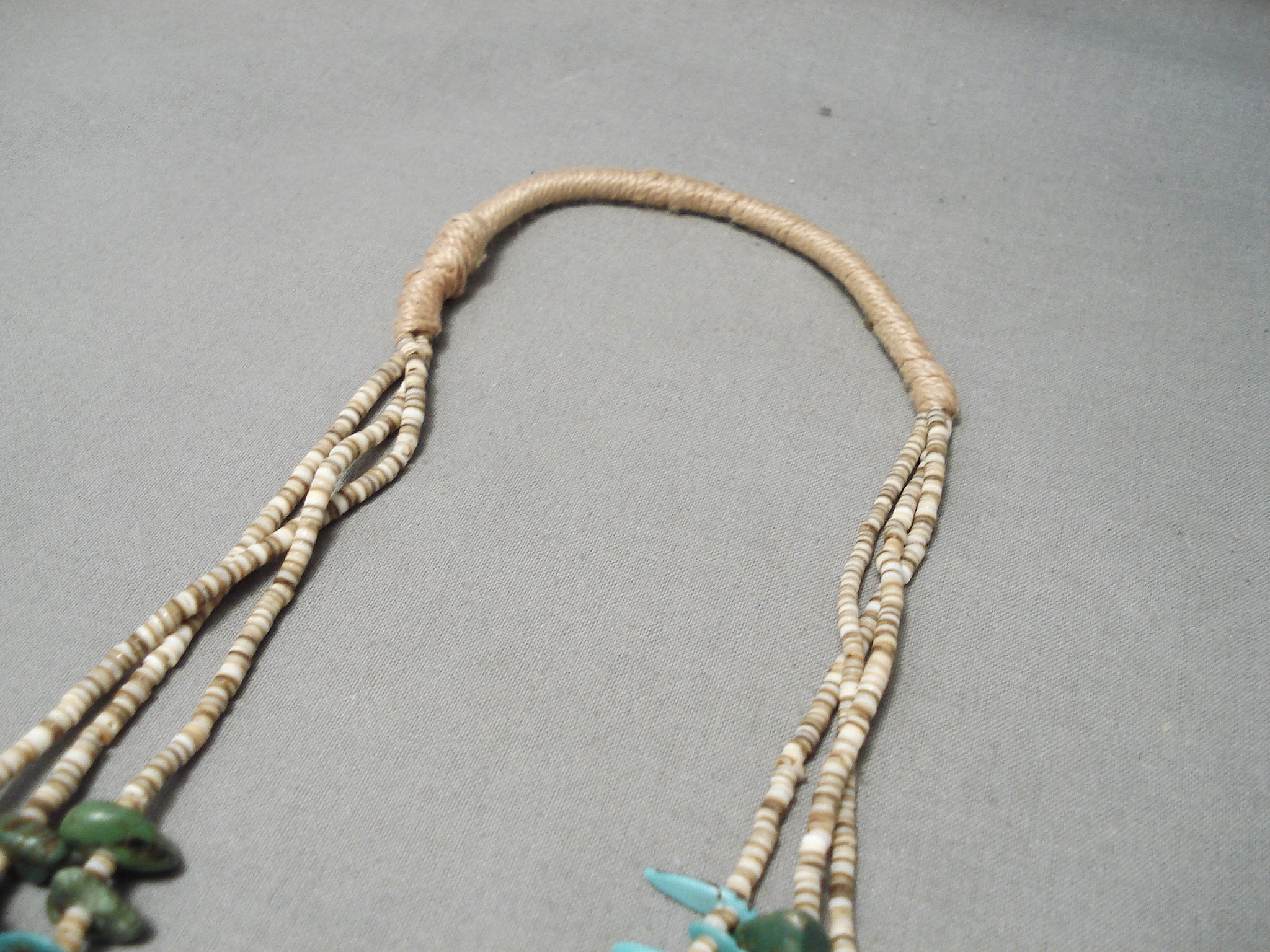 Chunky Green Turquoise Vintage Navajo Sqaw Native American Necklace Old