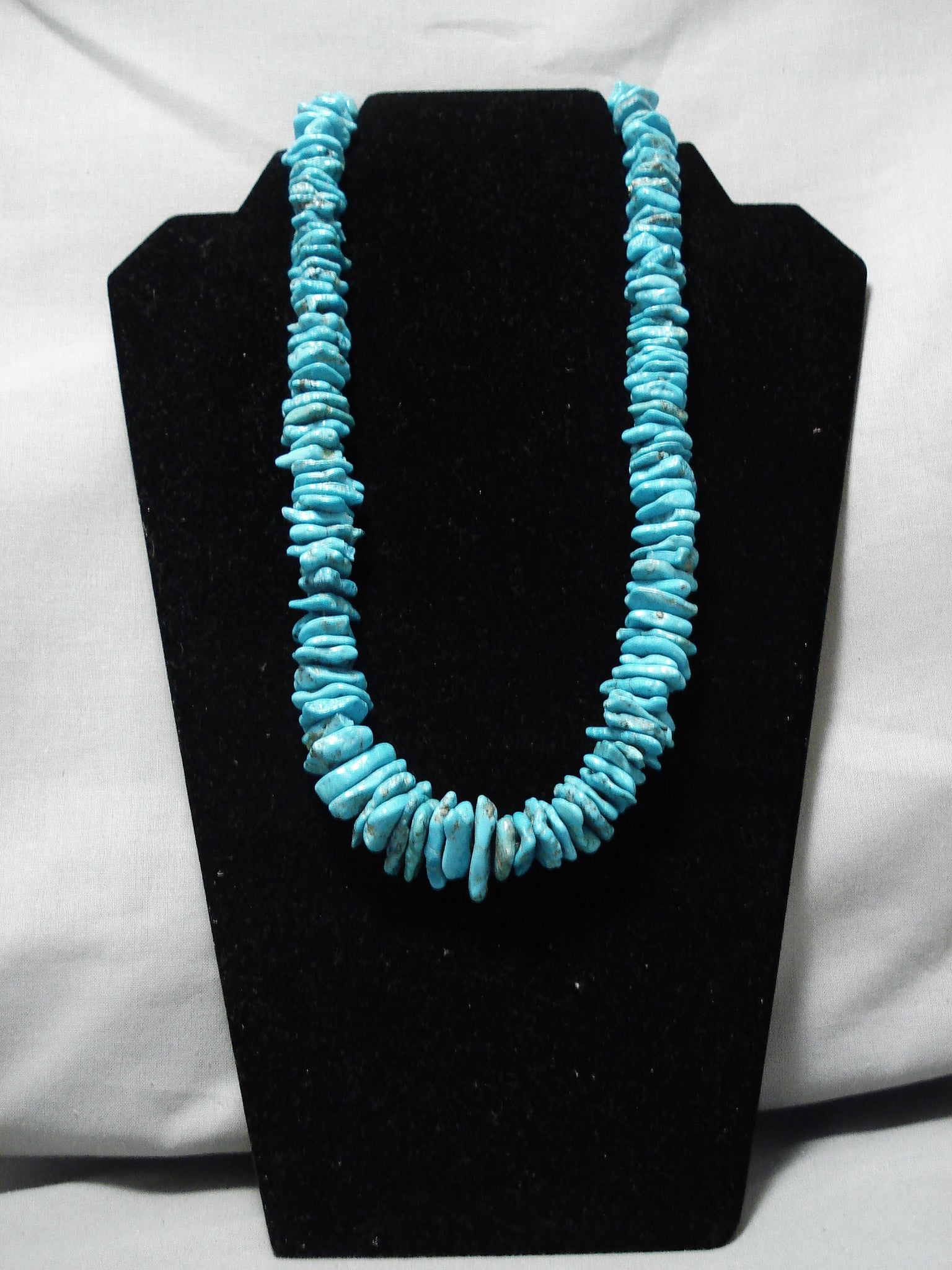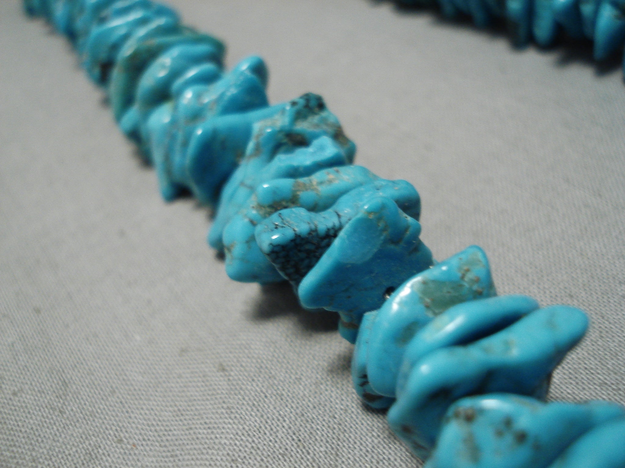 Chunky Heavy Vintage Native American Navajo Turquoise Nugget Sterling Silver Necklace Old
