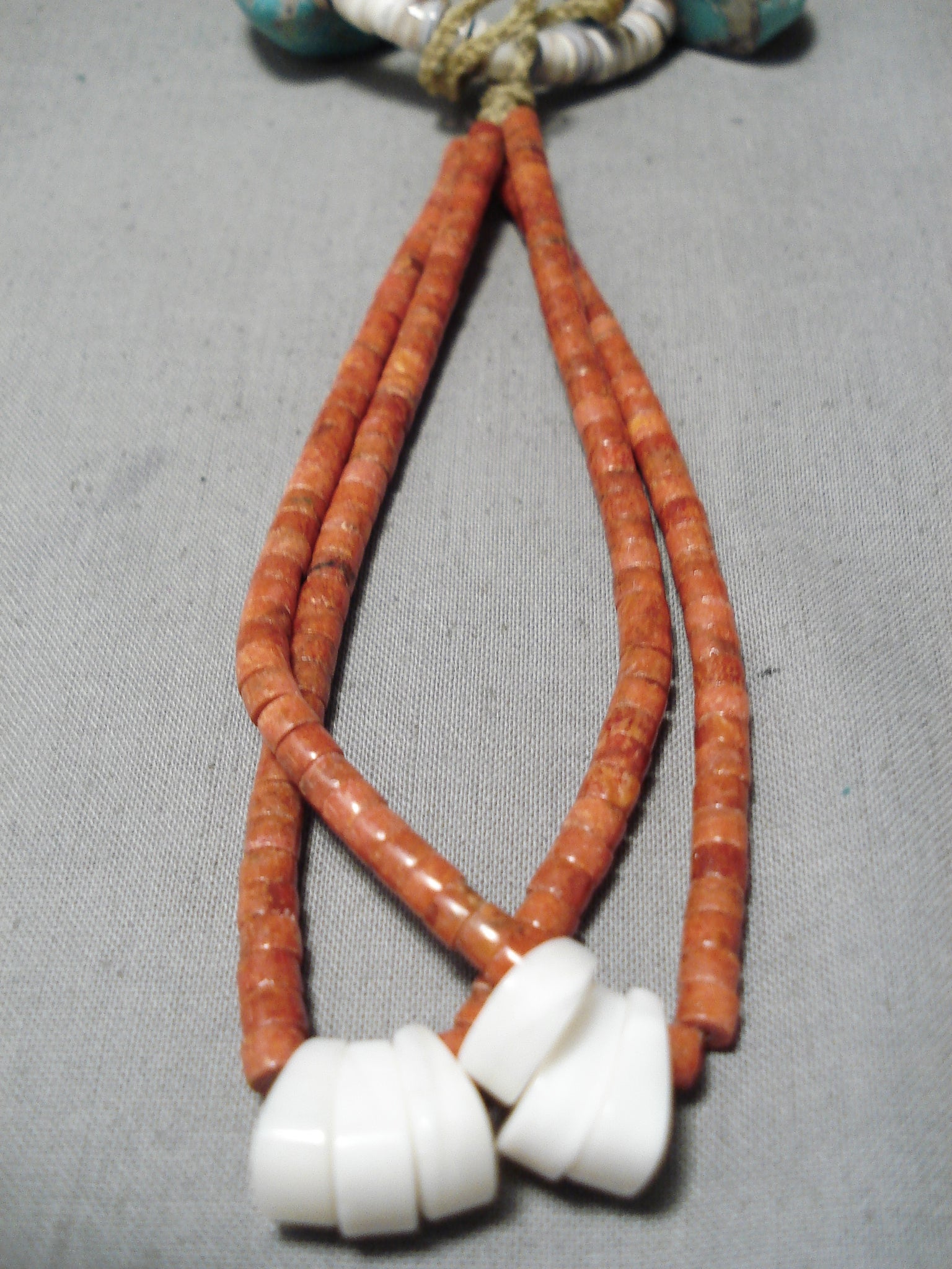 Chunky Huge Vintage Native American Navajo Royston Turquoise Spiny Oyster Jacla Necklace Old