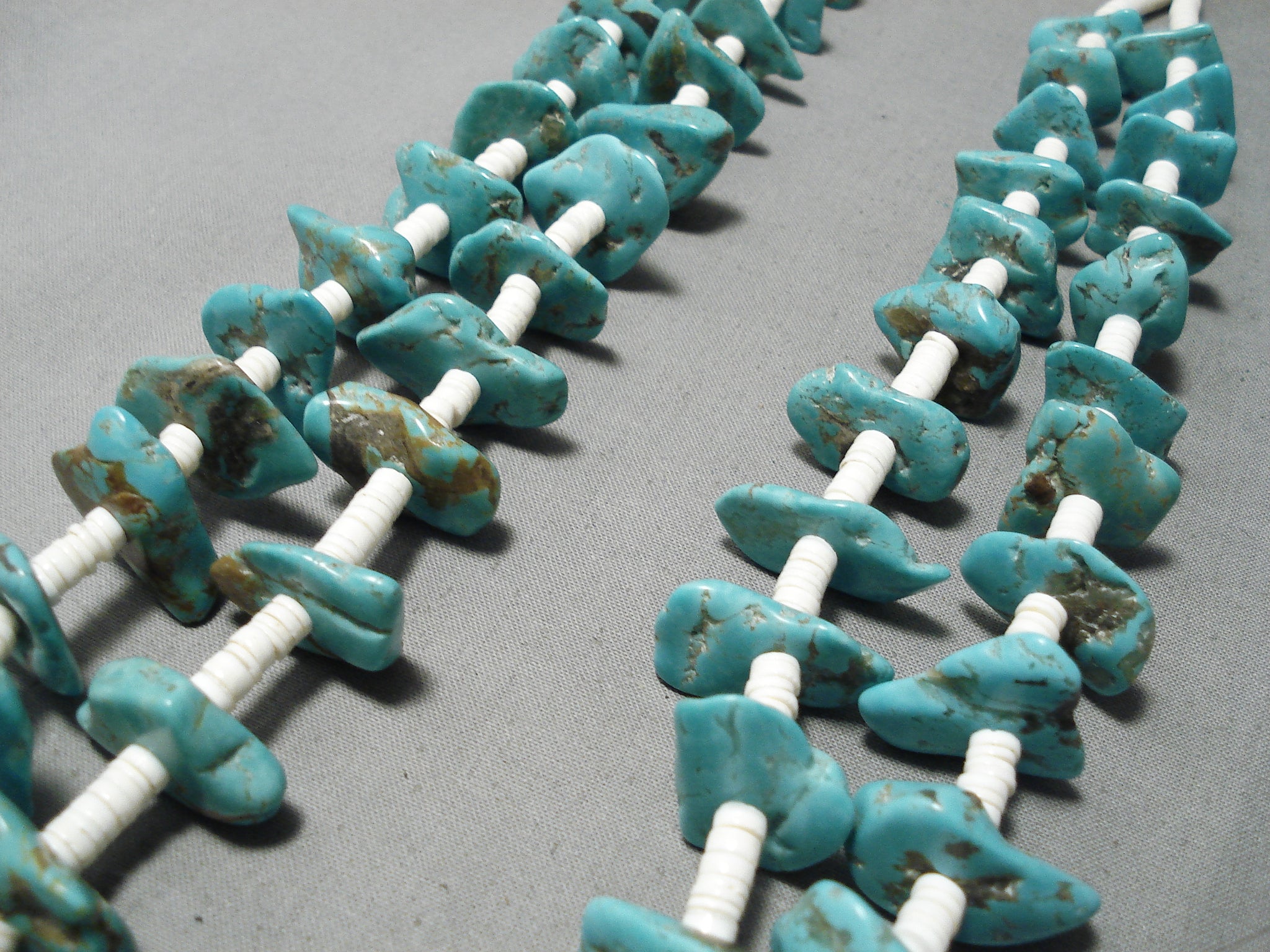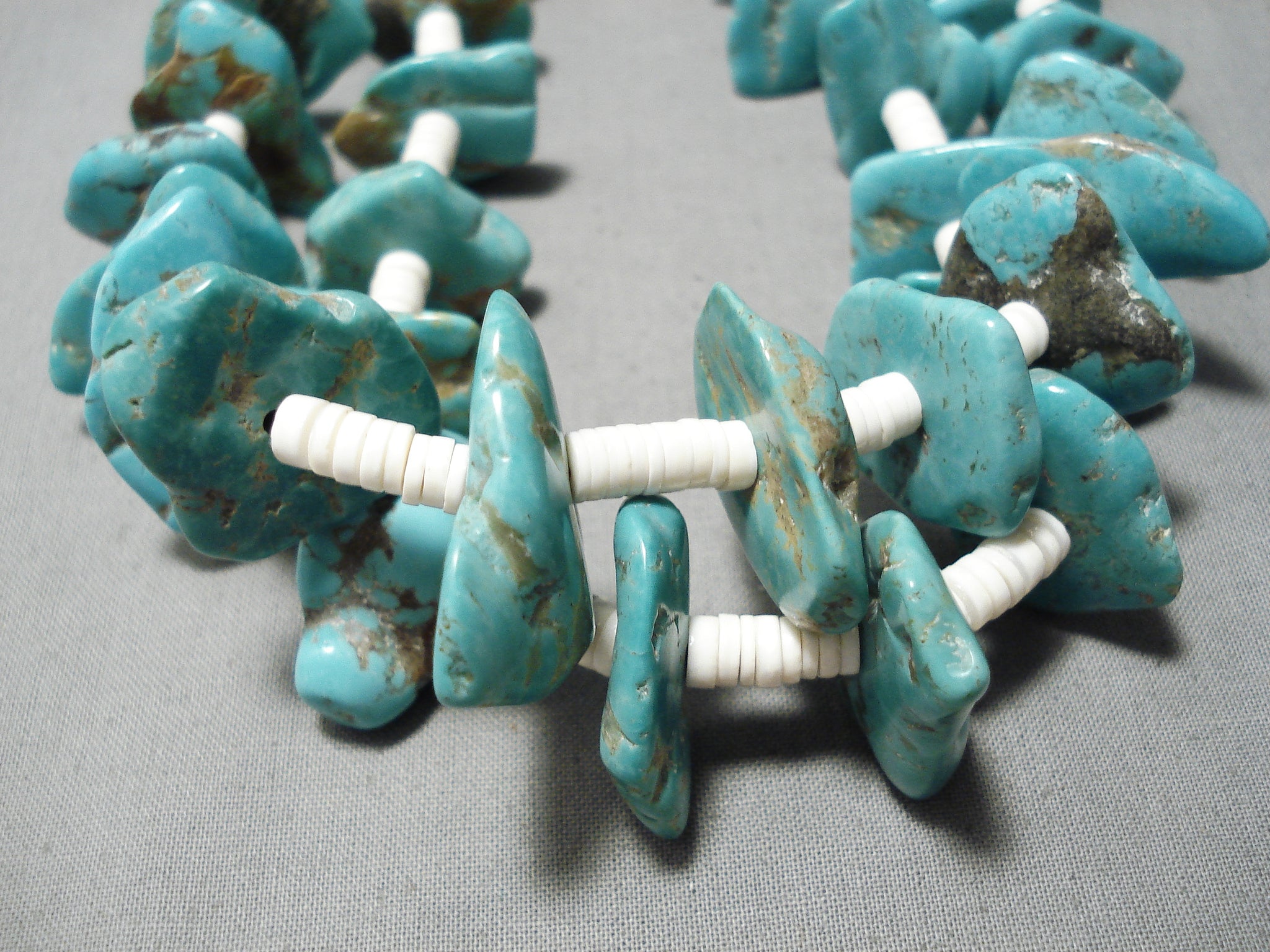 Chunky Huge Vintage Santo Domingo Native American Navajo Turquoise Sterling Silver Necklace