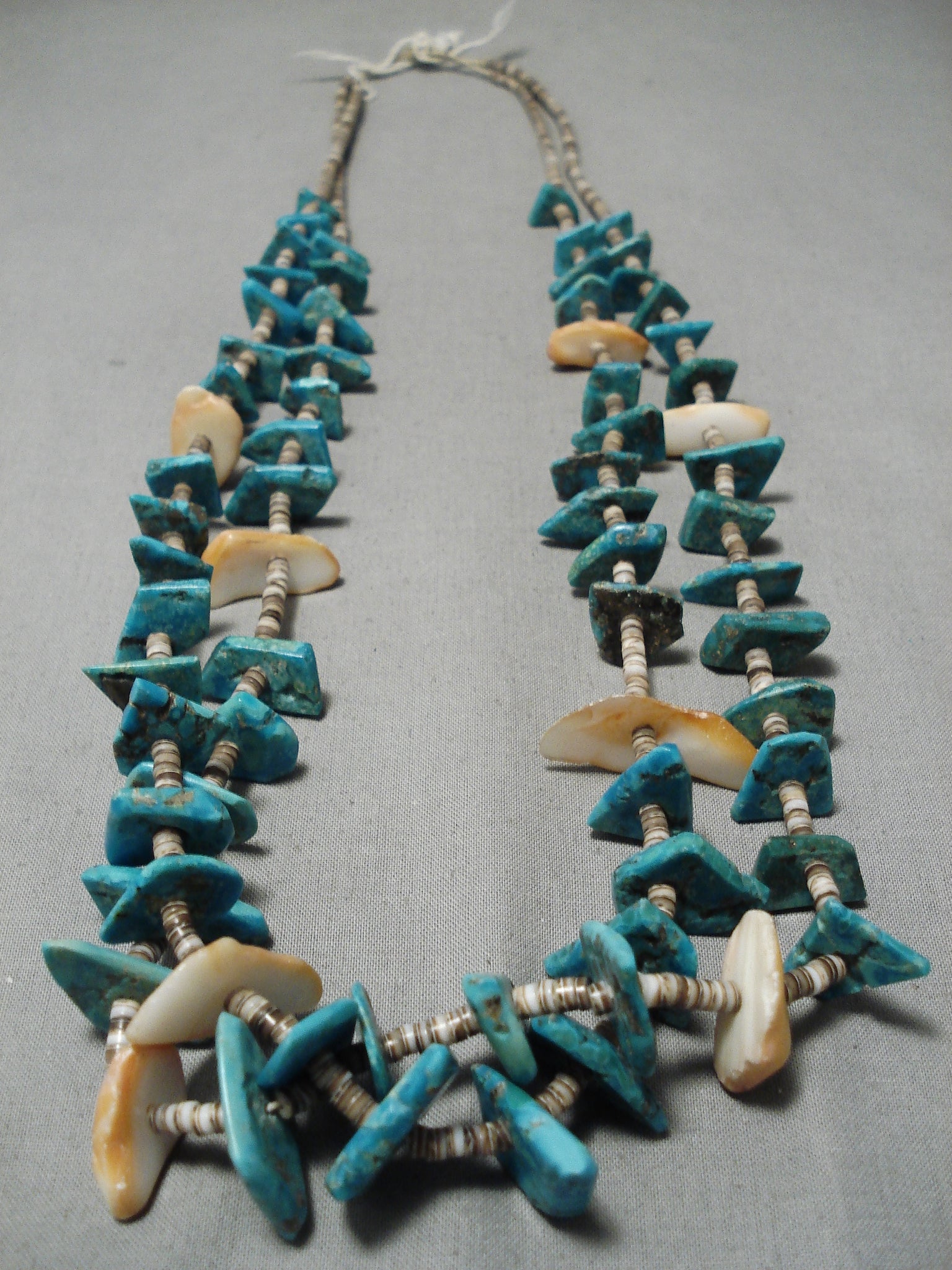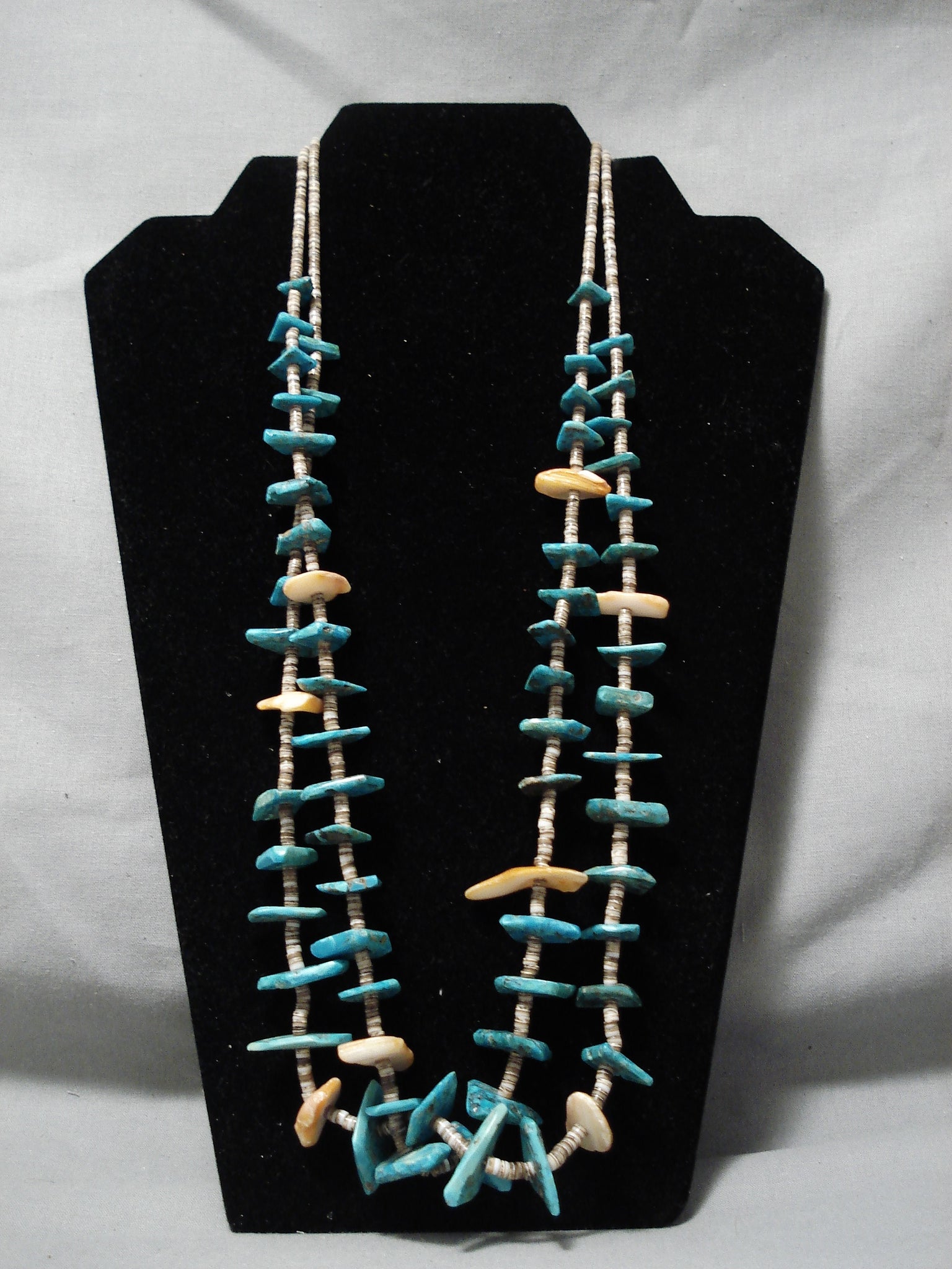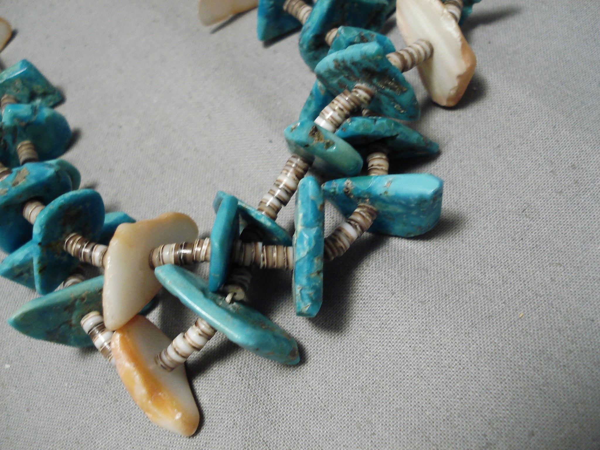 Chunky Nuggets Vintage Navajo Shell Turquoise Native American Necklace Old