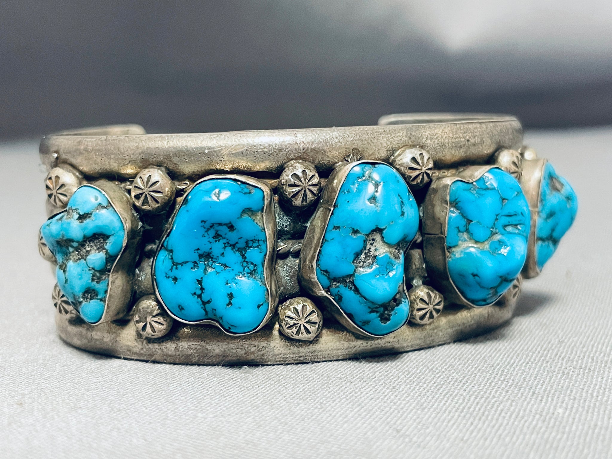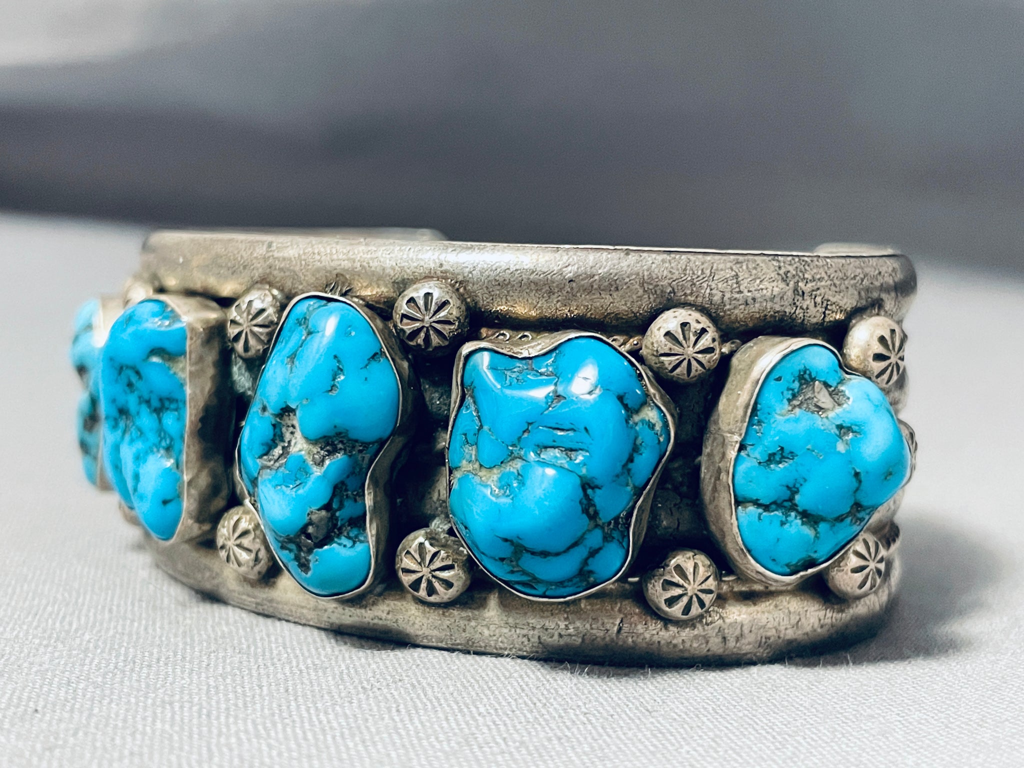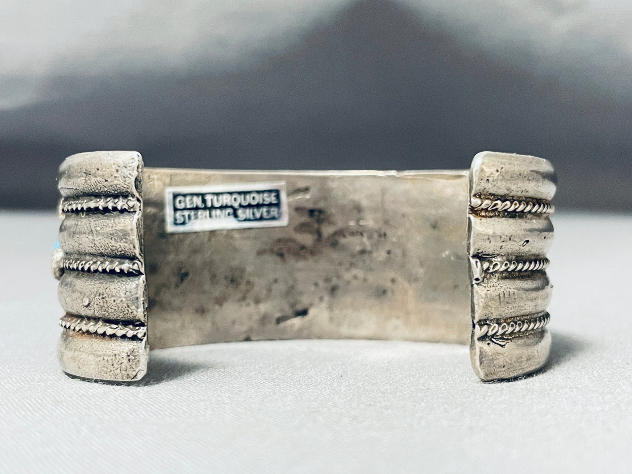 Chunky Spiderweb Vintage Native American Navajo Turquoise Sterling Silver Bracelet