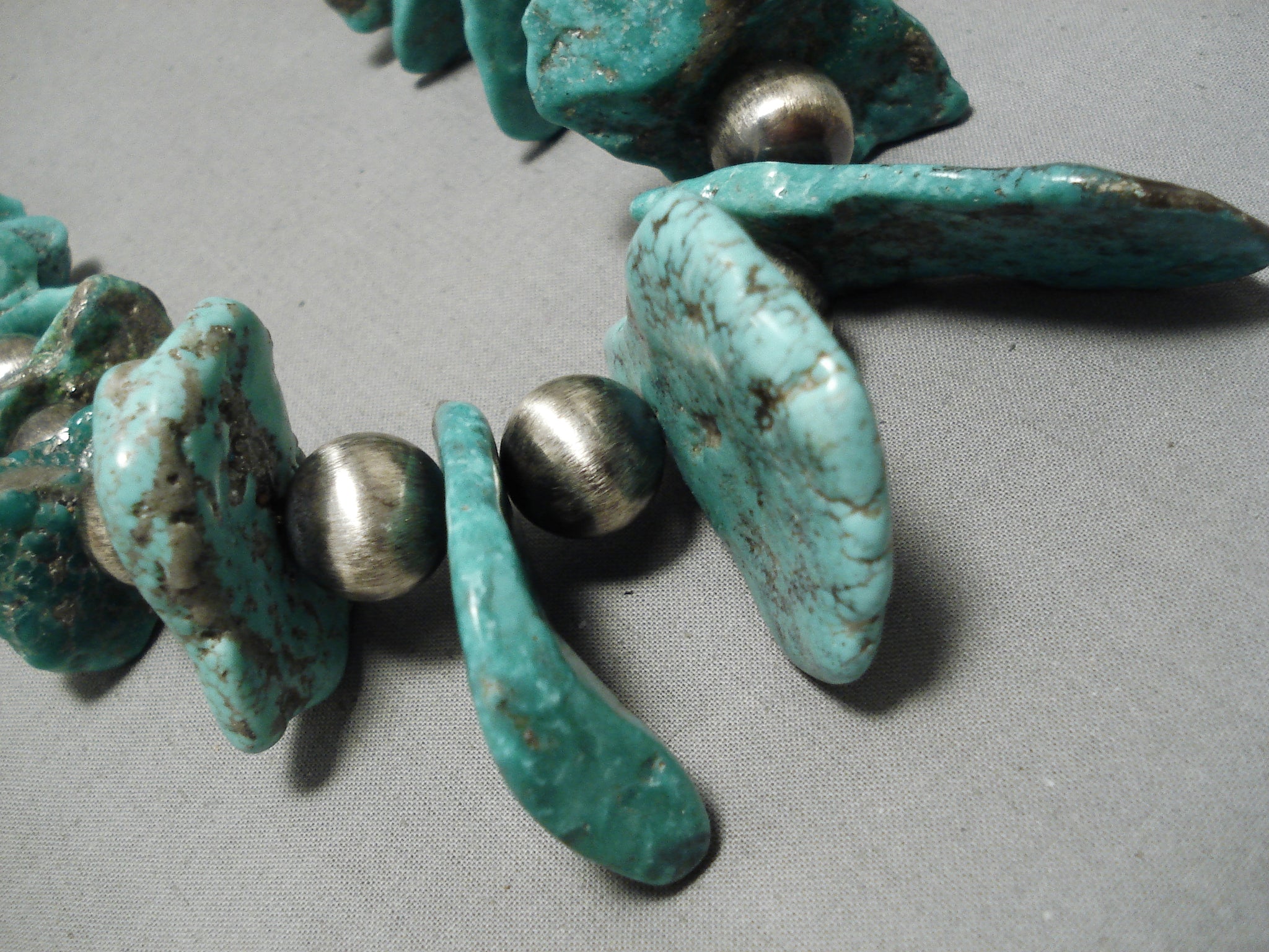 Chunky Turquoise Slab Vintage Native American Navajo Sterling Silver Necklace Old