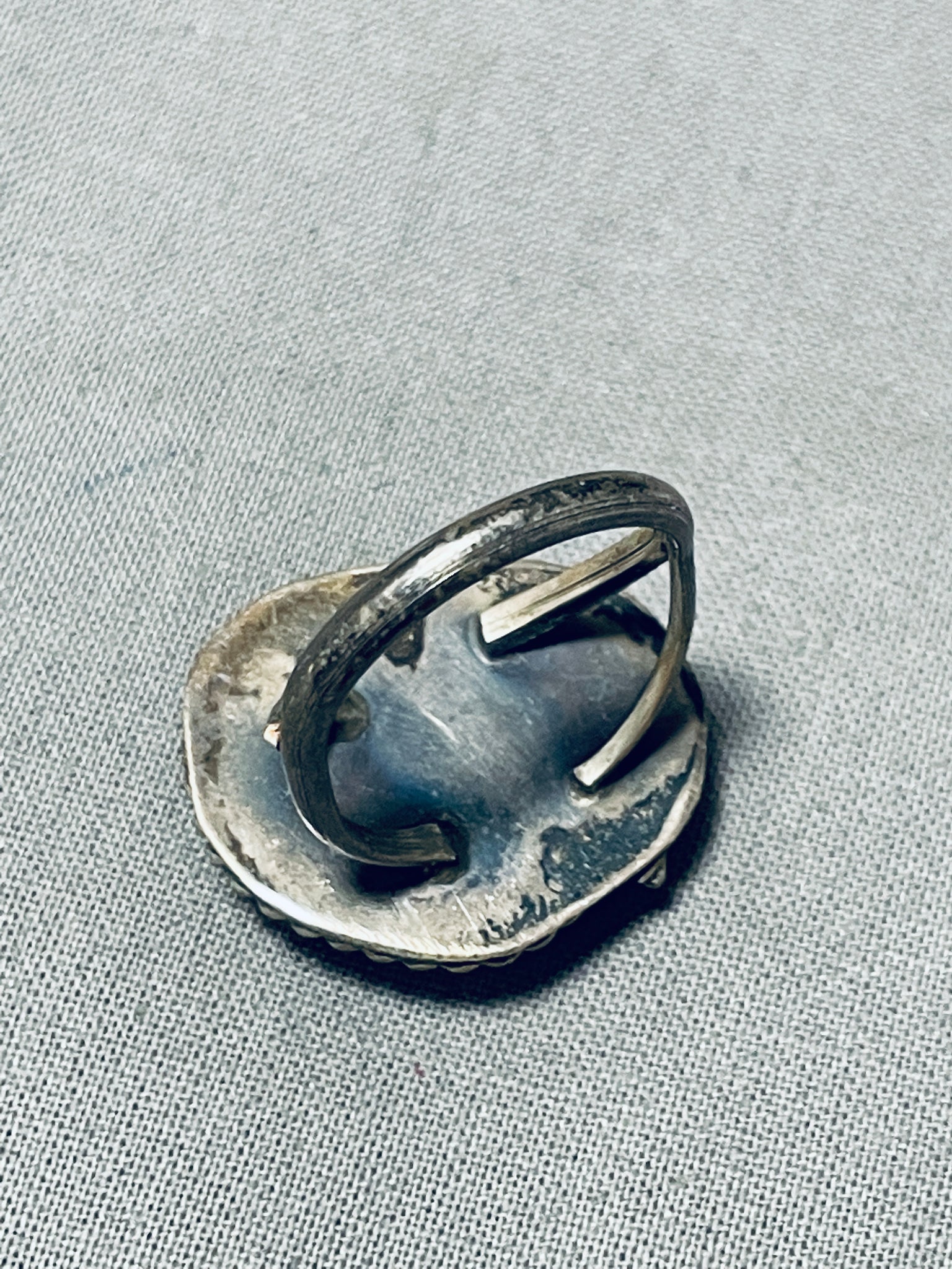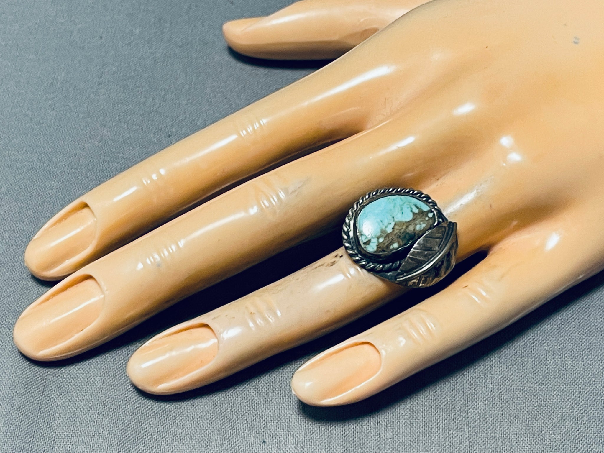 Chunky Vintage Native American Navajo #8 Turquoise Sterling Silver Leaf Ring Old