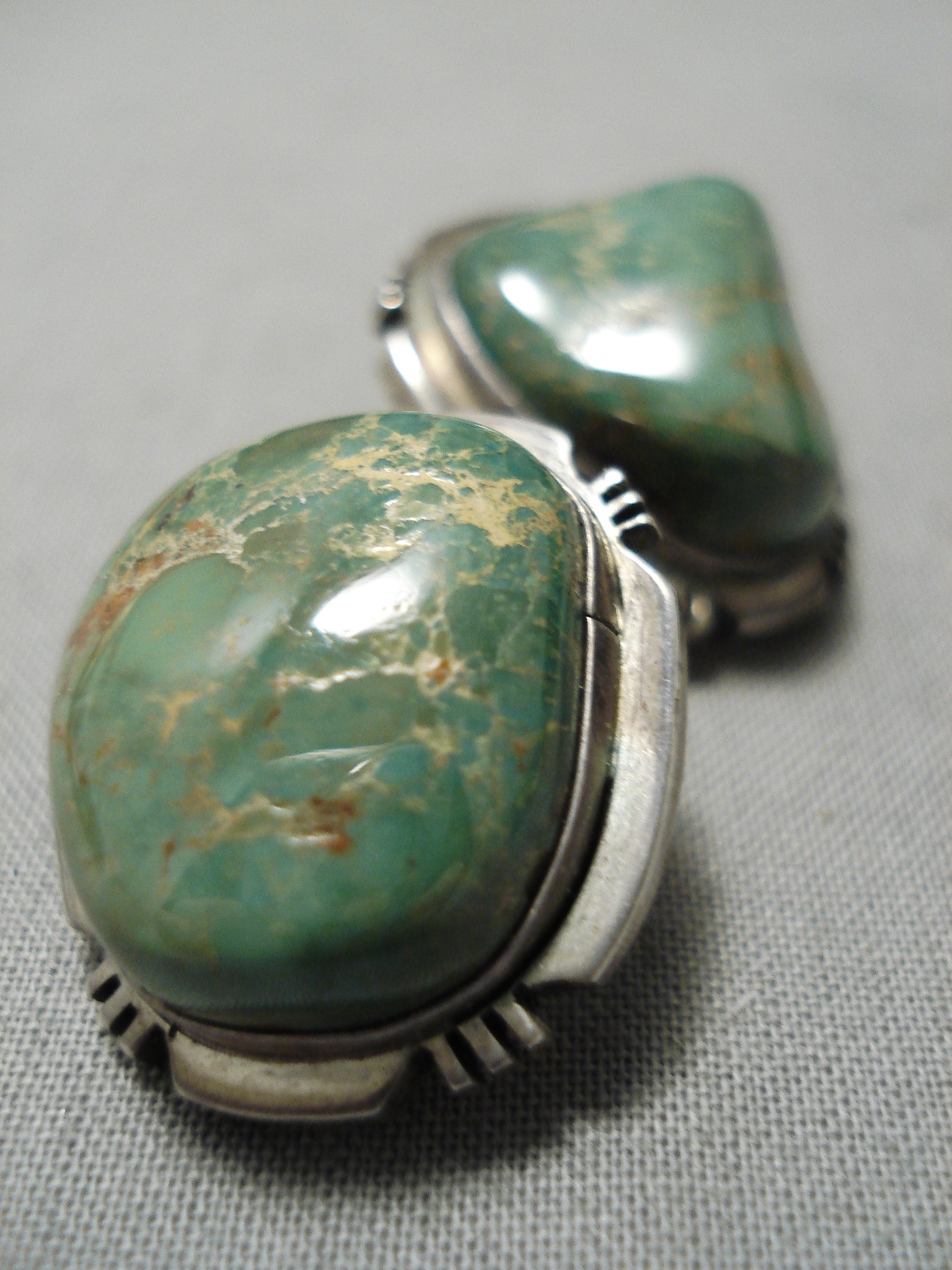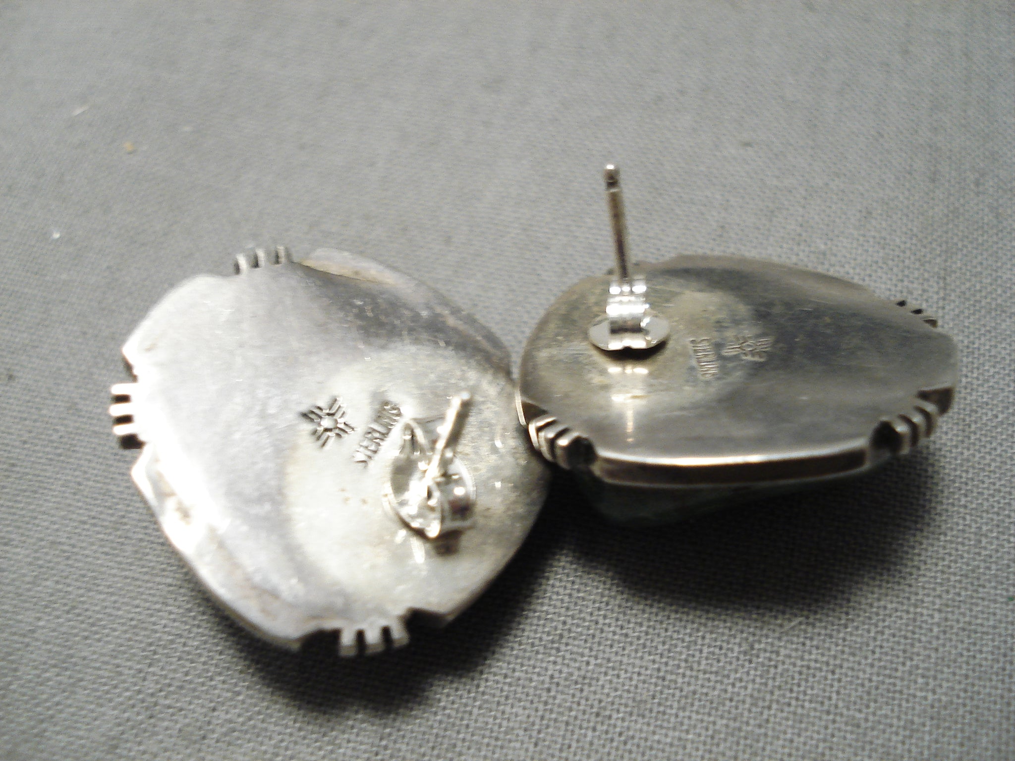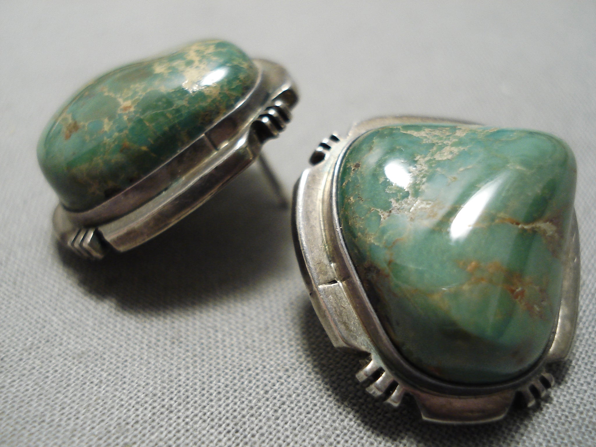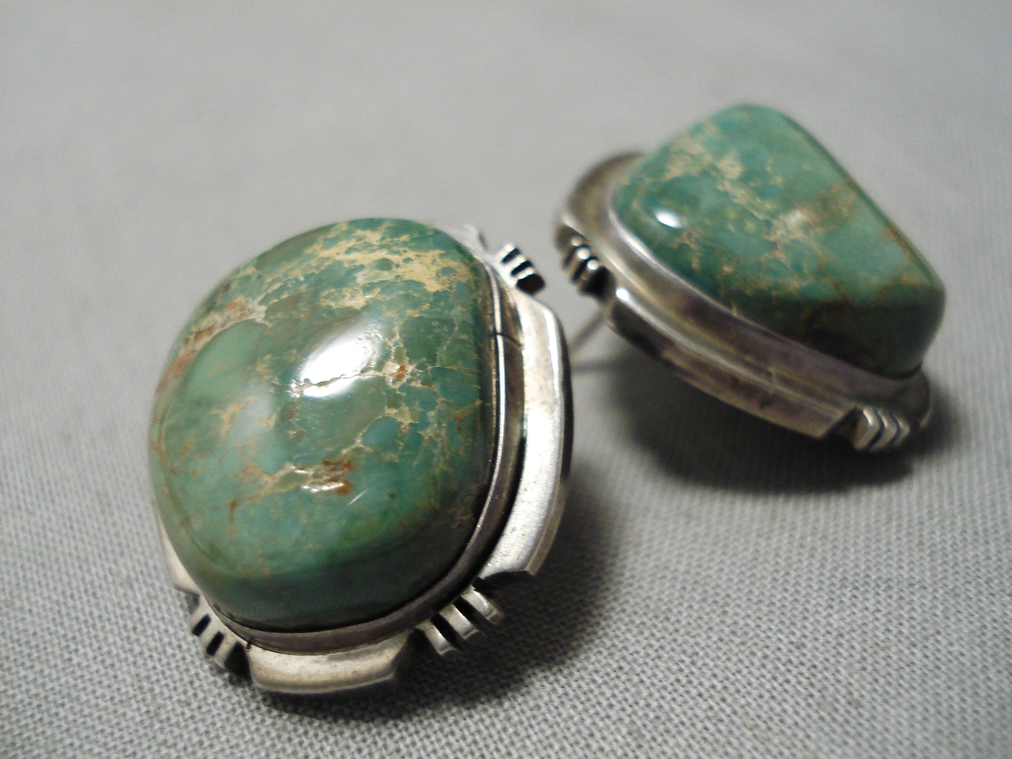 Chunky Vintage Native American Navajo Royston Turquoise Sterling Silver Earrings Old