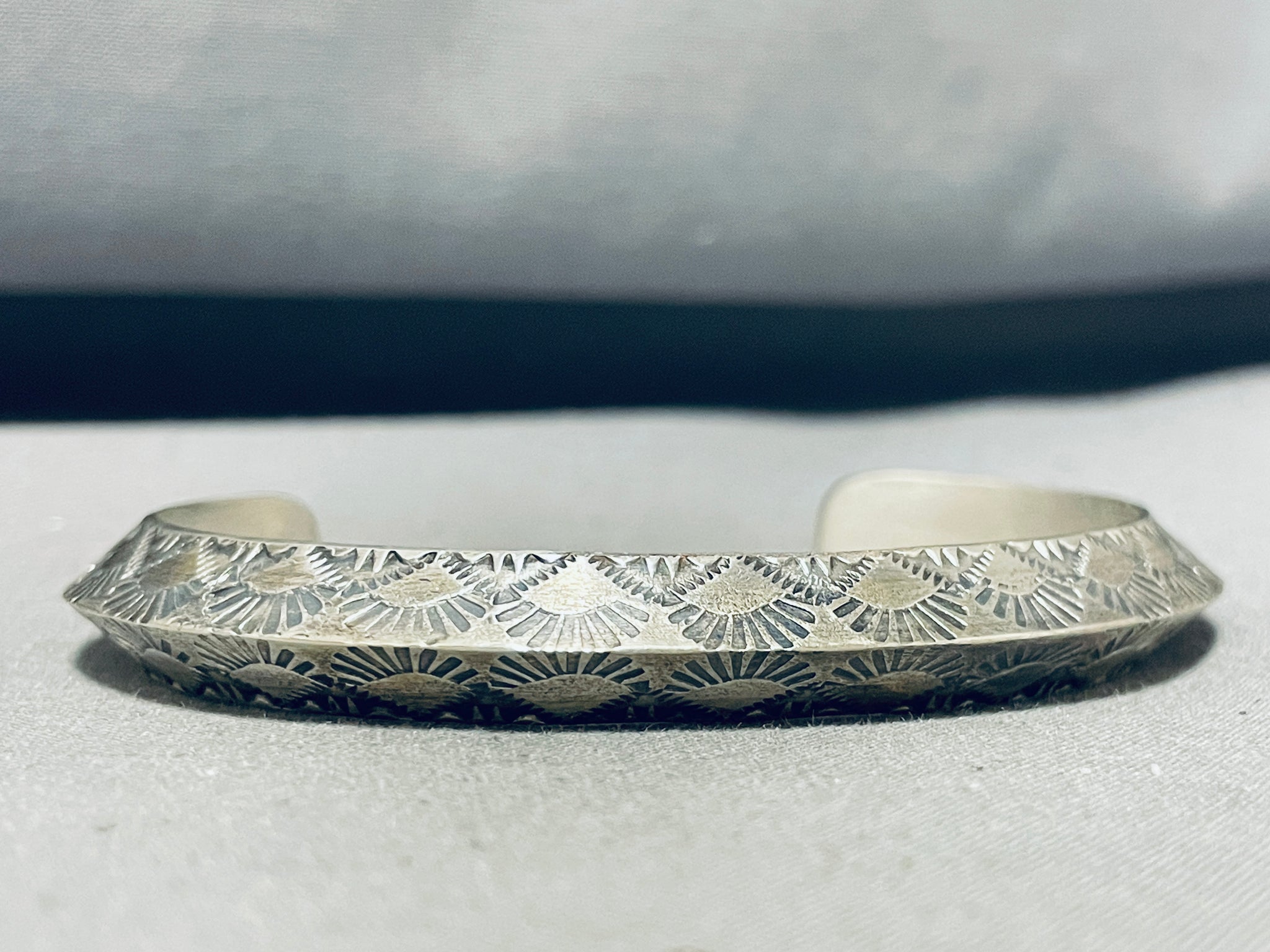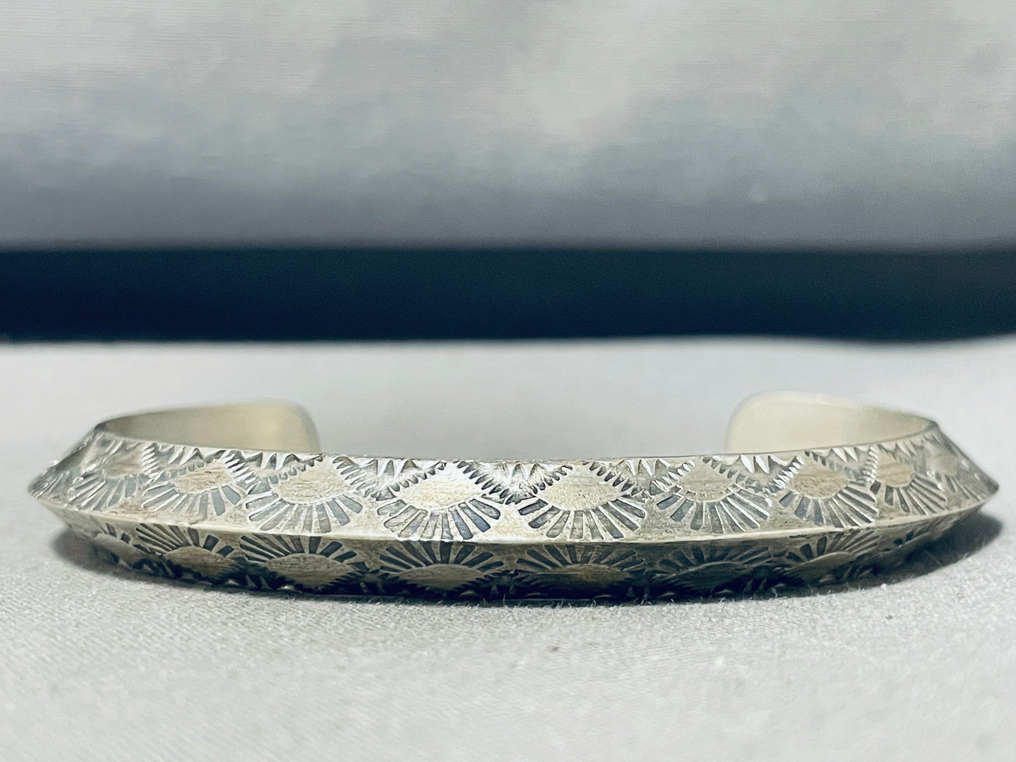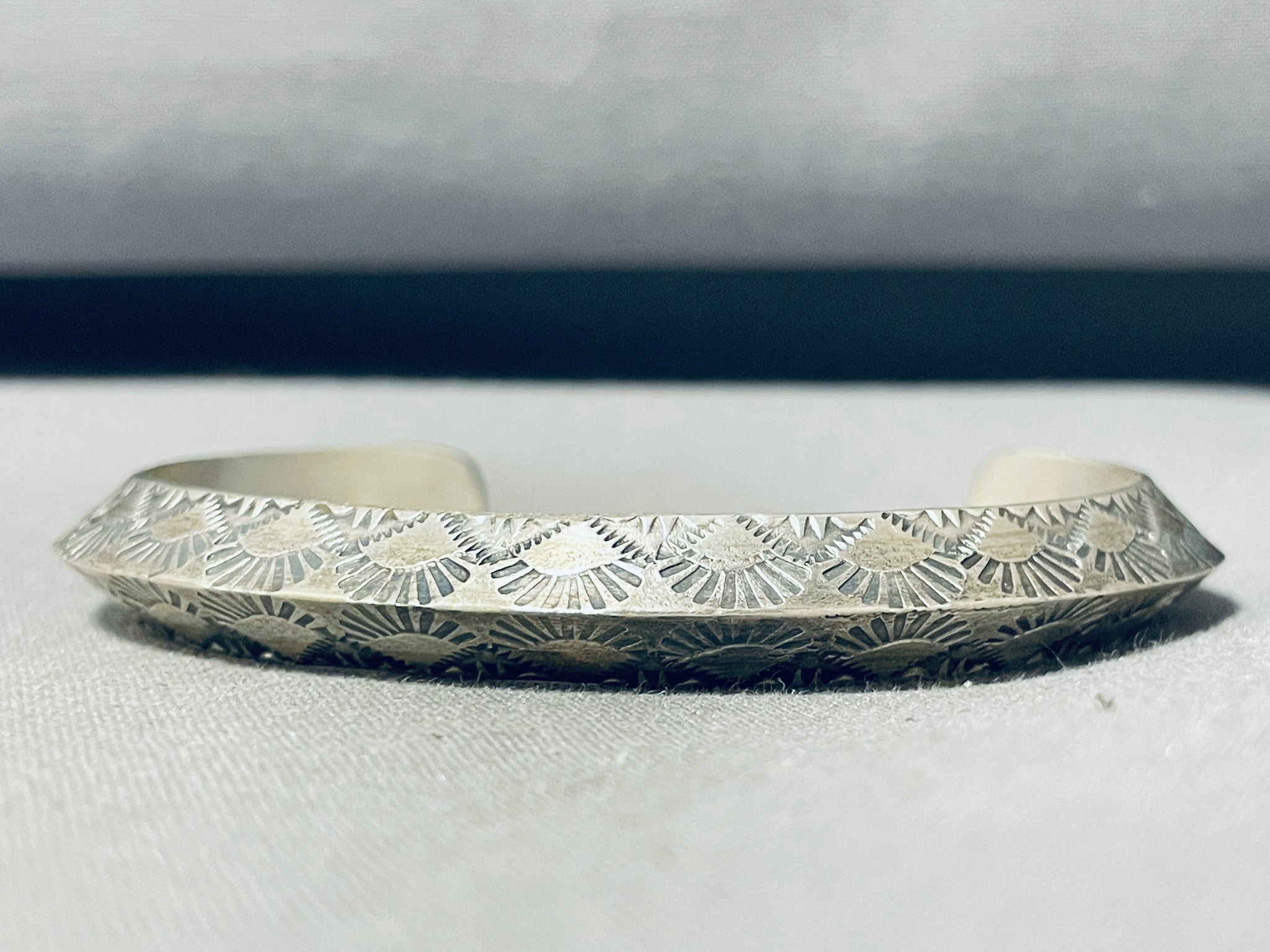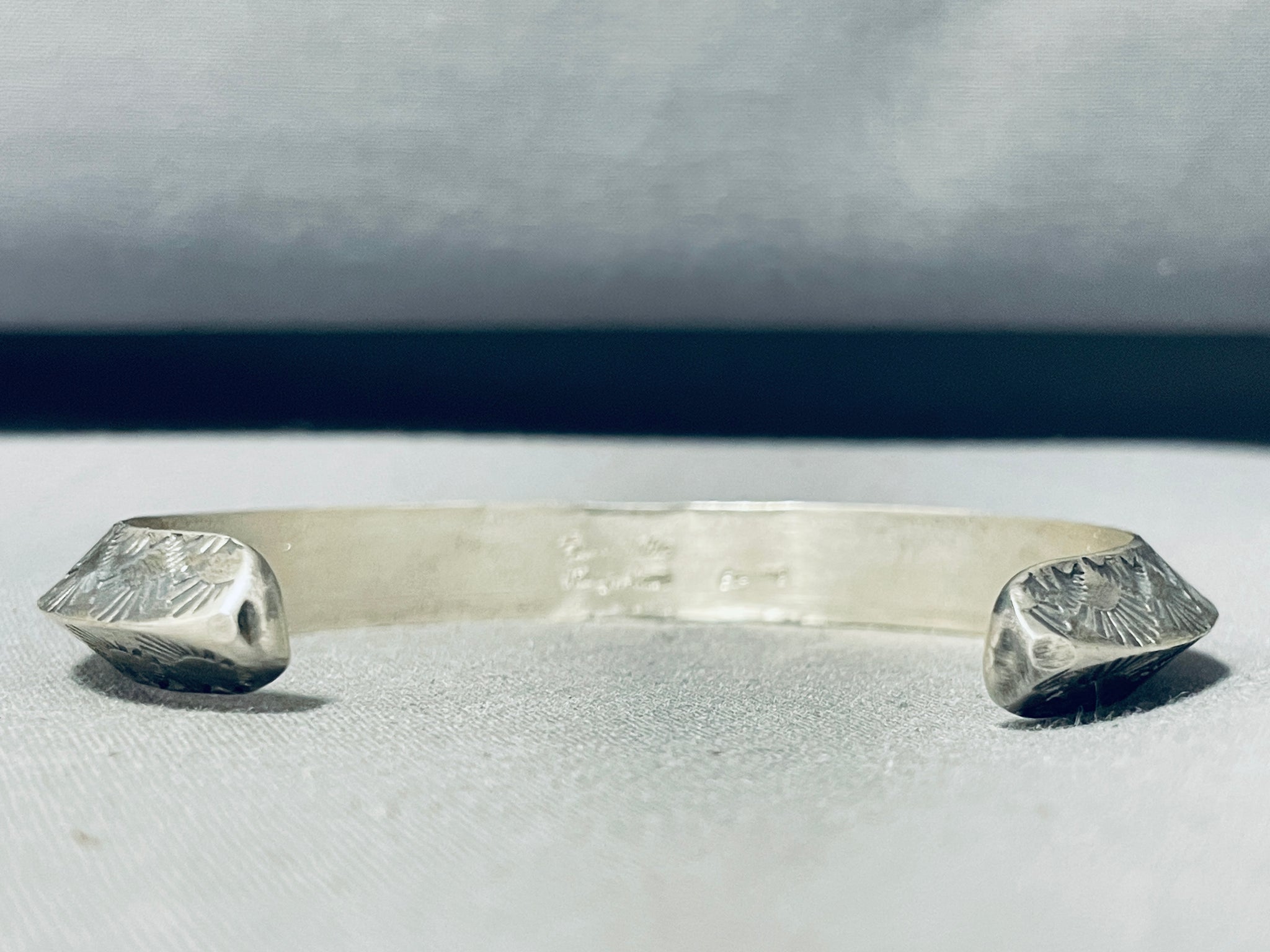 Classic Native American Navajo Signed Sterling Silver Solid Tawney Willie Bracelet