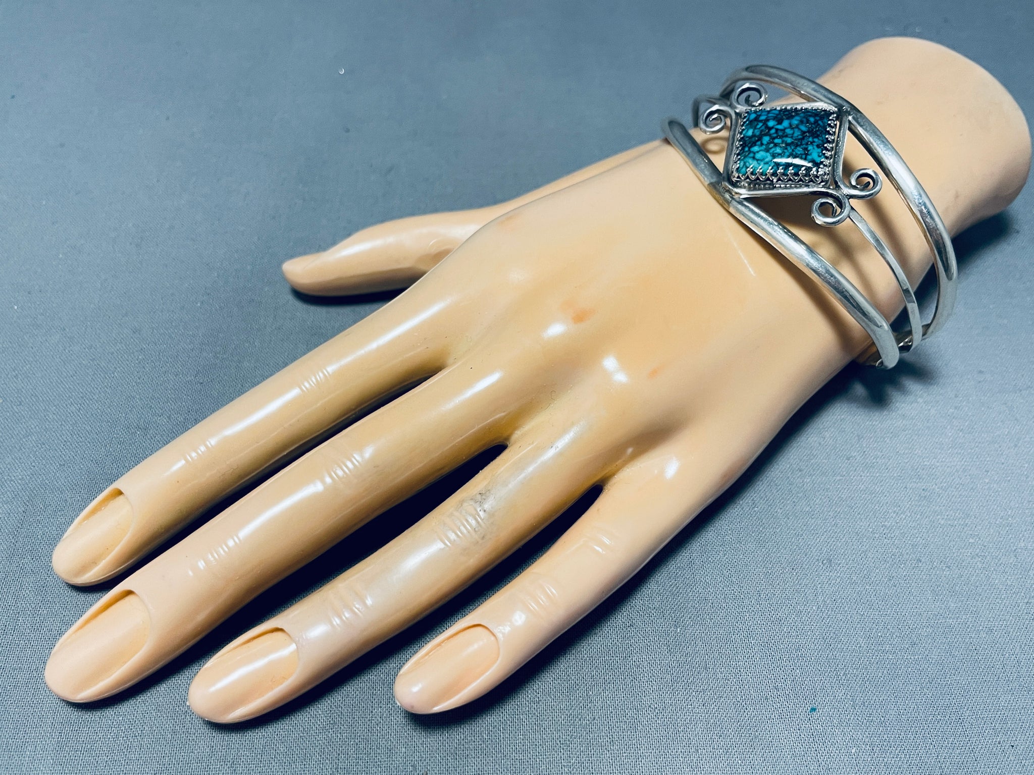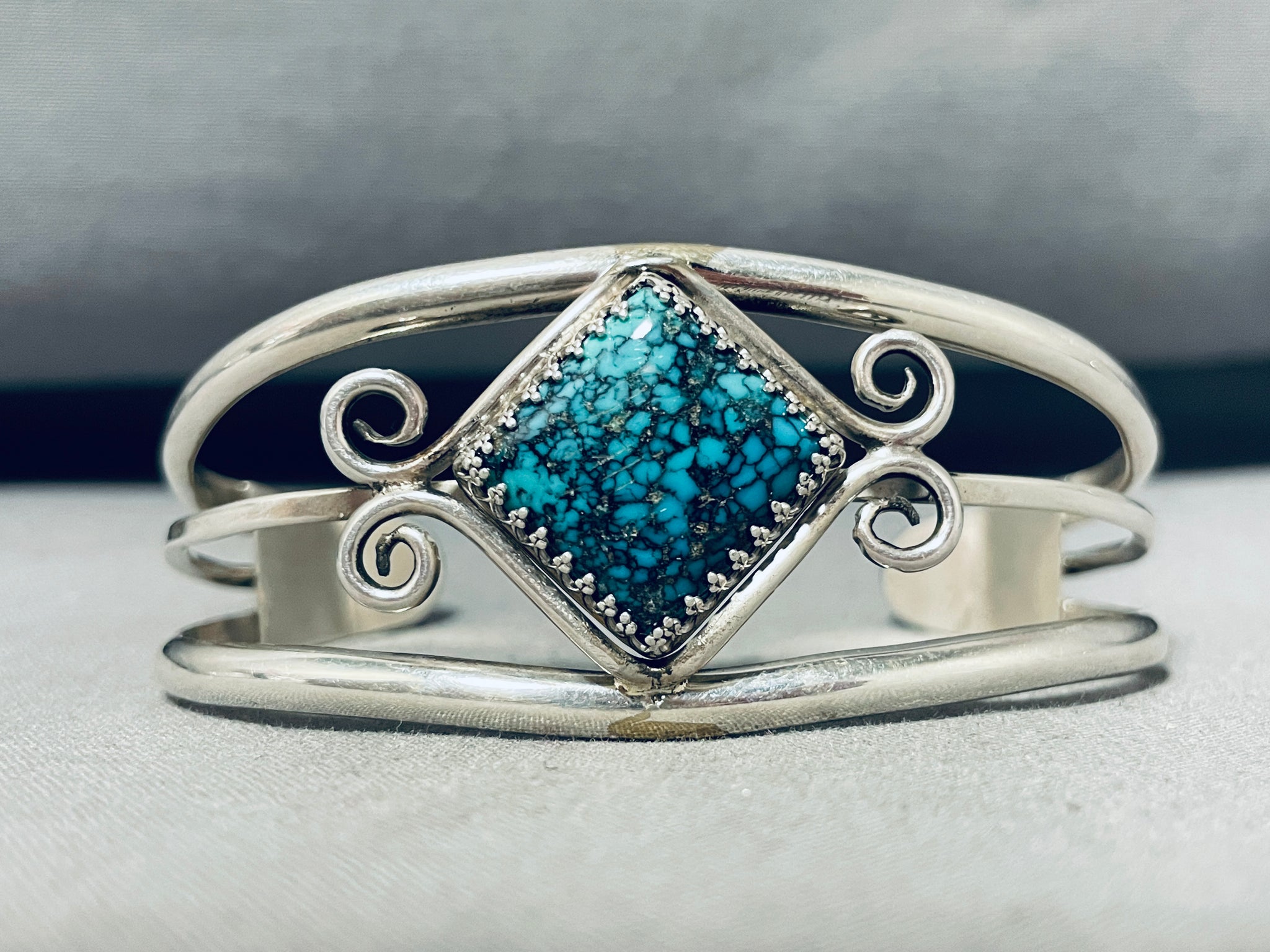 Classic Native American Navajo Spiderweb Turquoise Sterling Silver Bracelet