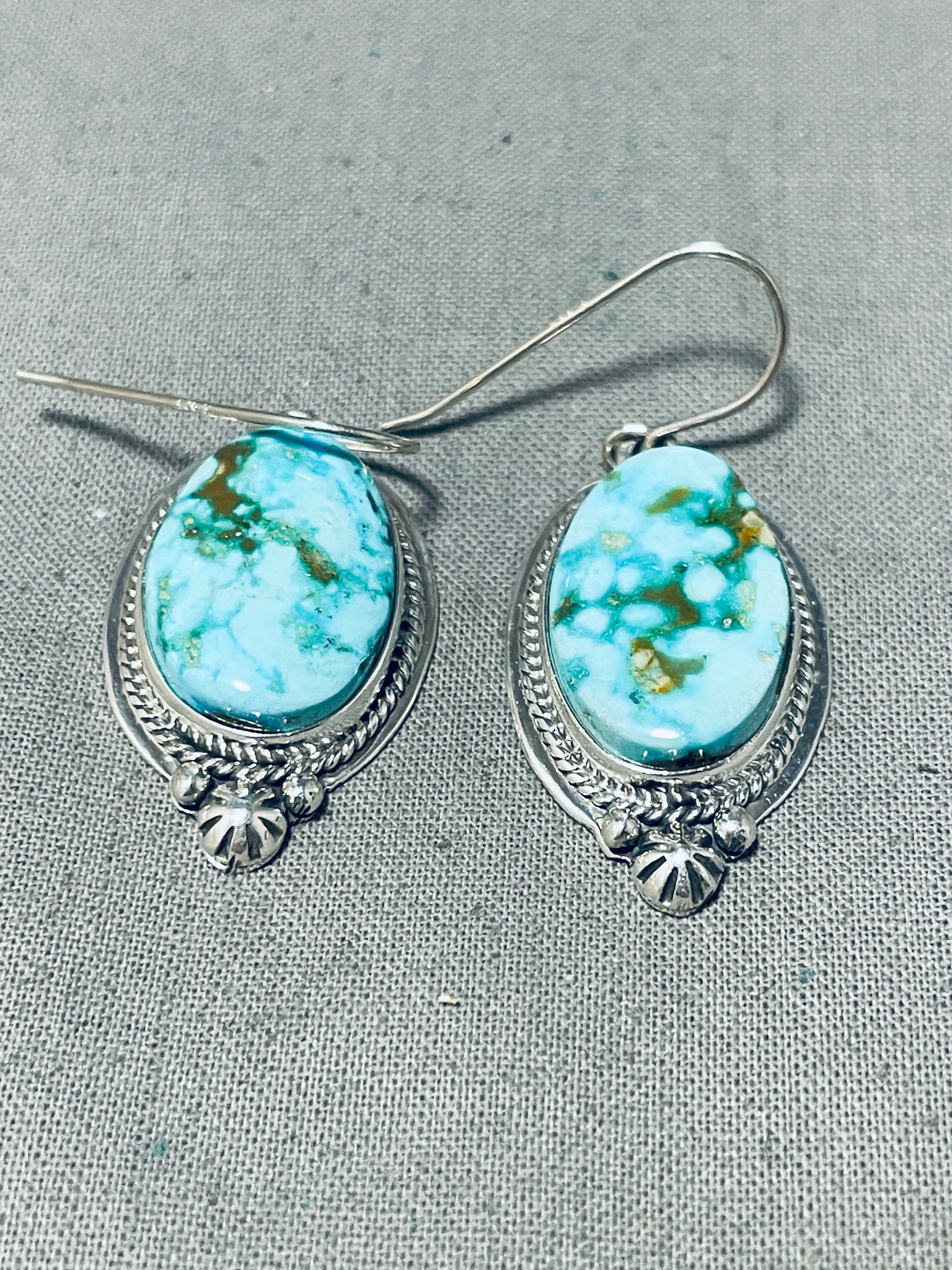 Classic Vintage Native American Navajo Carico Lake Turquoise Sterling Silver Earrings