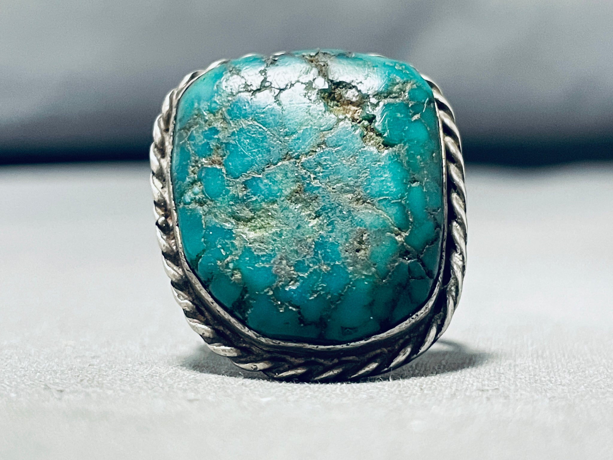 Classic Vintage Native American Navajo Green Turquoise Sterling Silver Ring