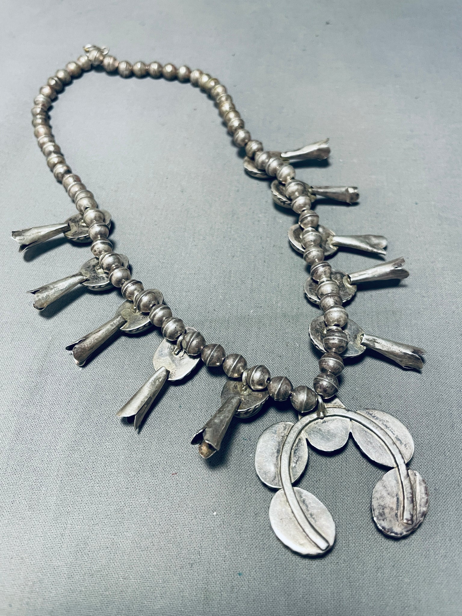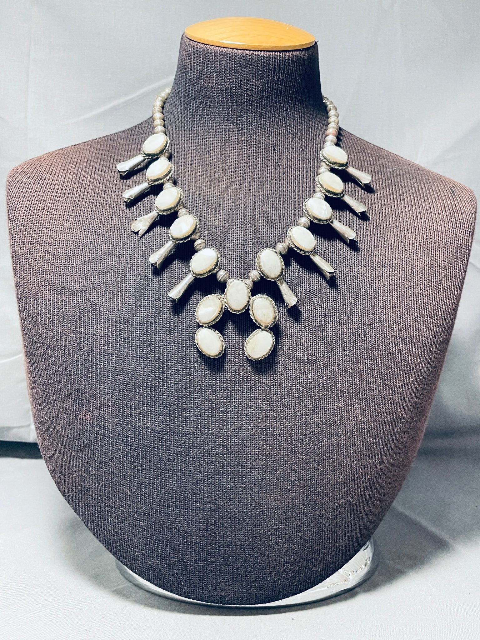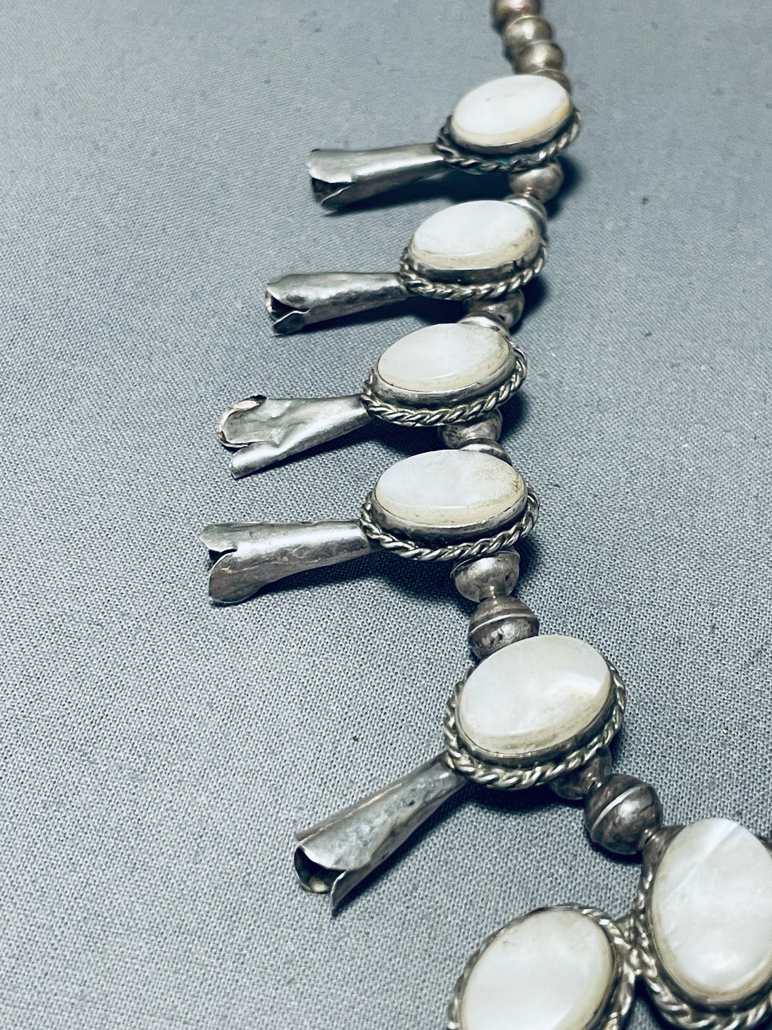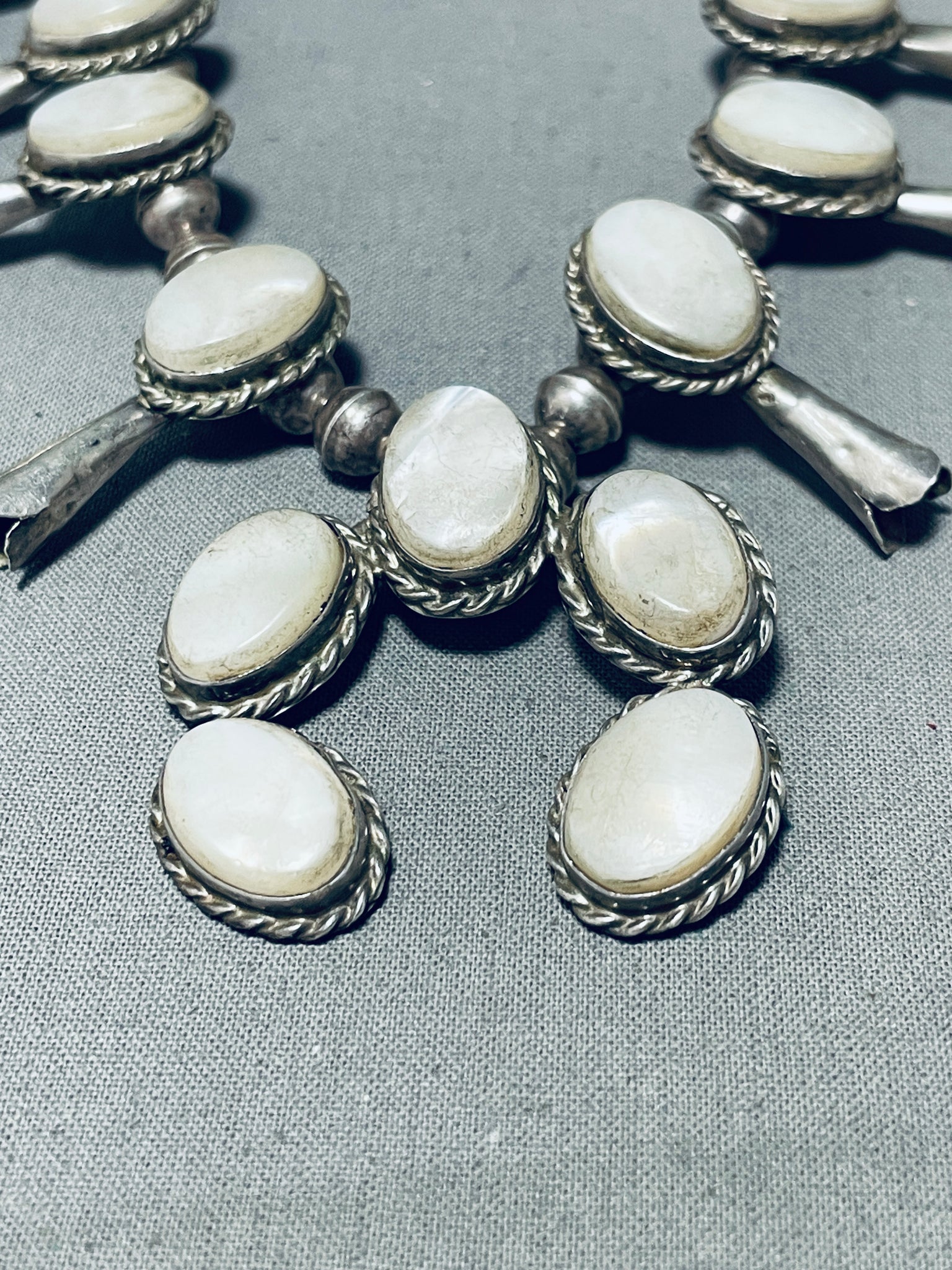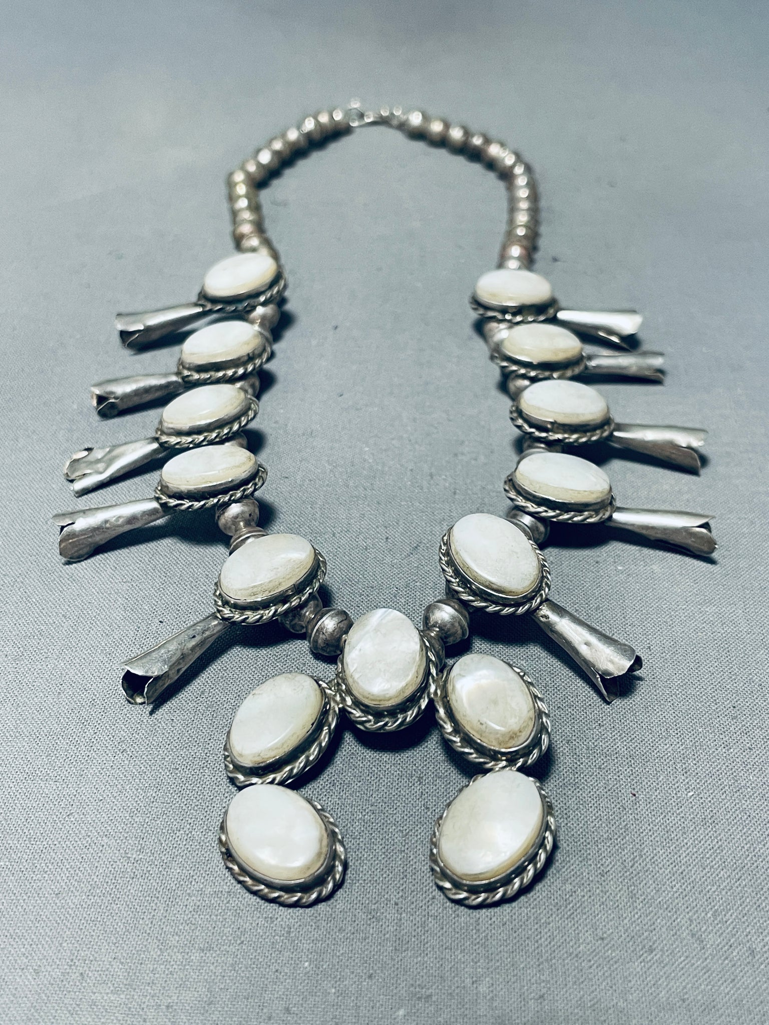 Classic Vintage Native American Navajo Mother Of Pearl Sterling Silver Squash Necklace