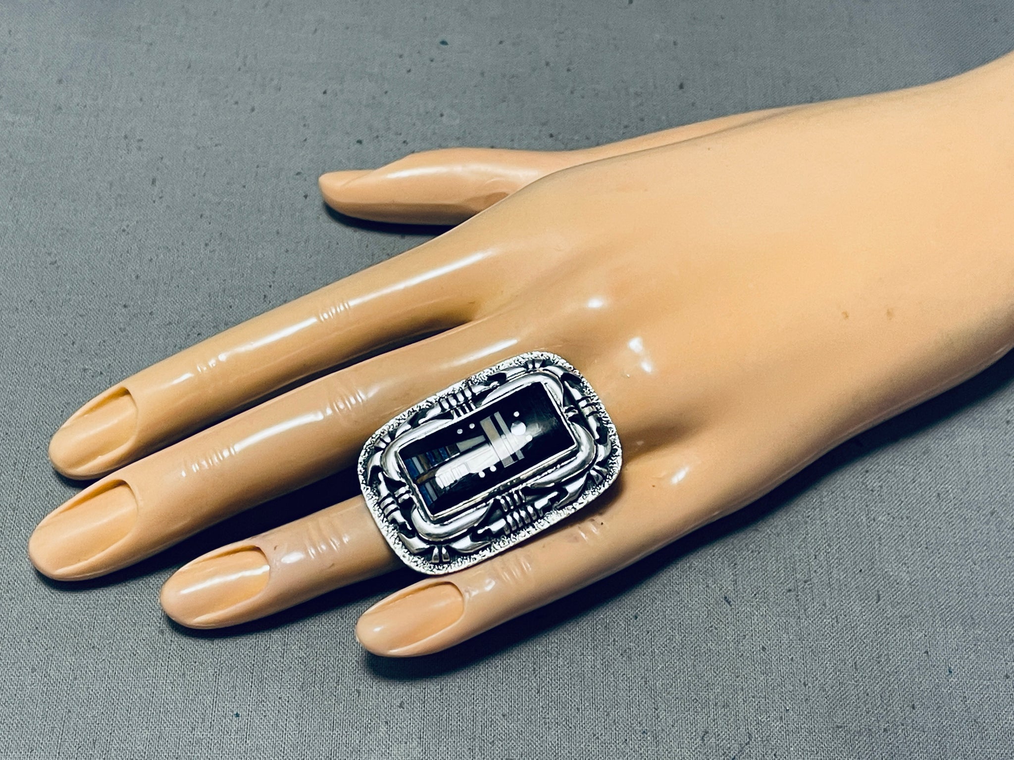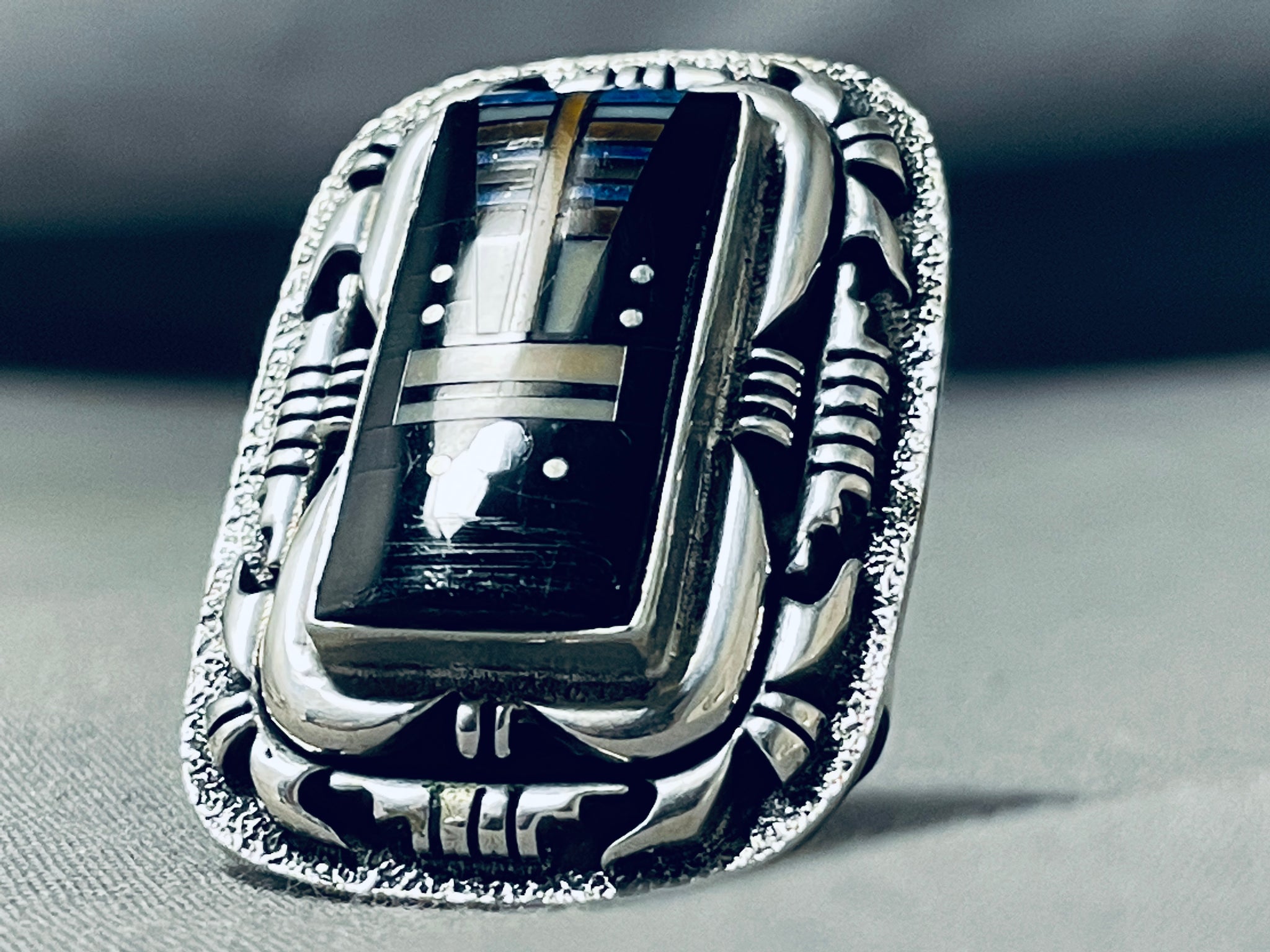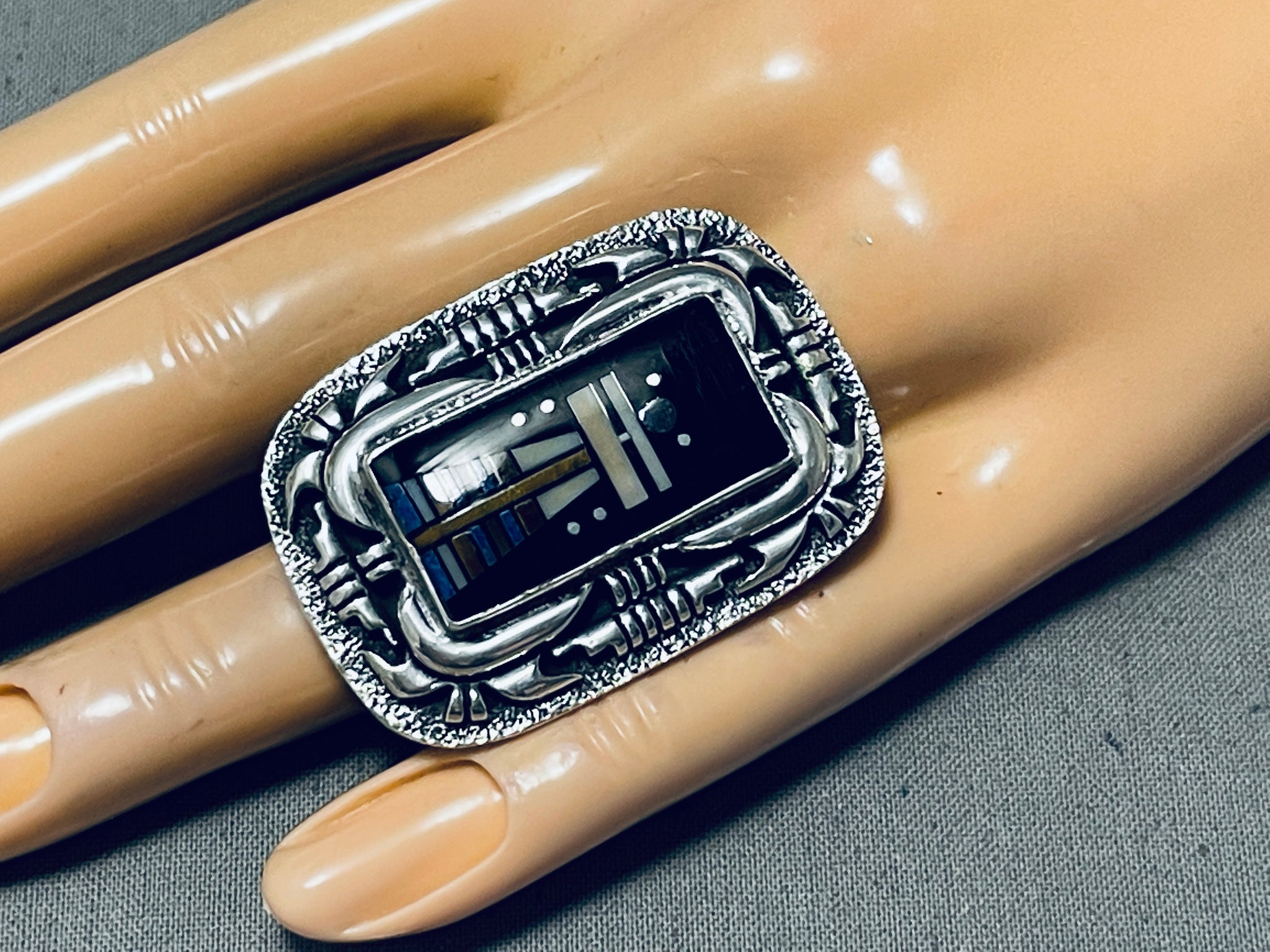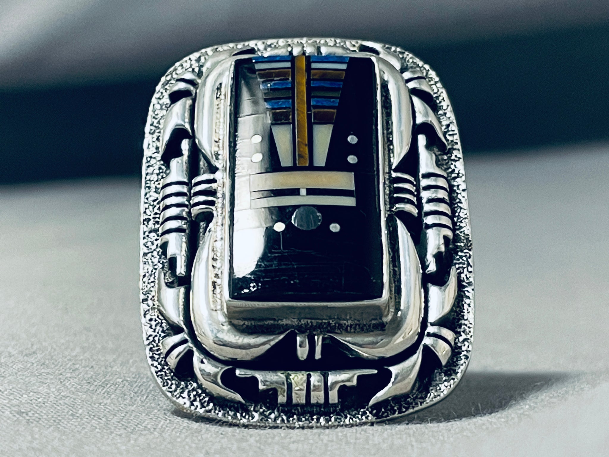 Clay Tom Intricate Inlay Native American Navajo Kachina Maiden Sterling Silver Ring