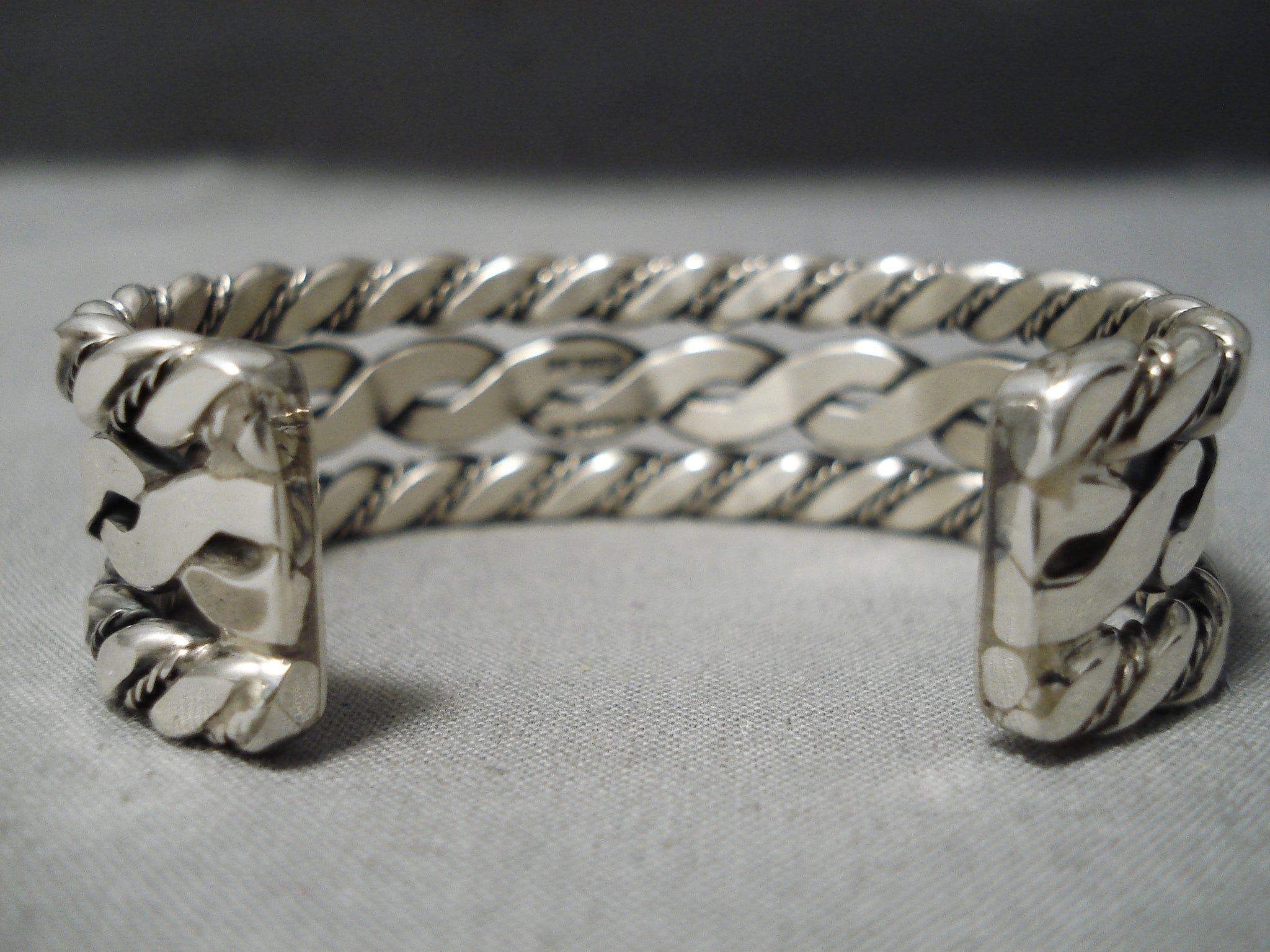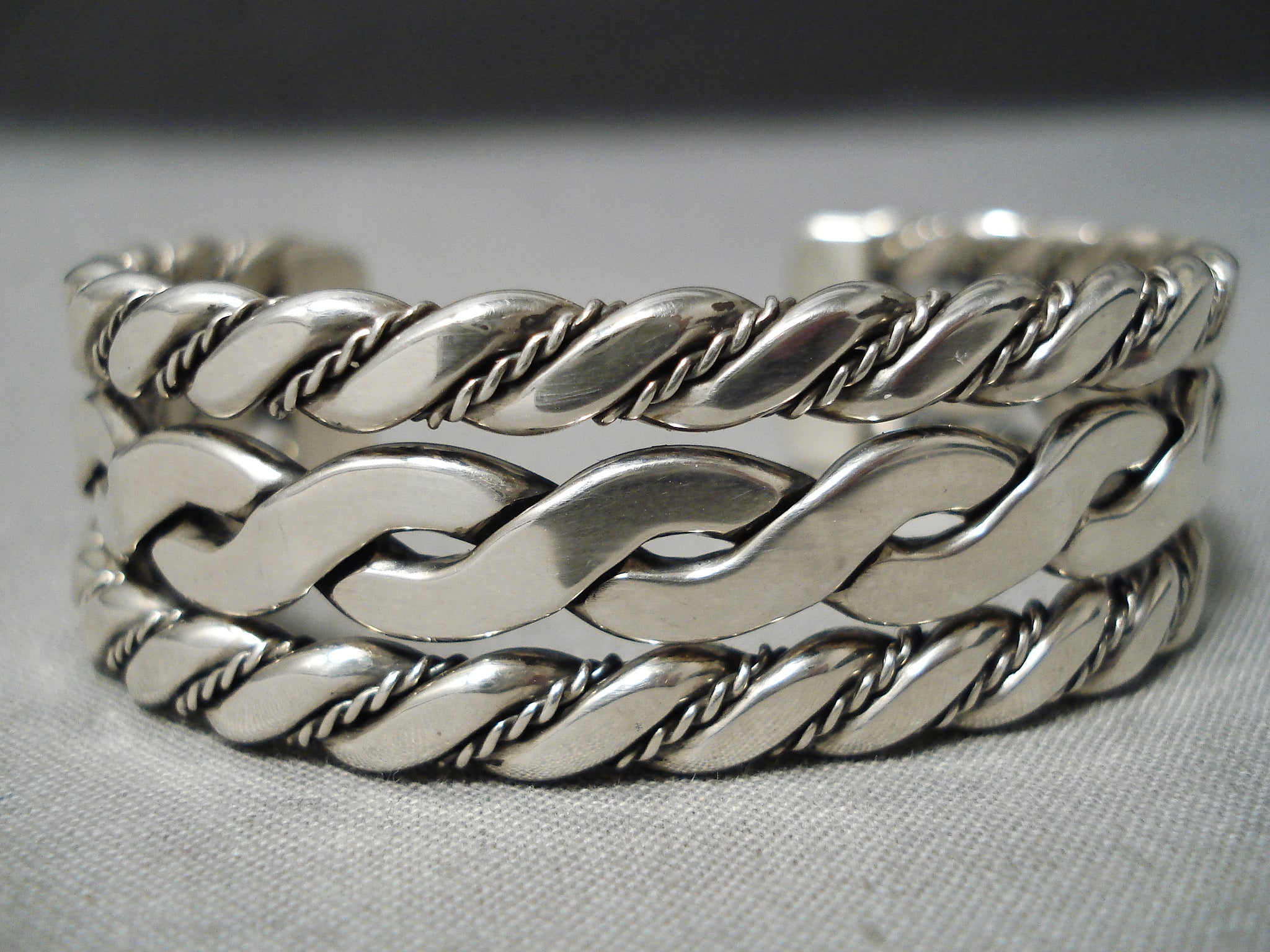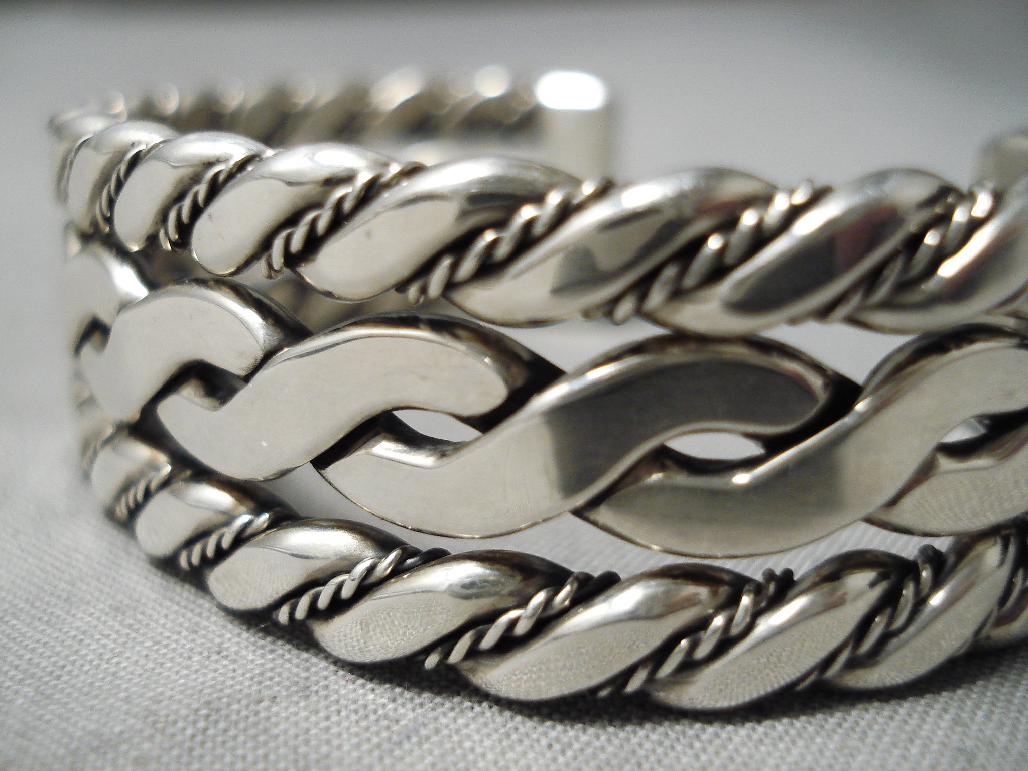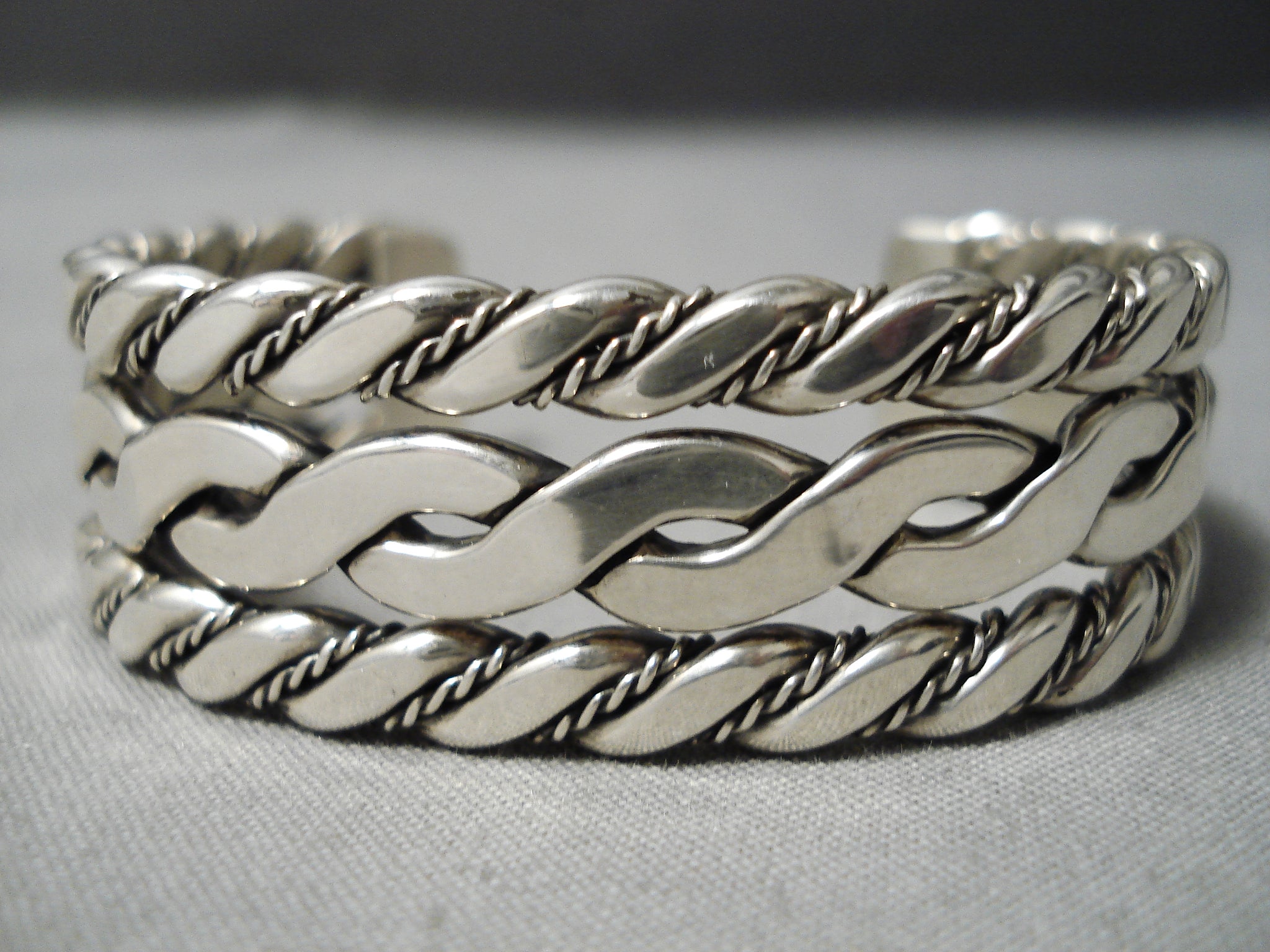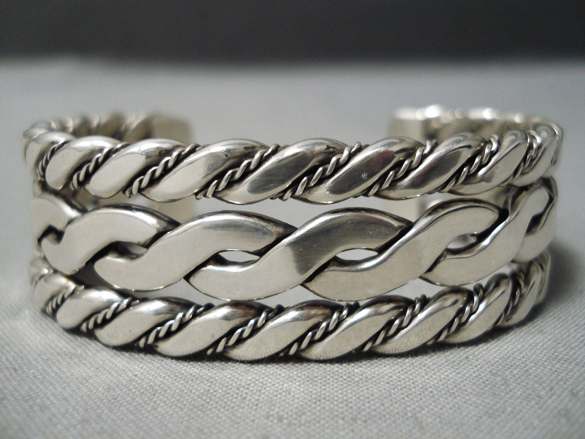 Coil Genius Native American Navajo Sterling Silver Hand Woven Bracelet Havy Cuff
