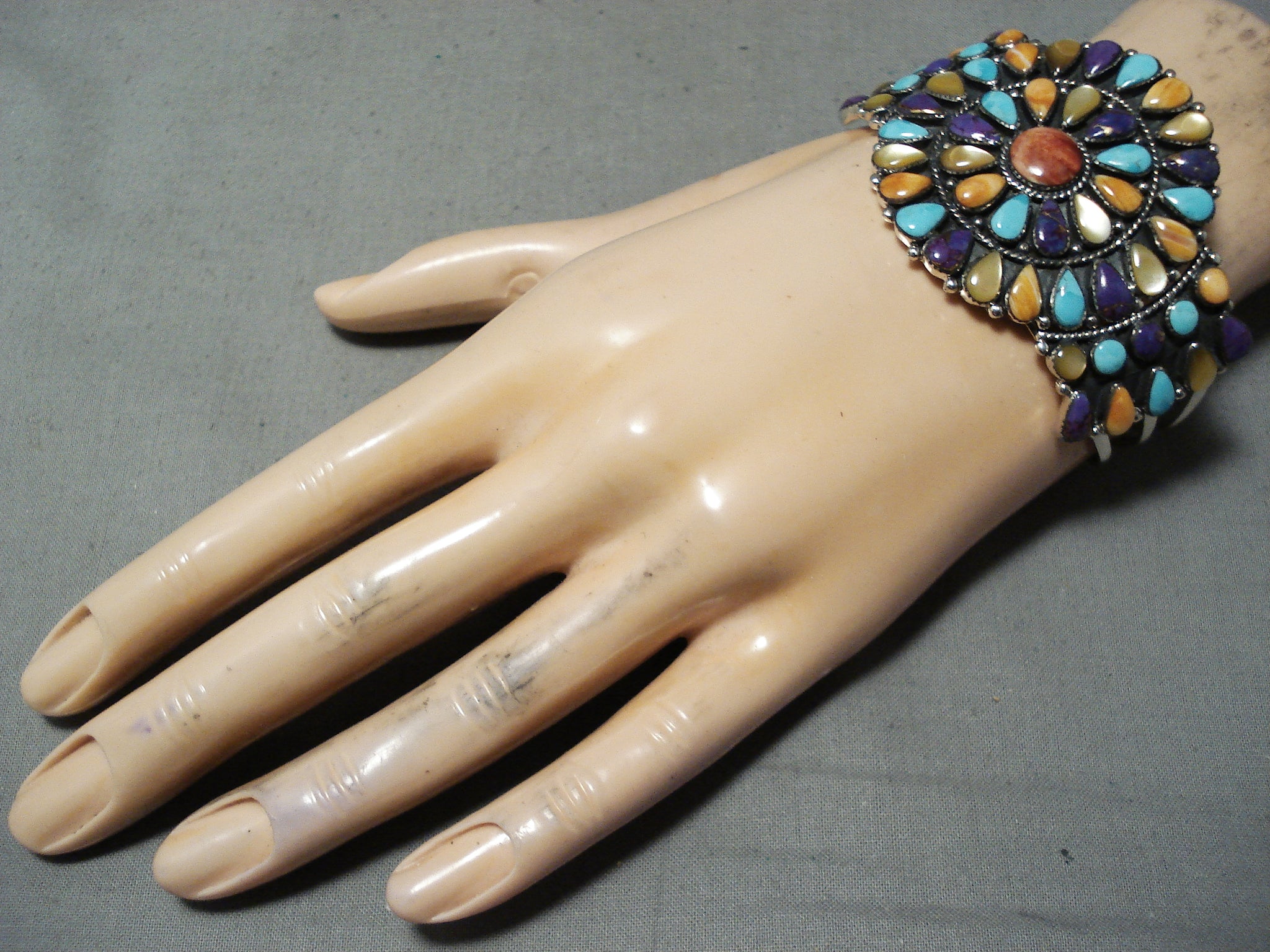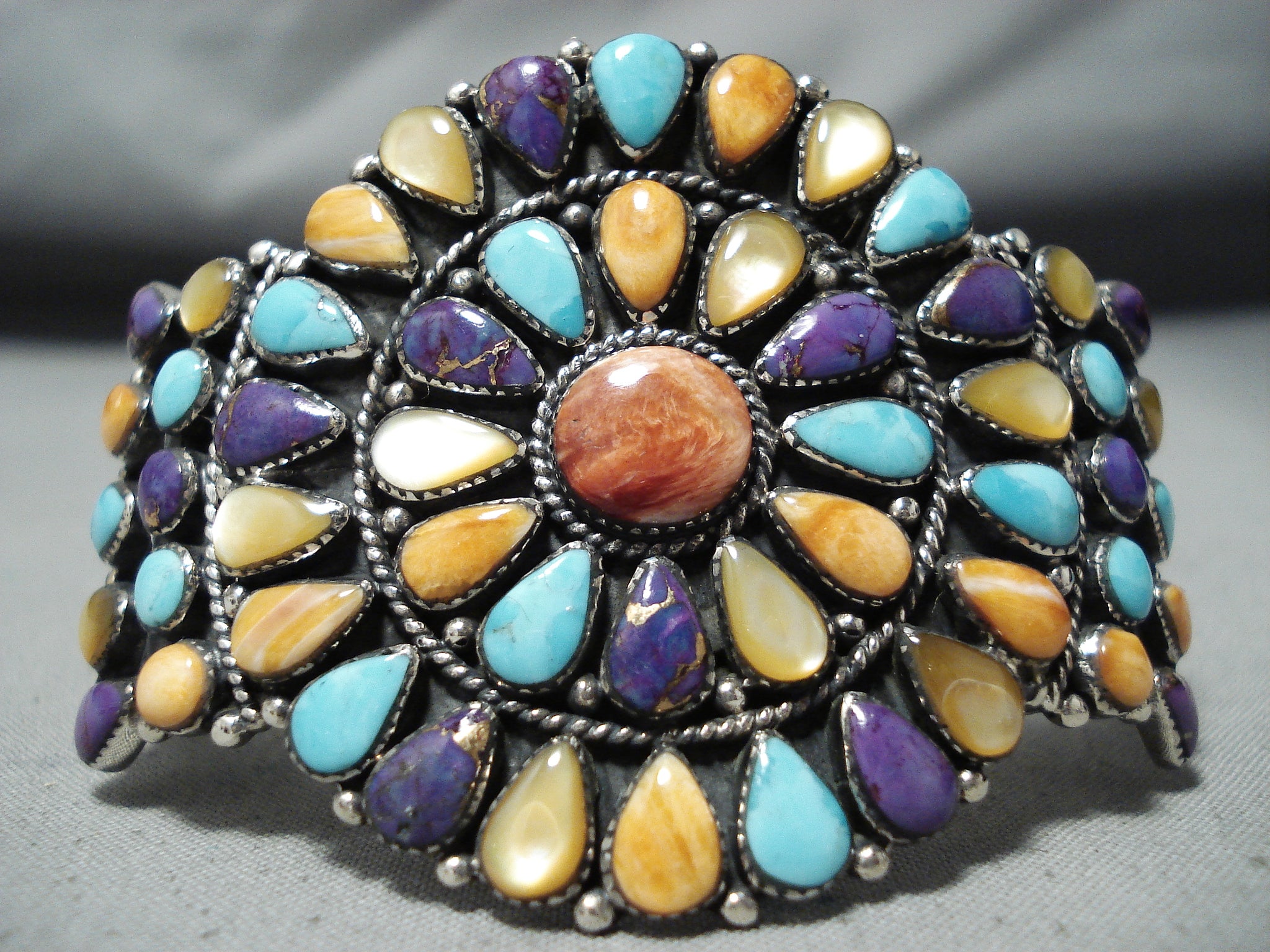Colorful Native American Navajo Turquoise Charoite Sterling Silver Shell Bracelet