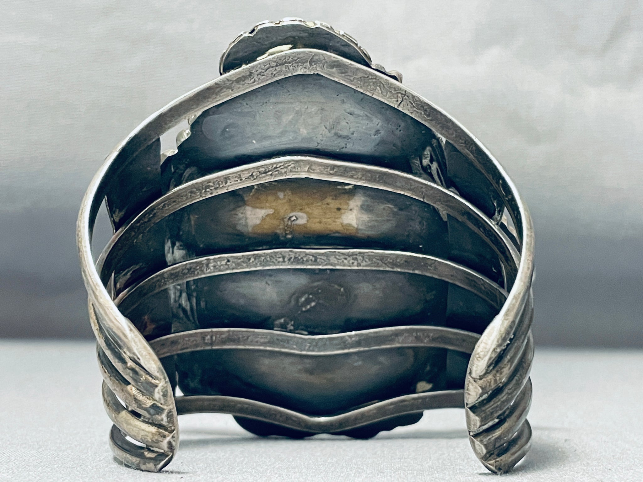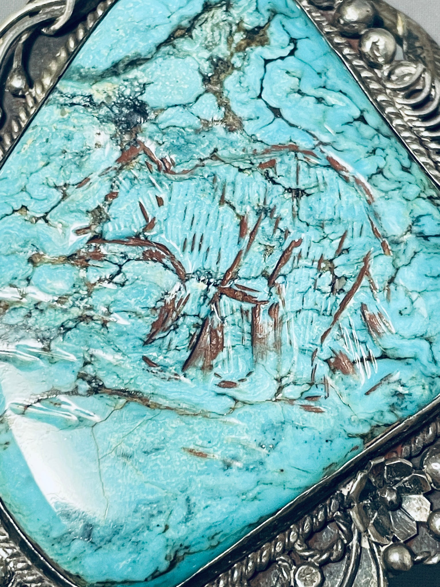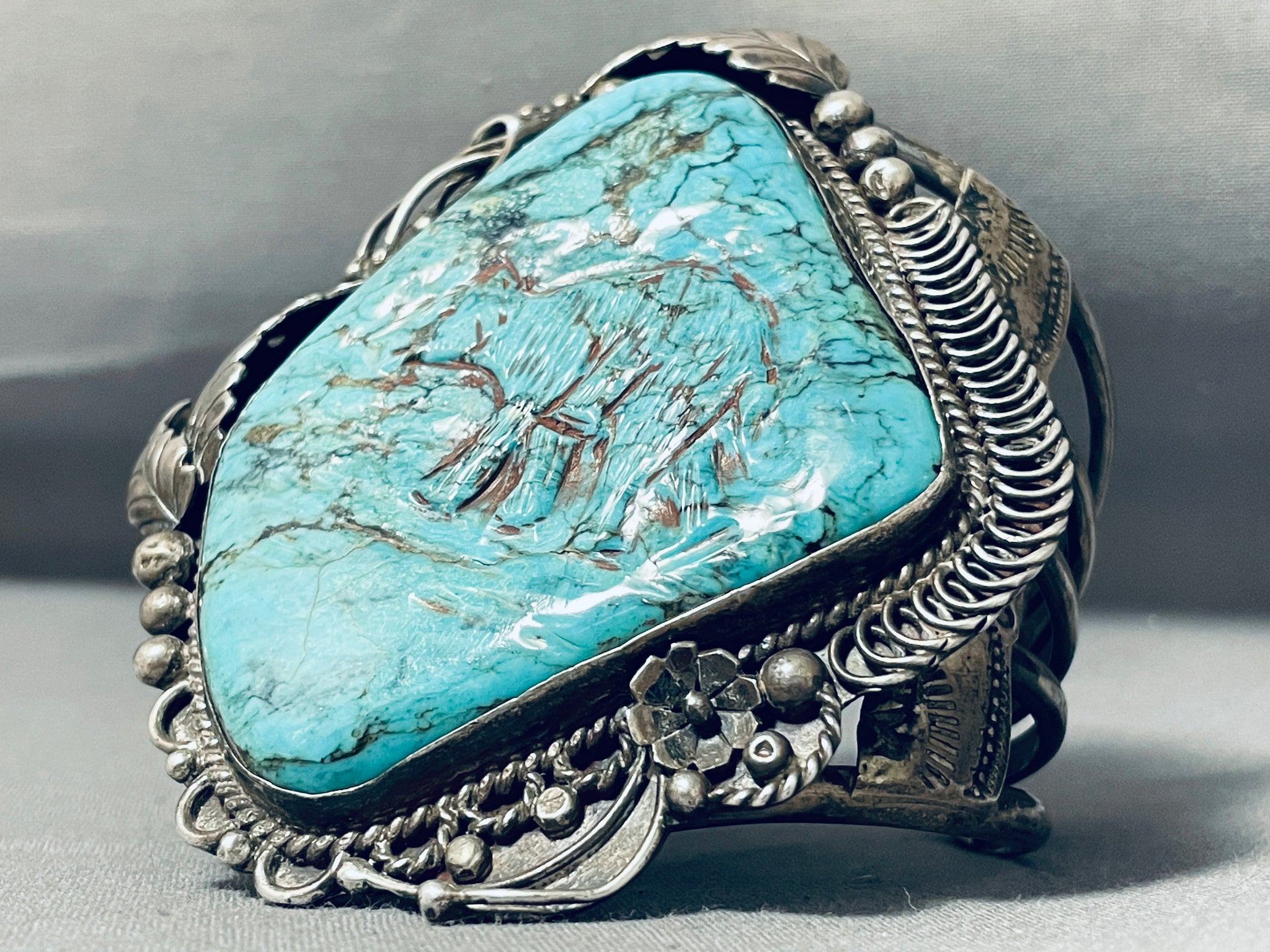 Colossal Hand Carved Bear Turquoise Vintage Native American Navajo Sterling Silver Bracelet