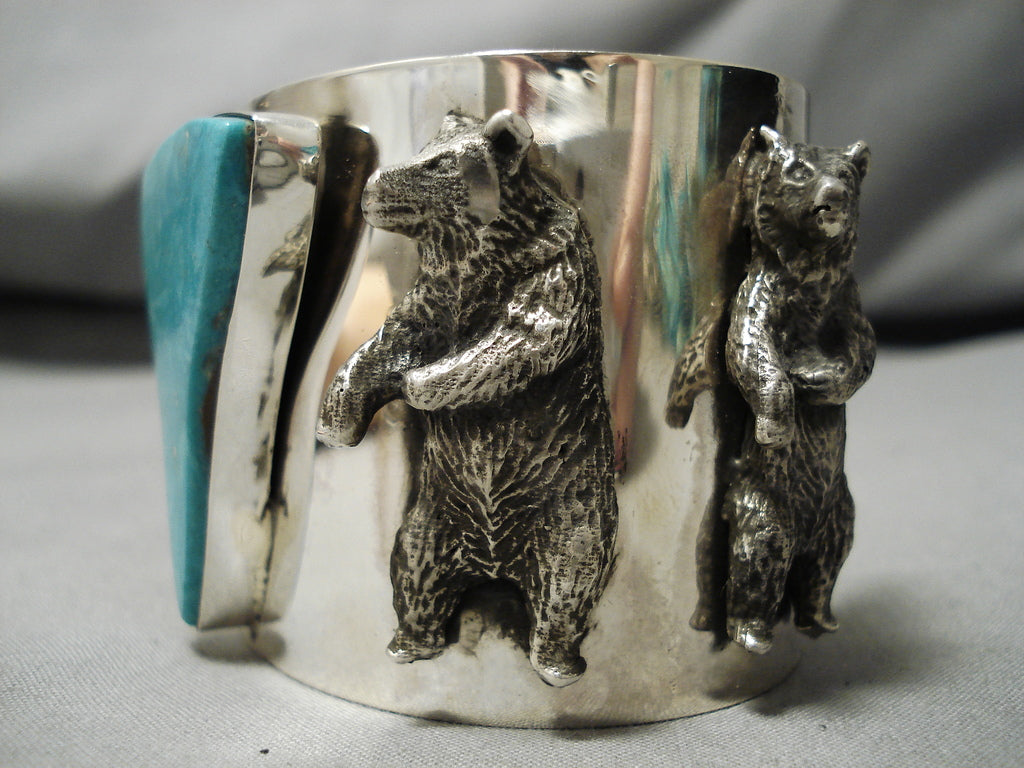 Colossal Heavy 157 Gram Turquoise Sterling Silver Bear Bracelet Cuff