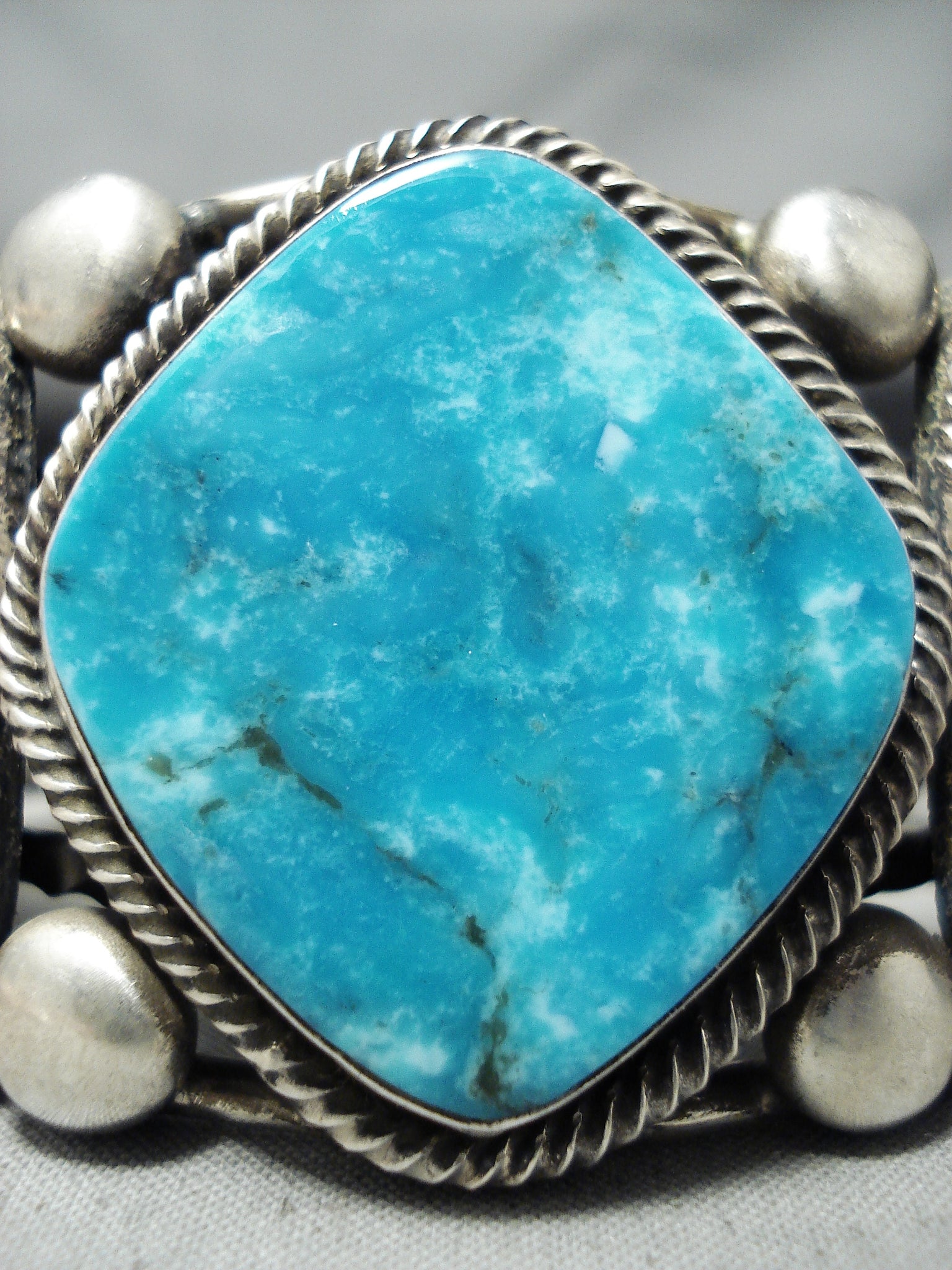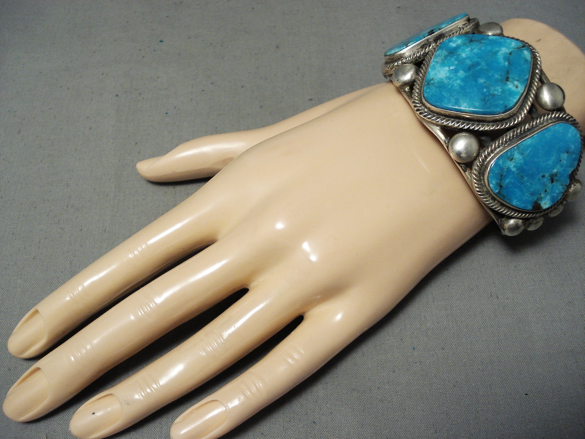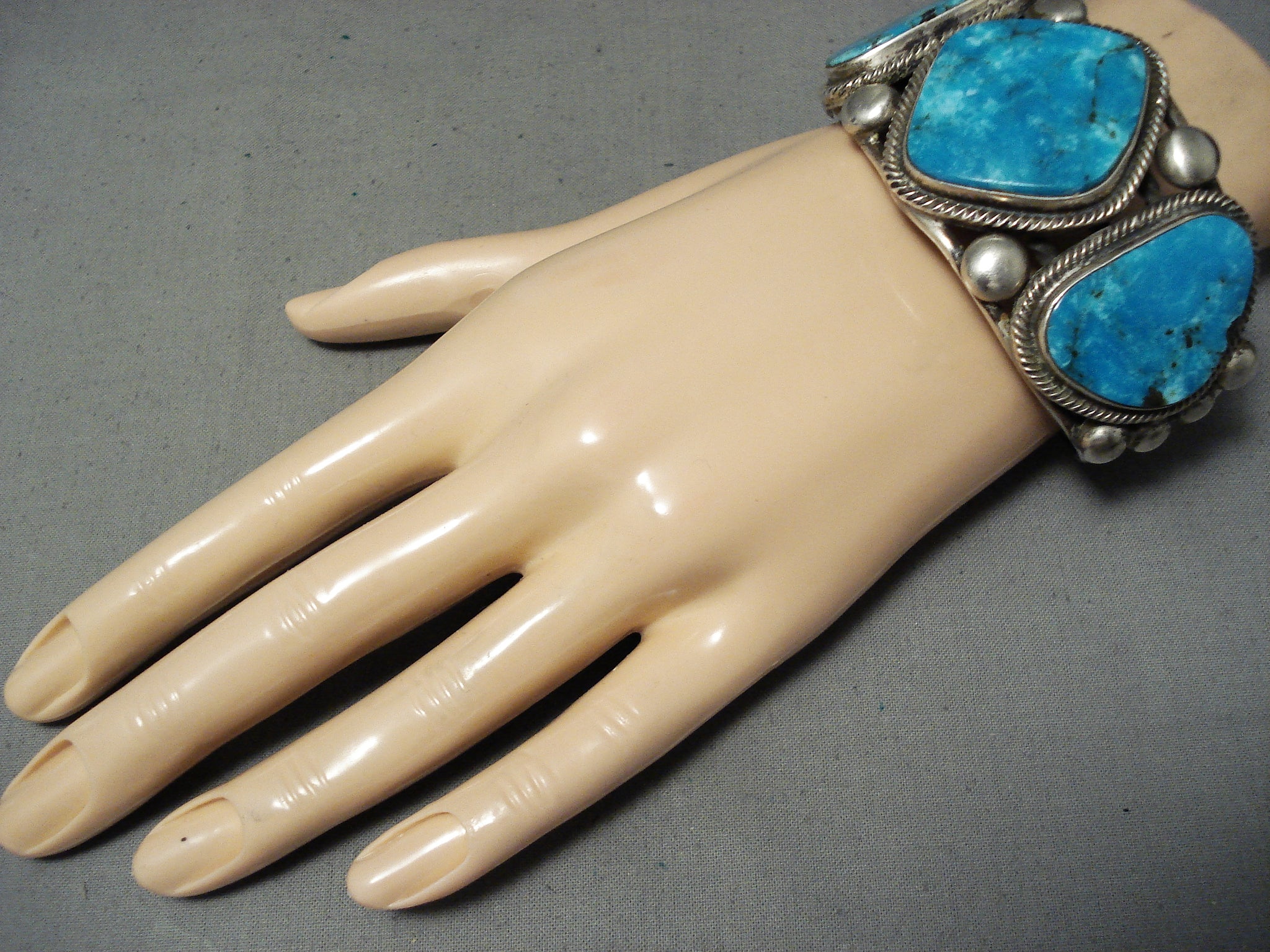 Colossal Heavy Signed Native American Navajo Vivid Turquoise Sterling Silver Bracelet