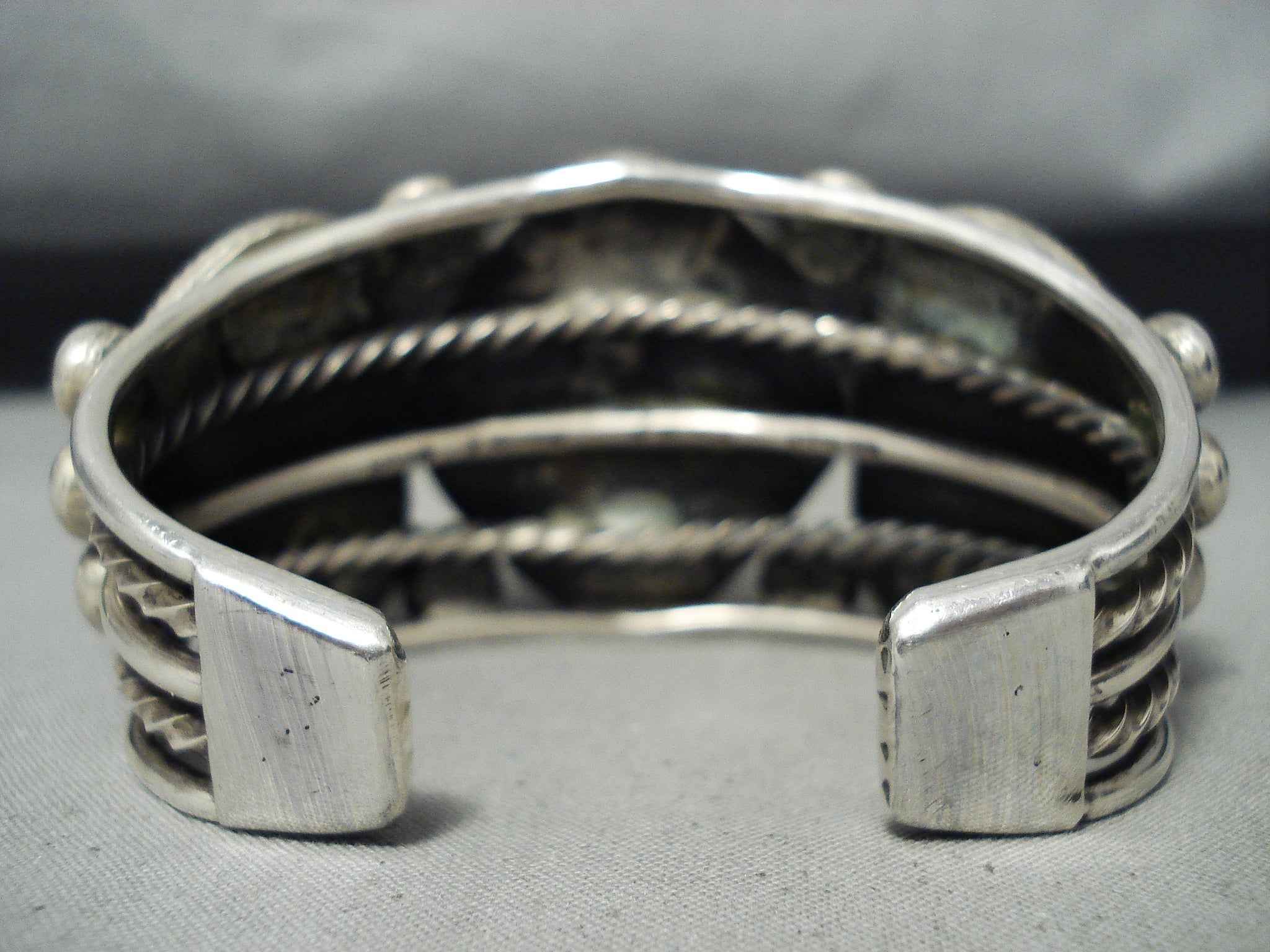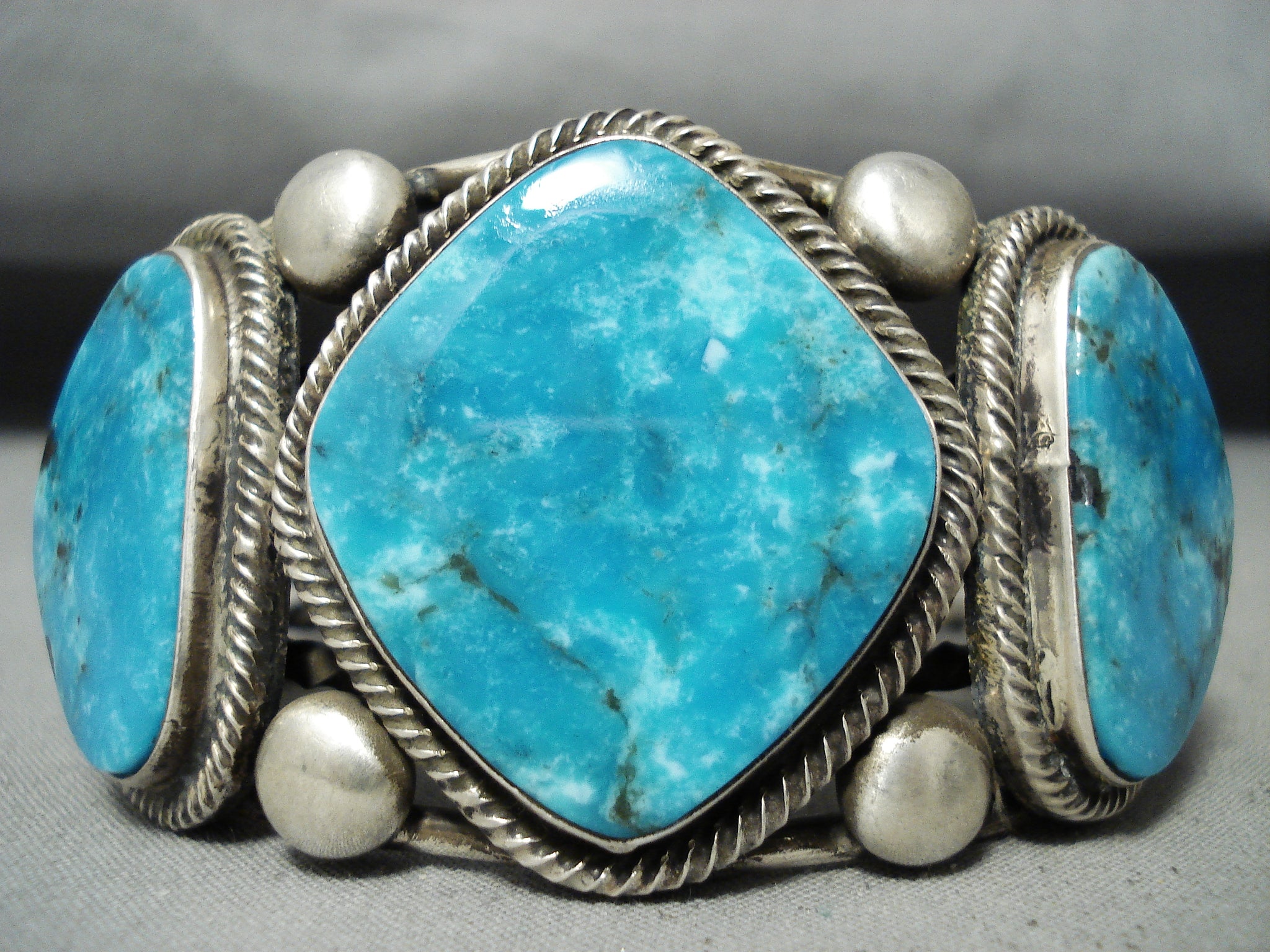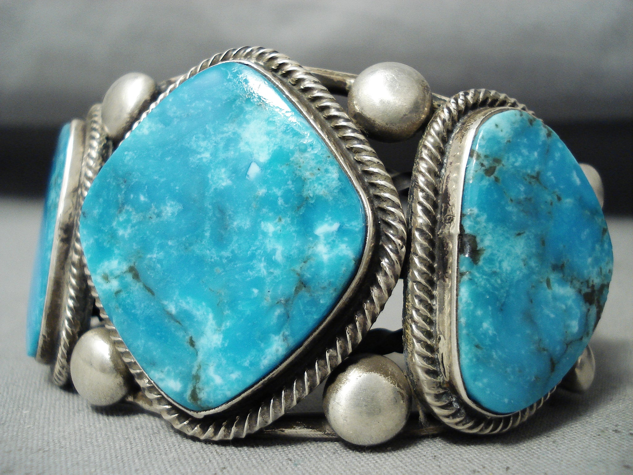Colossal Heavy Signed Native American Navajo Vivid Turquoise Sterling Silver Bracelet