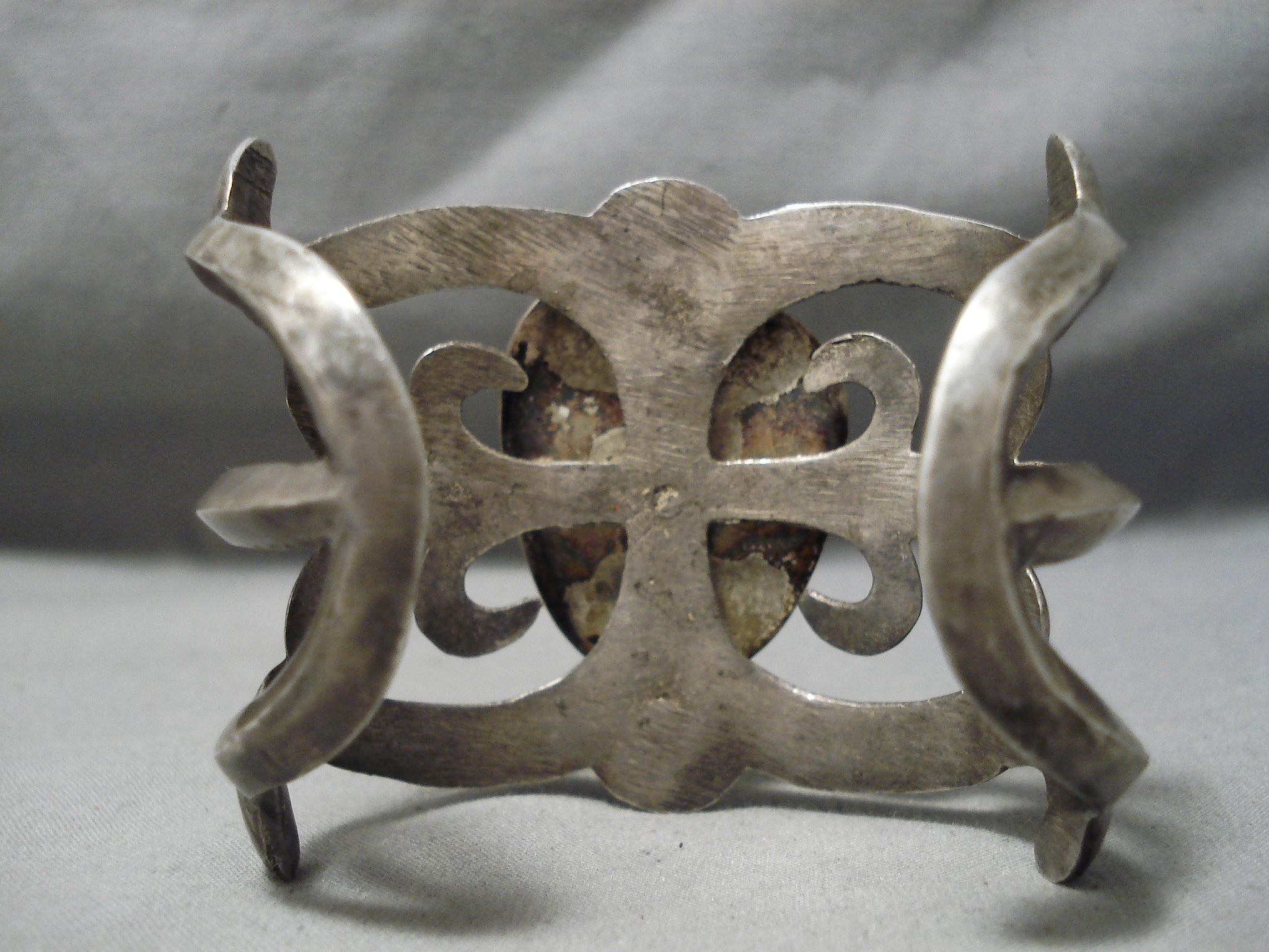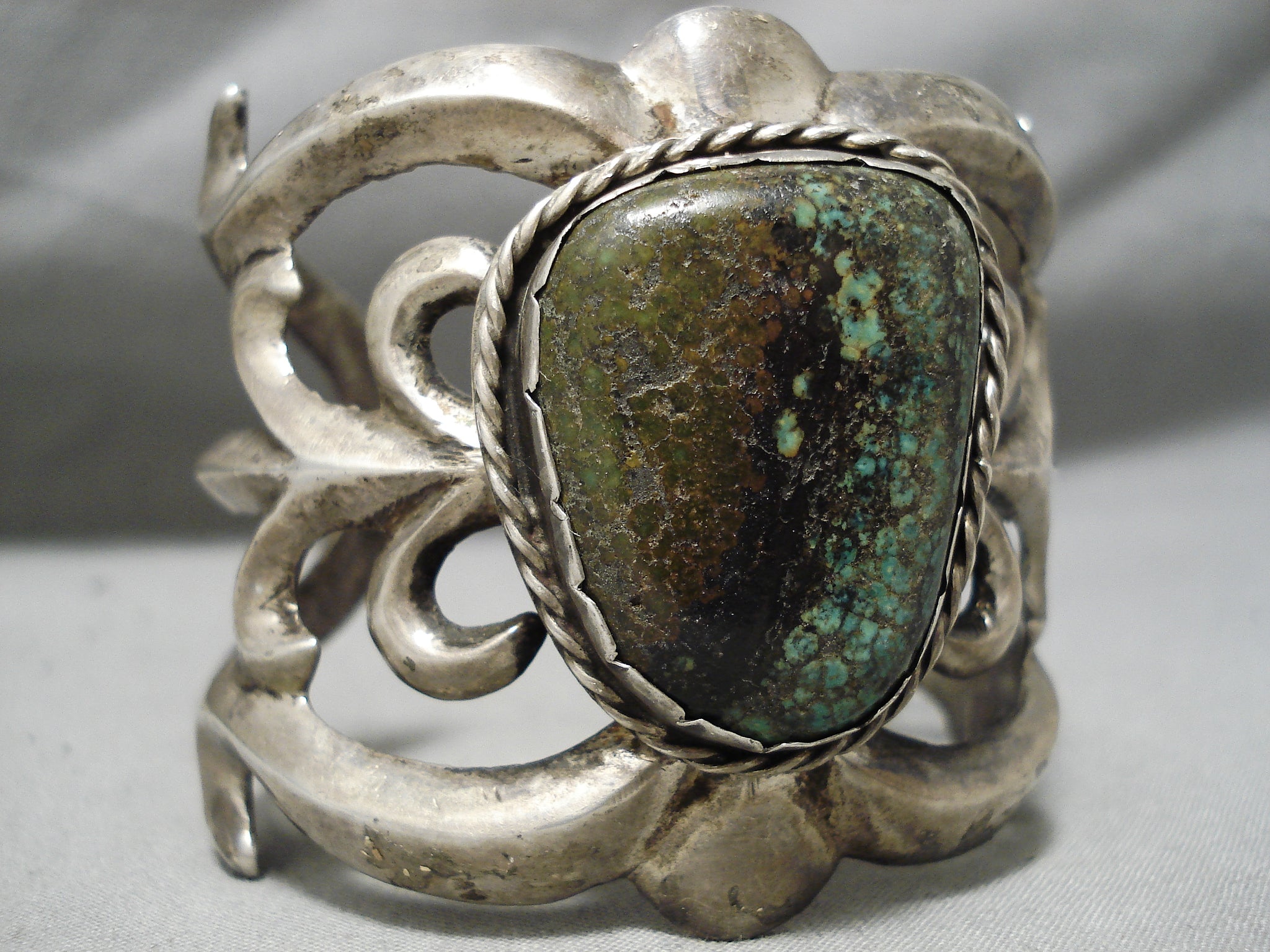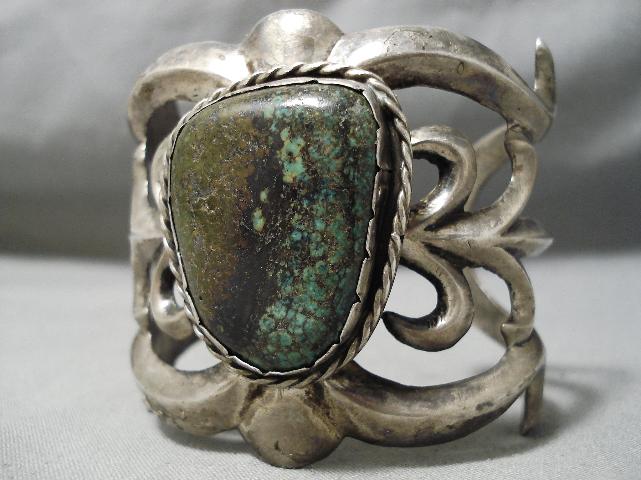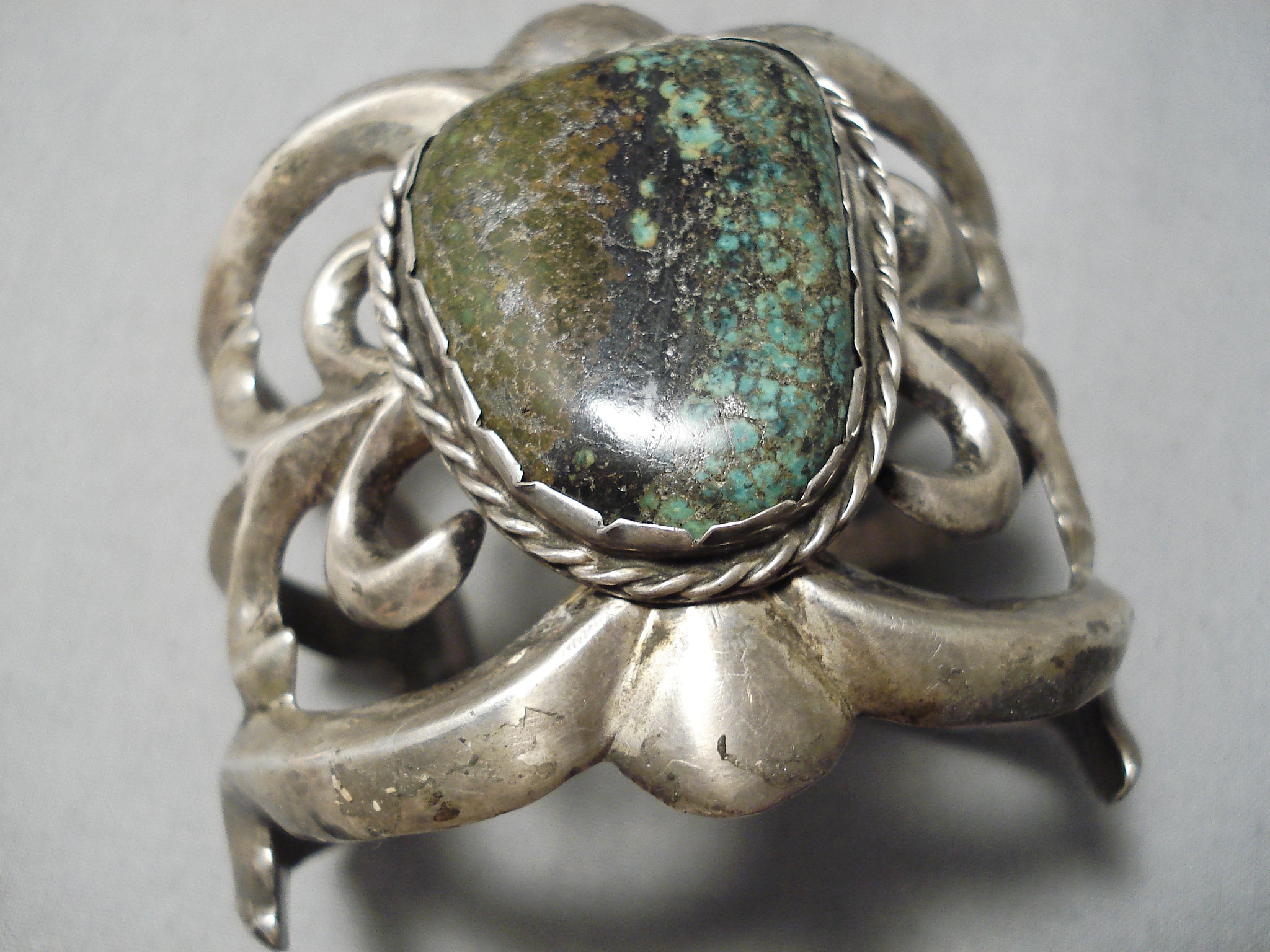 Colossal Heavy Vintage Native American Navajo Green Turquoise Sterling Silver Bracelet Old