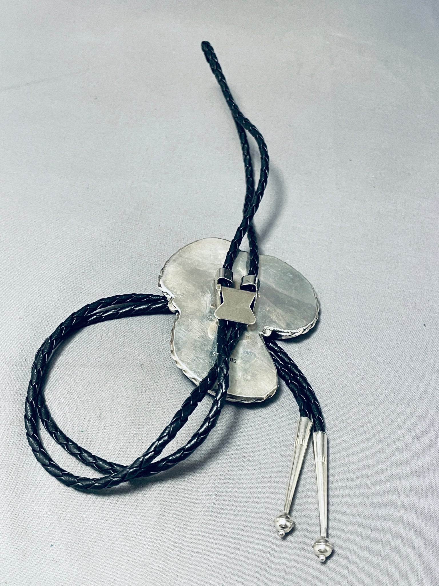 Colossal Mens Turquoise Pool Sterling Silver Native American Navajo Bolo Tie