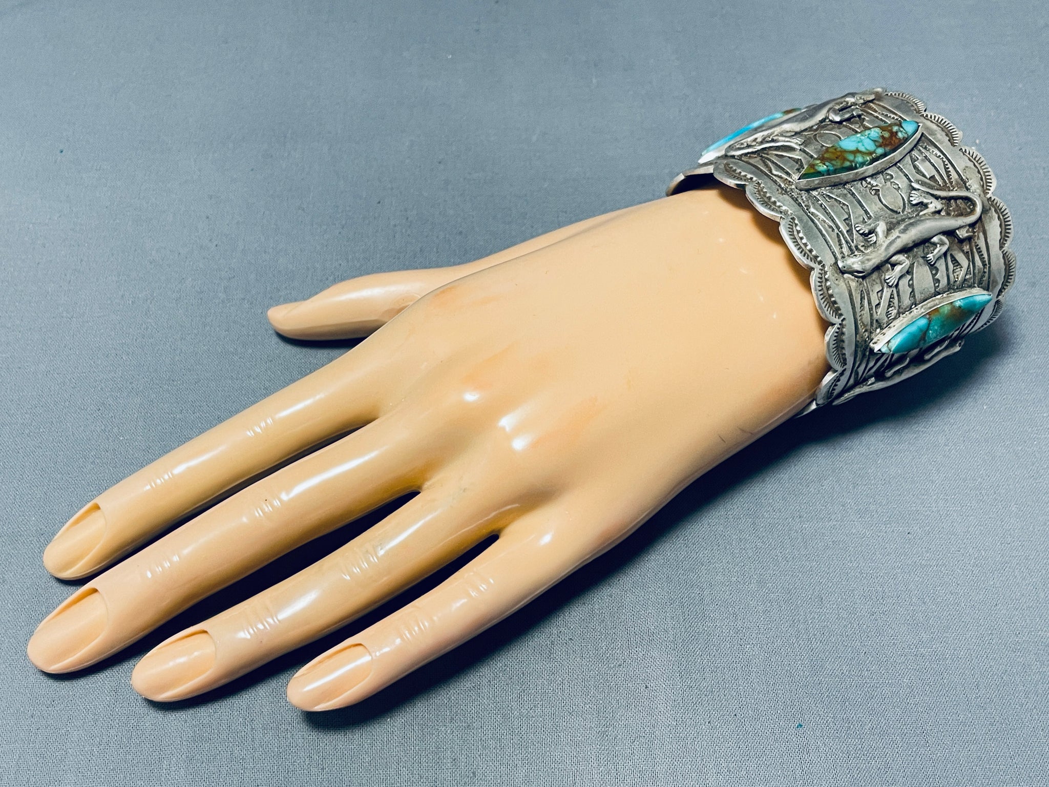 Colossal Native American Navajo 3 Royston Turquoise 4 Sterling Silver Gekkos Bracelet