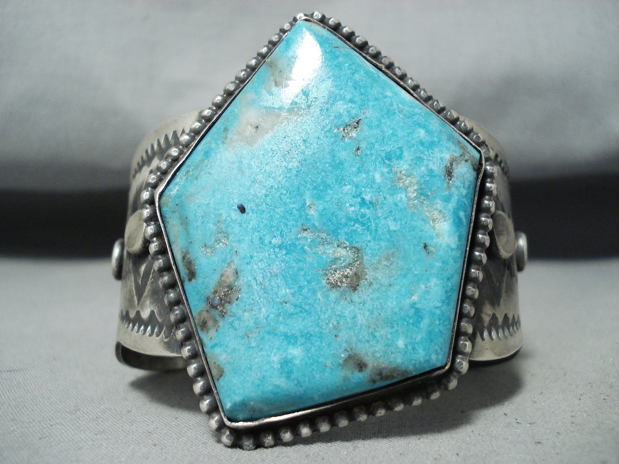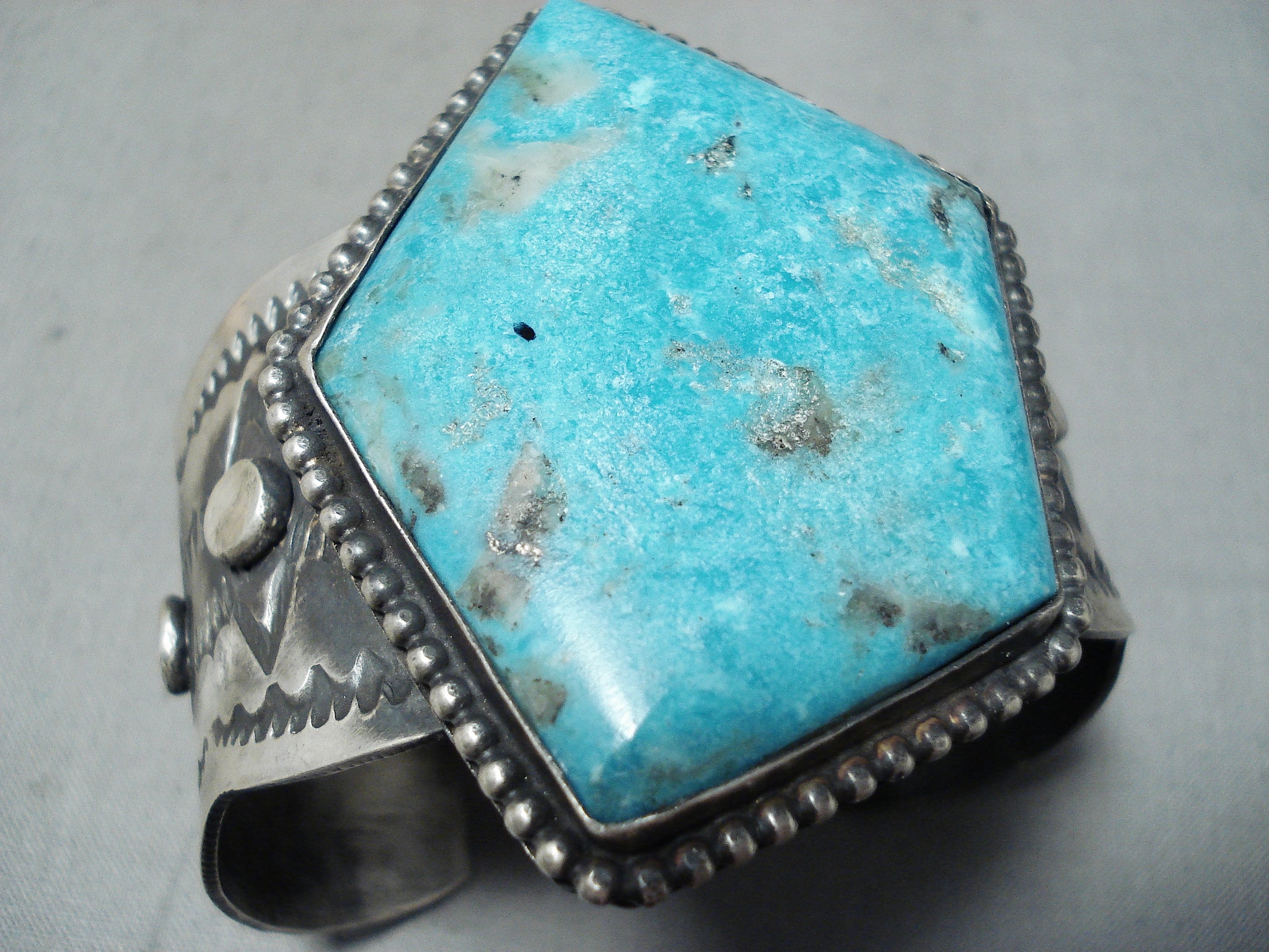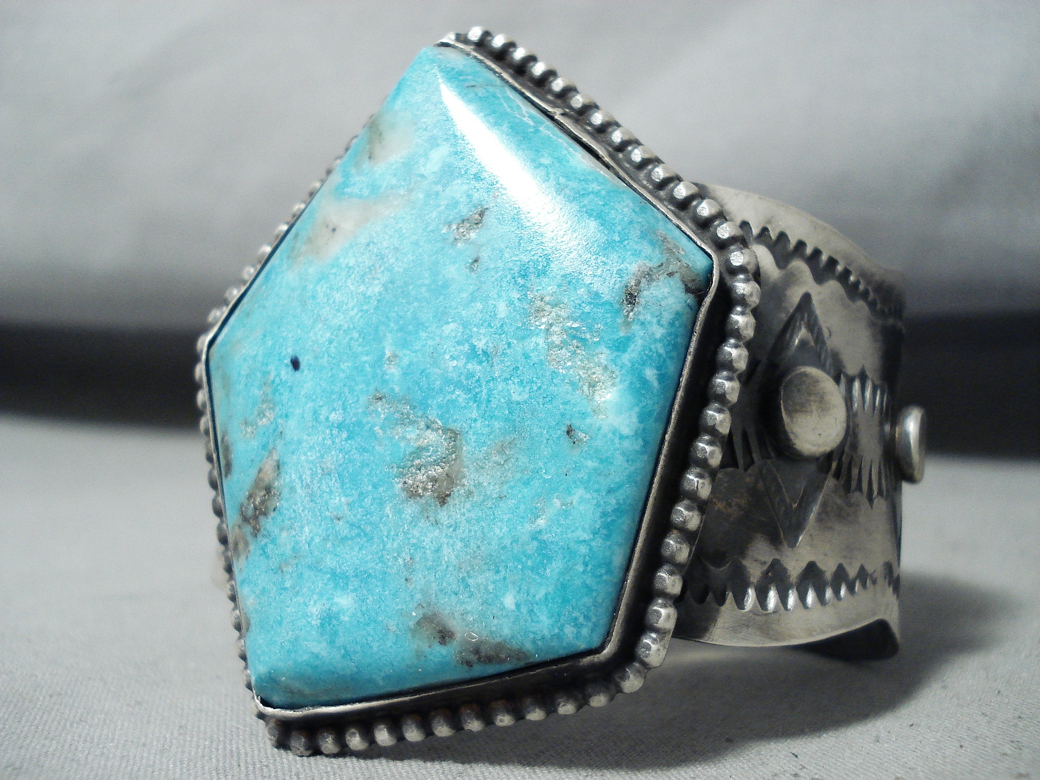 Colossal Native American Navajo Pilot Mountain Turquoise Sterling Silver Bracelet