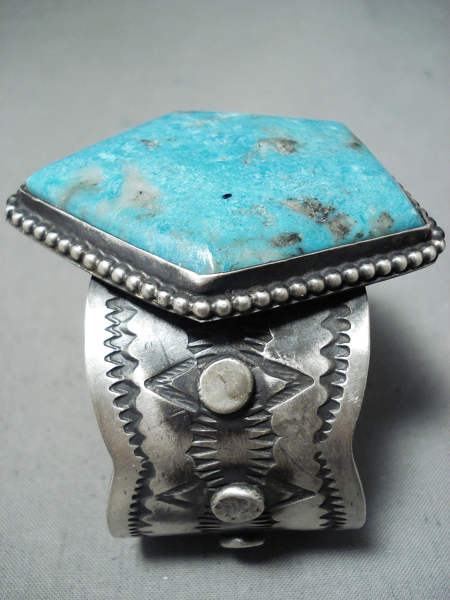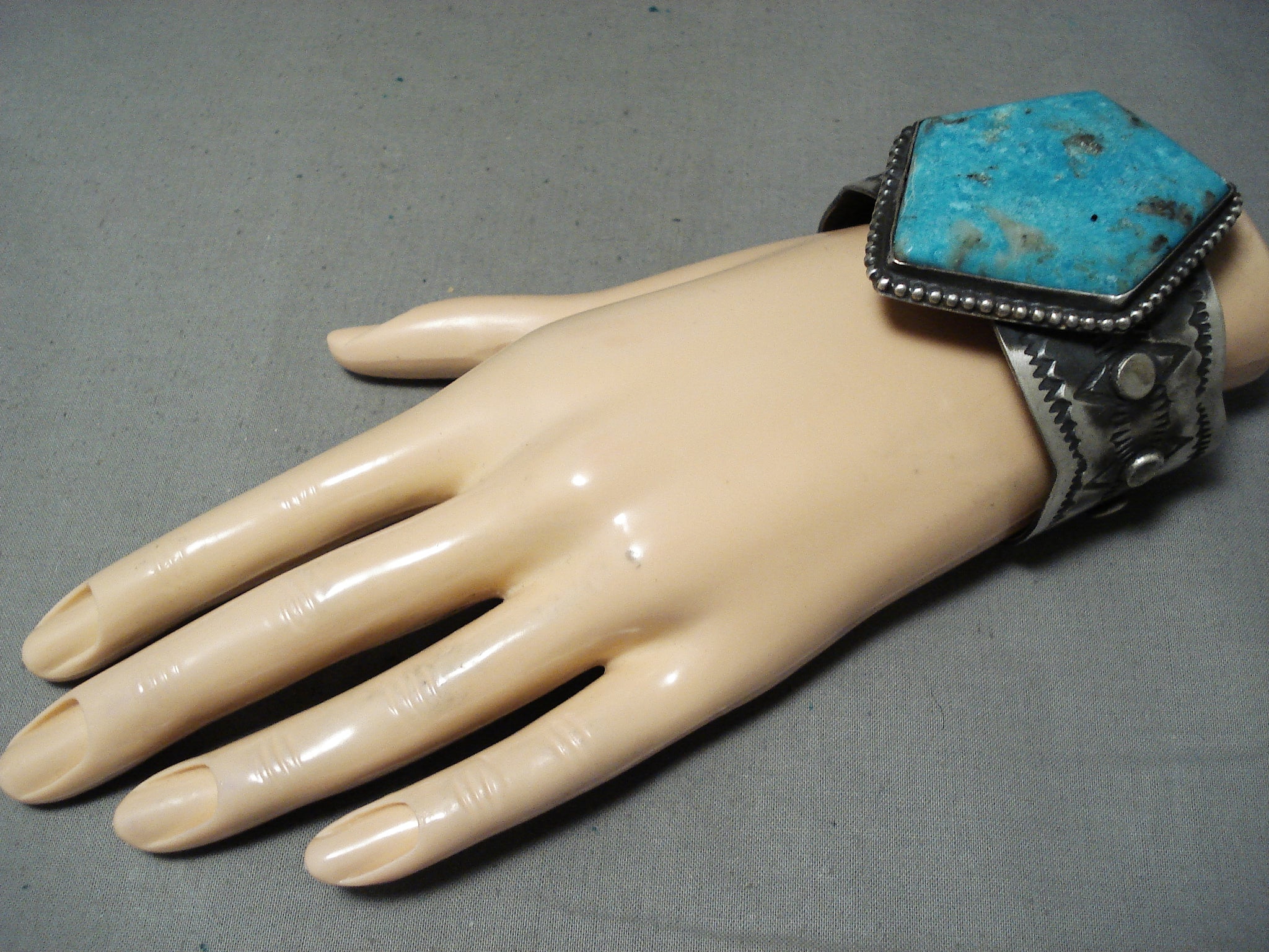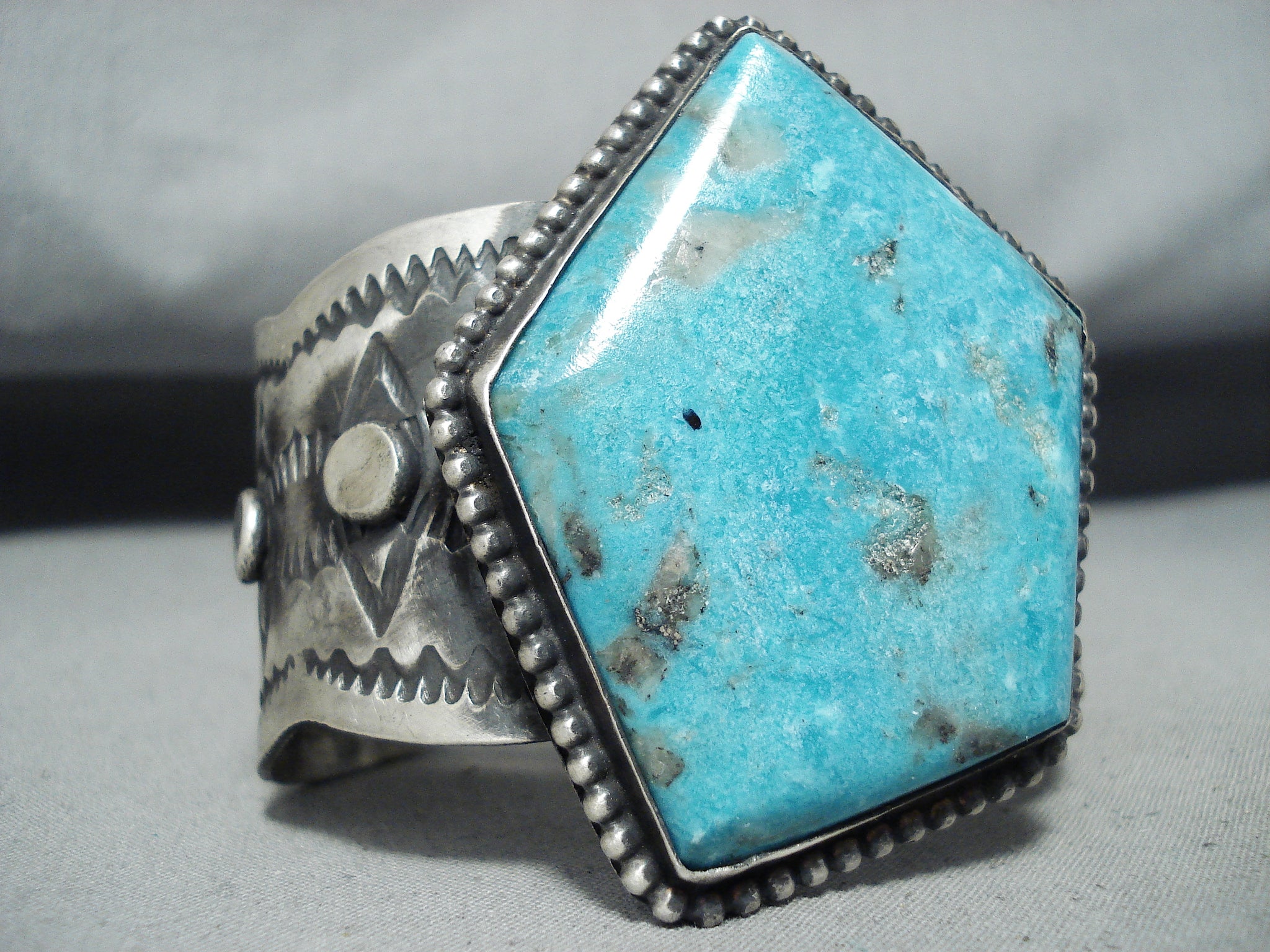 Colossal Native American Navajo Pilot Mountain Turquoise Sterling Silver Bracelet