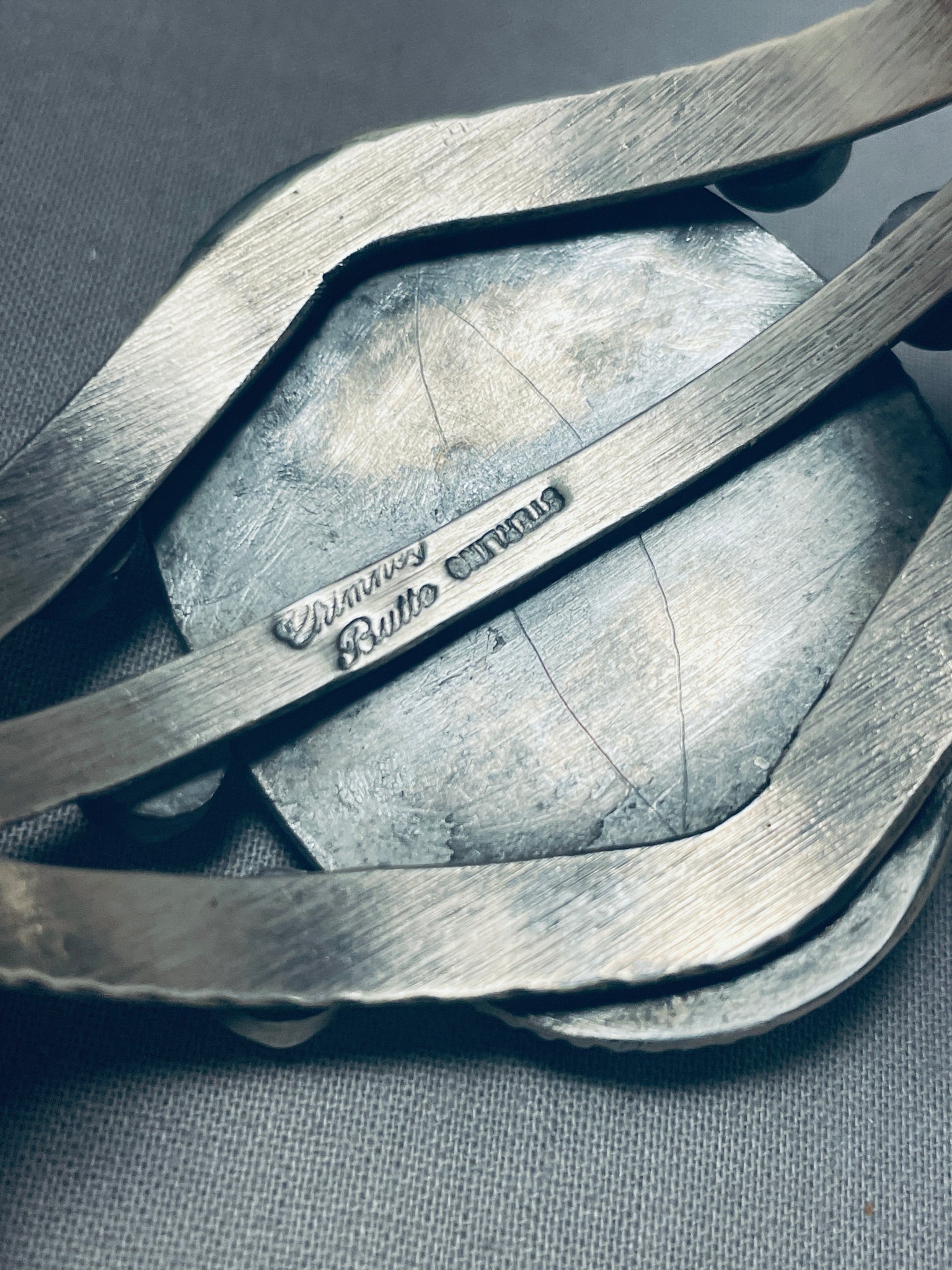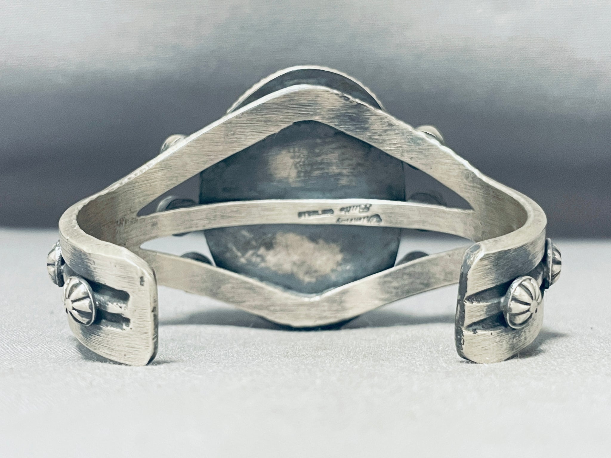 Colossal Native American Navajo Signed 8 Turquoise Orange Spiny Sterling Silver Bracelet
