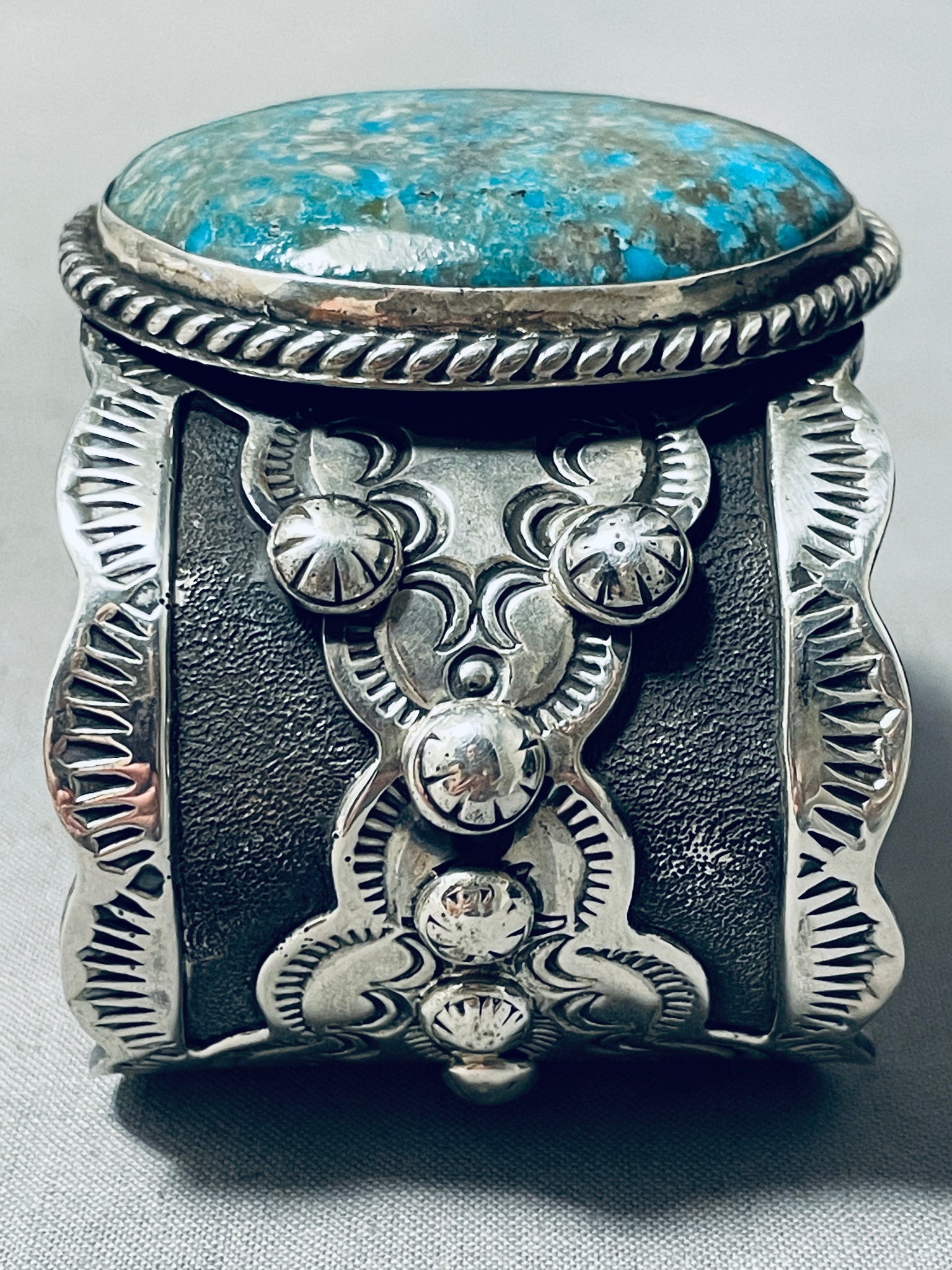 Colossal Native American Navajo Signed Pilot Mountain Turquoise Sterling Silver Bracelet