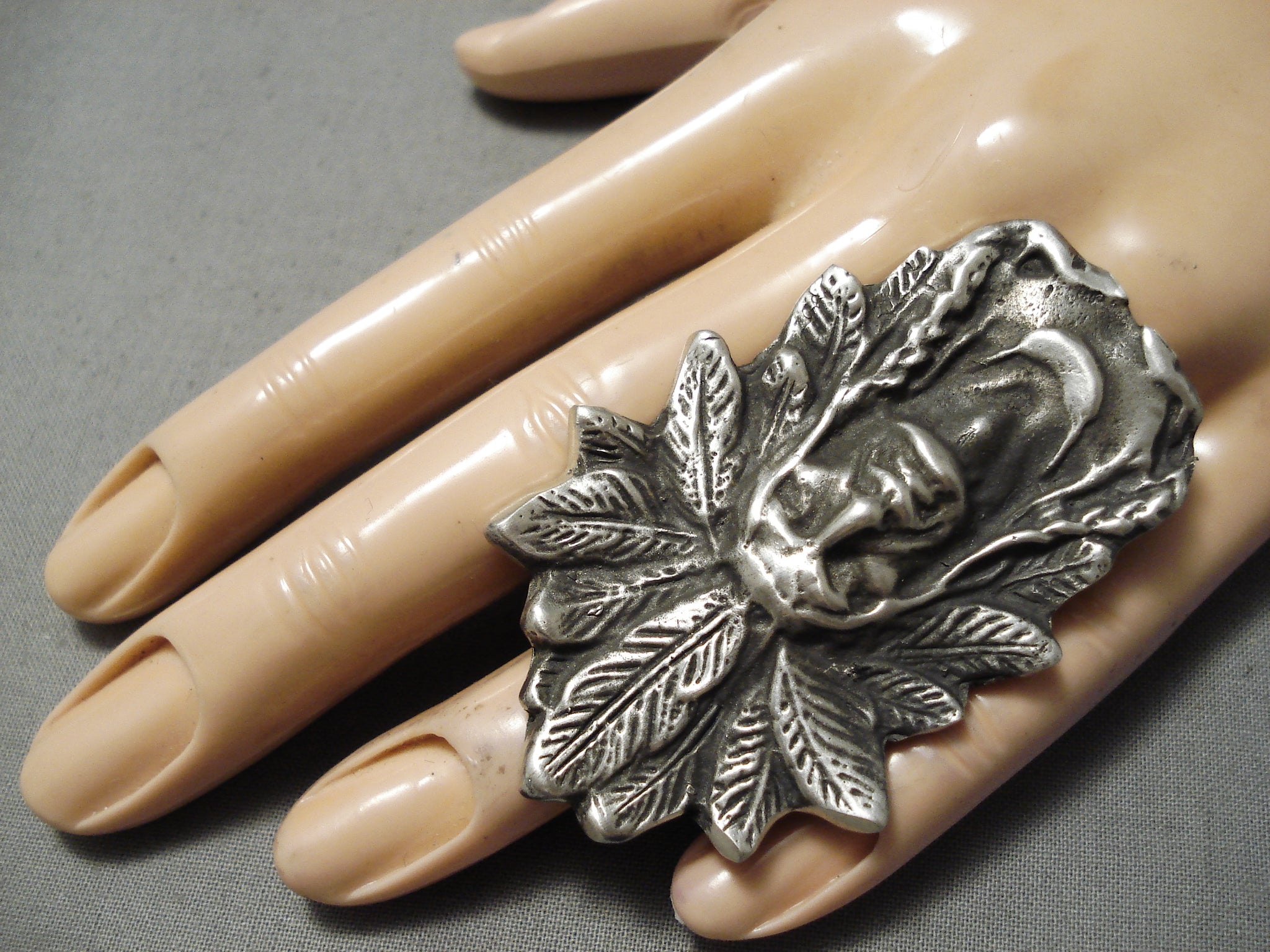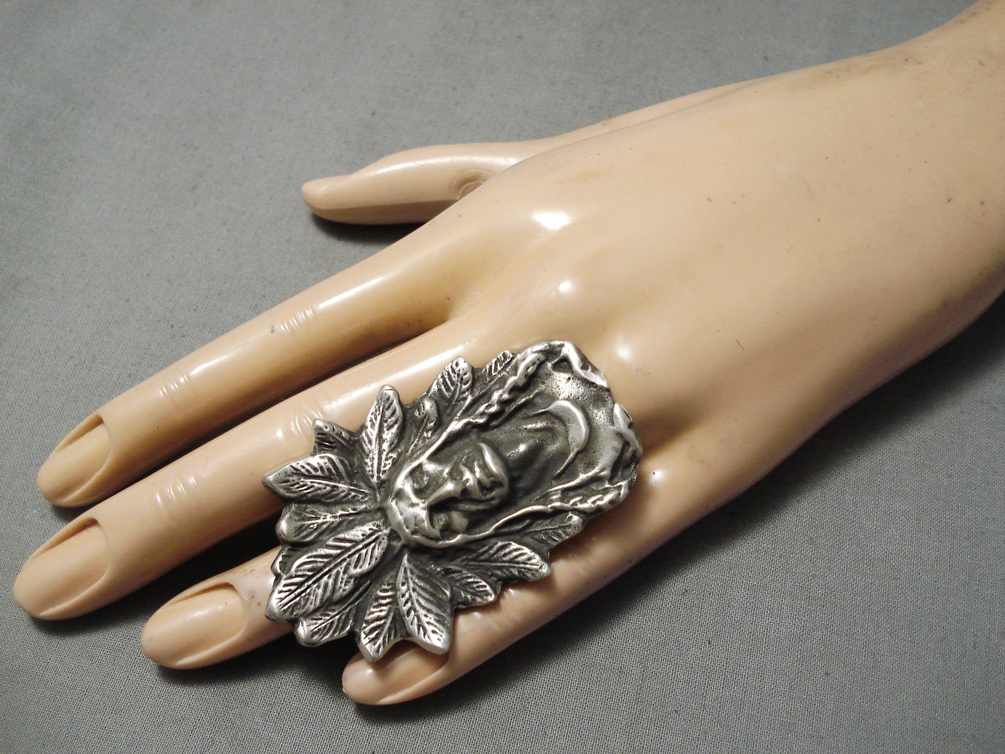 Colossal Native American Navajo Sterling Silver Feather Chief Ring