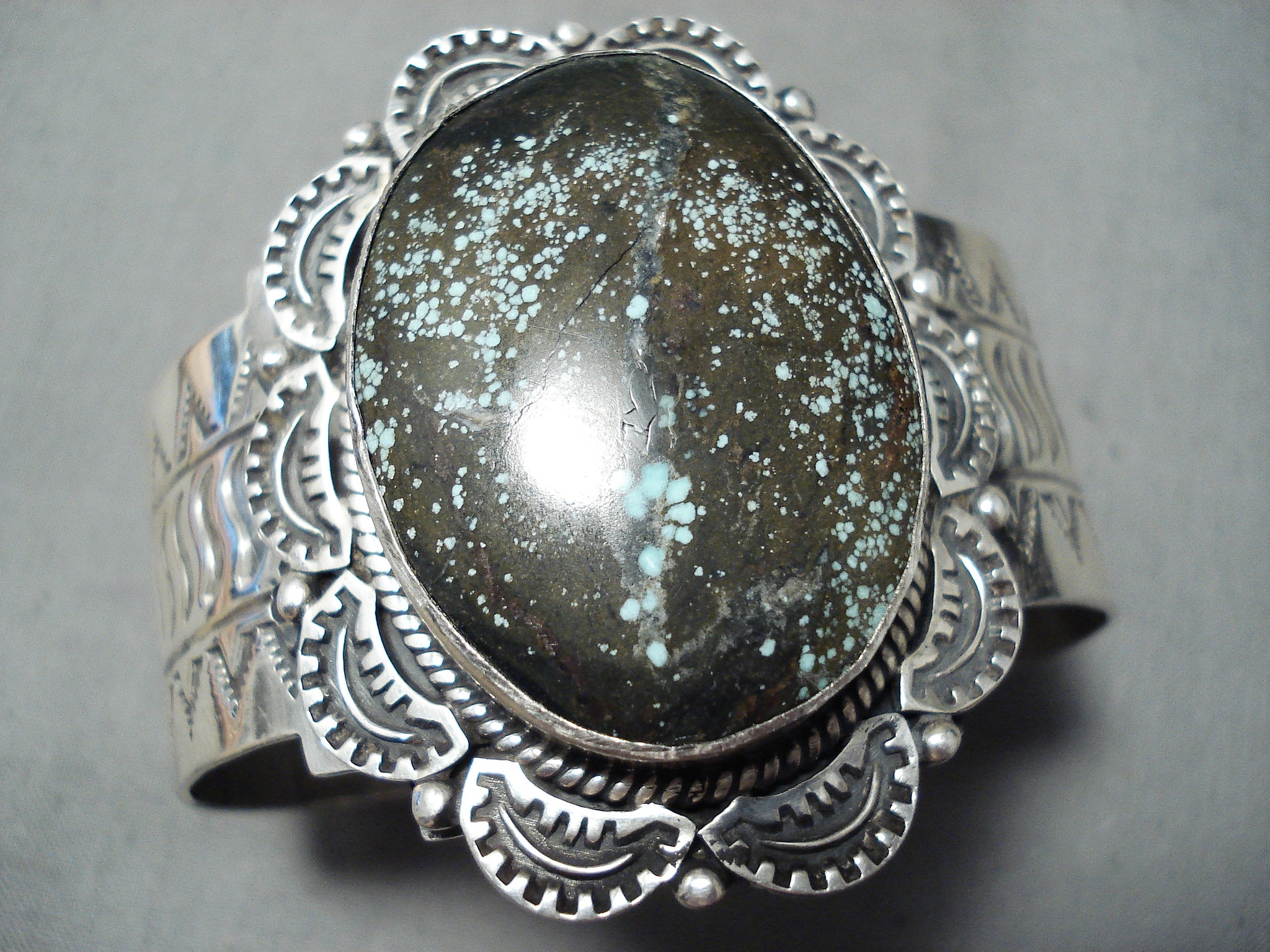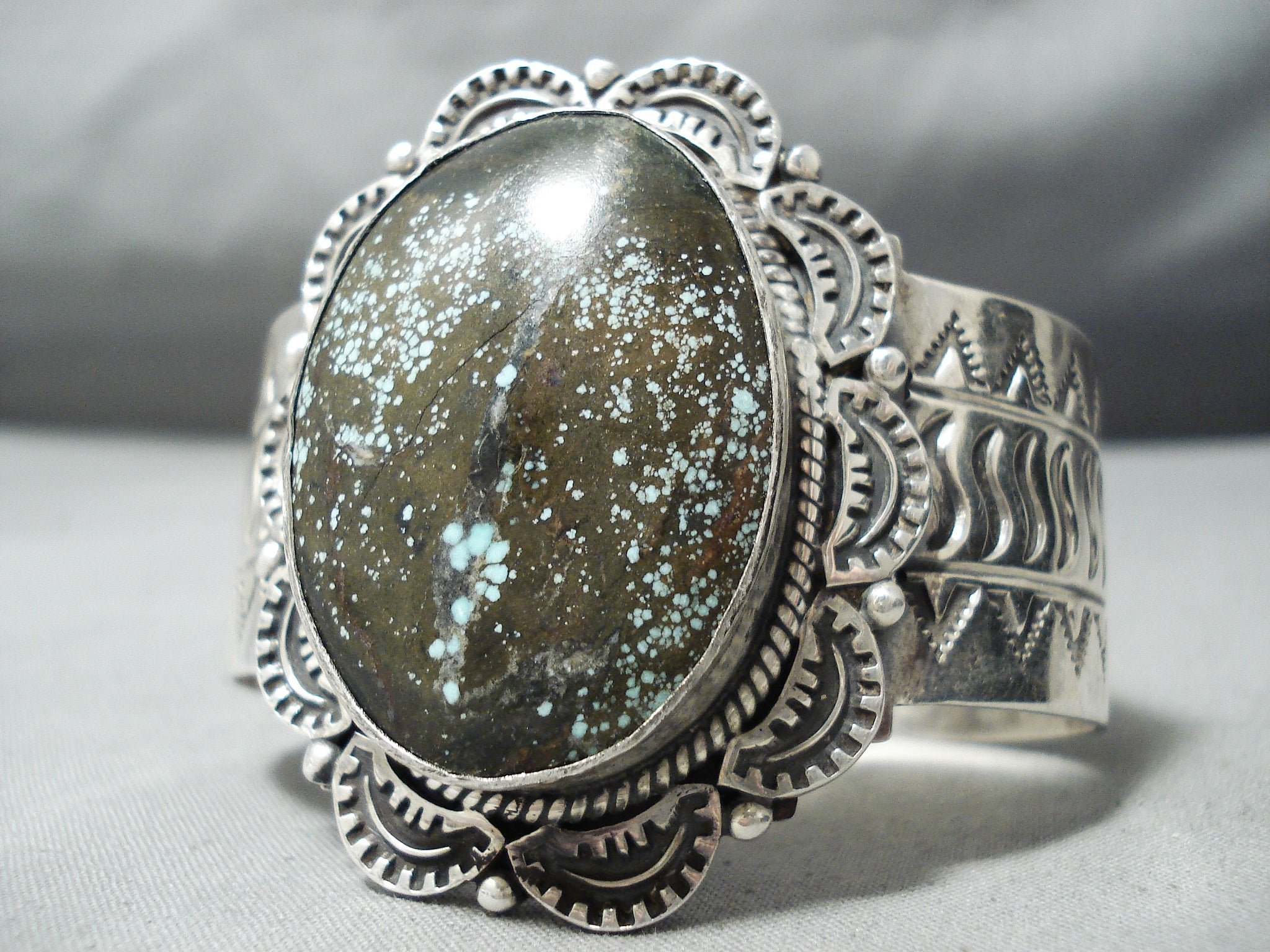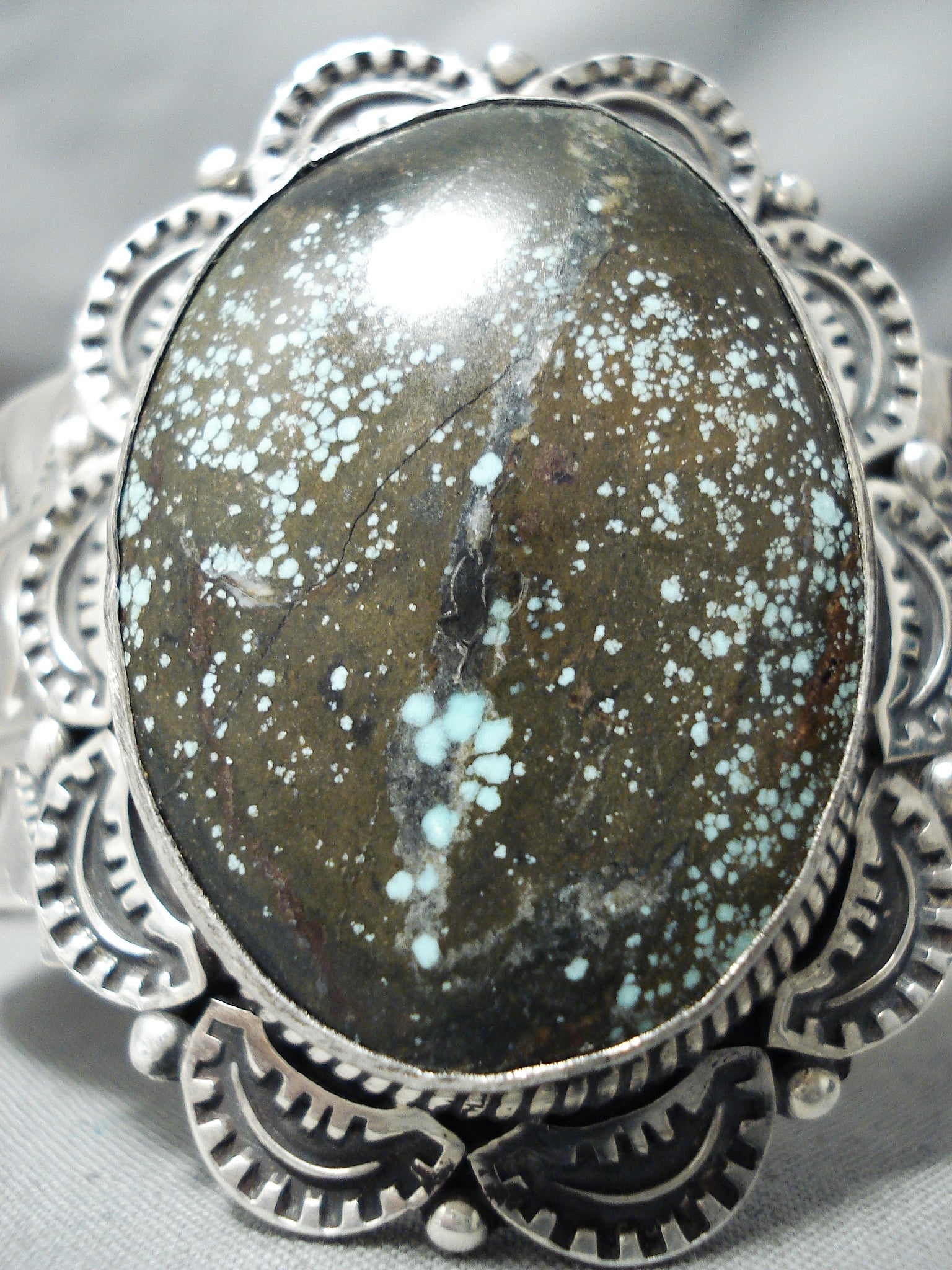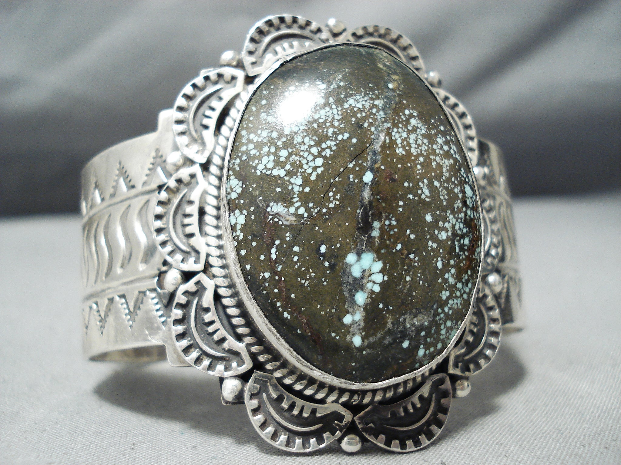 Colossal Navajo Native American Spiderweb Turquoise Sterling Silver Bracelet