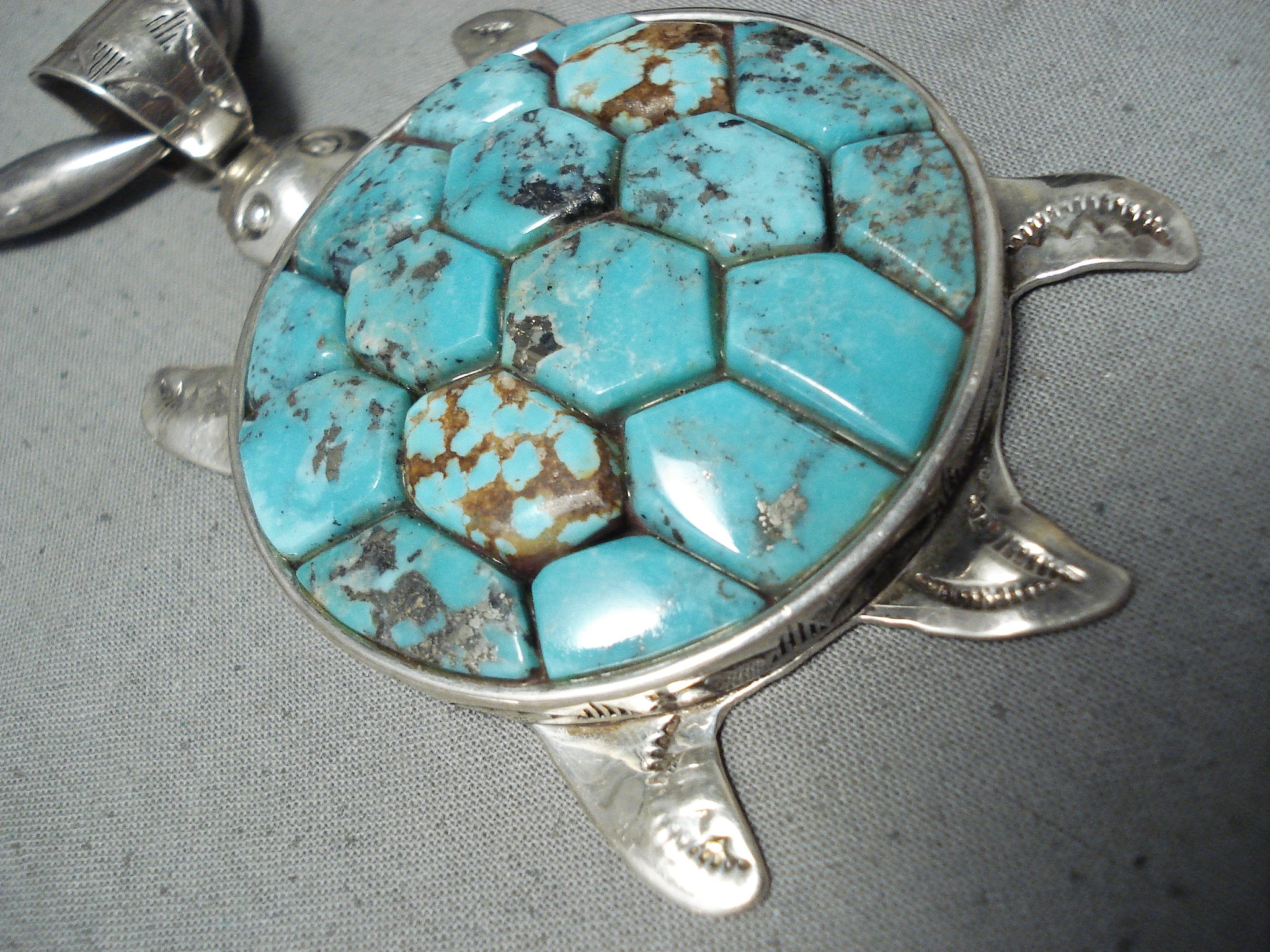 Colossal Turtle Vintage Native American Navajo Sterling Silver Inlaid Necklace
