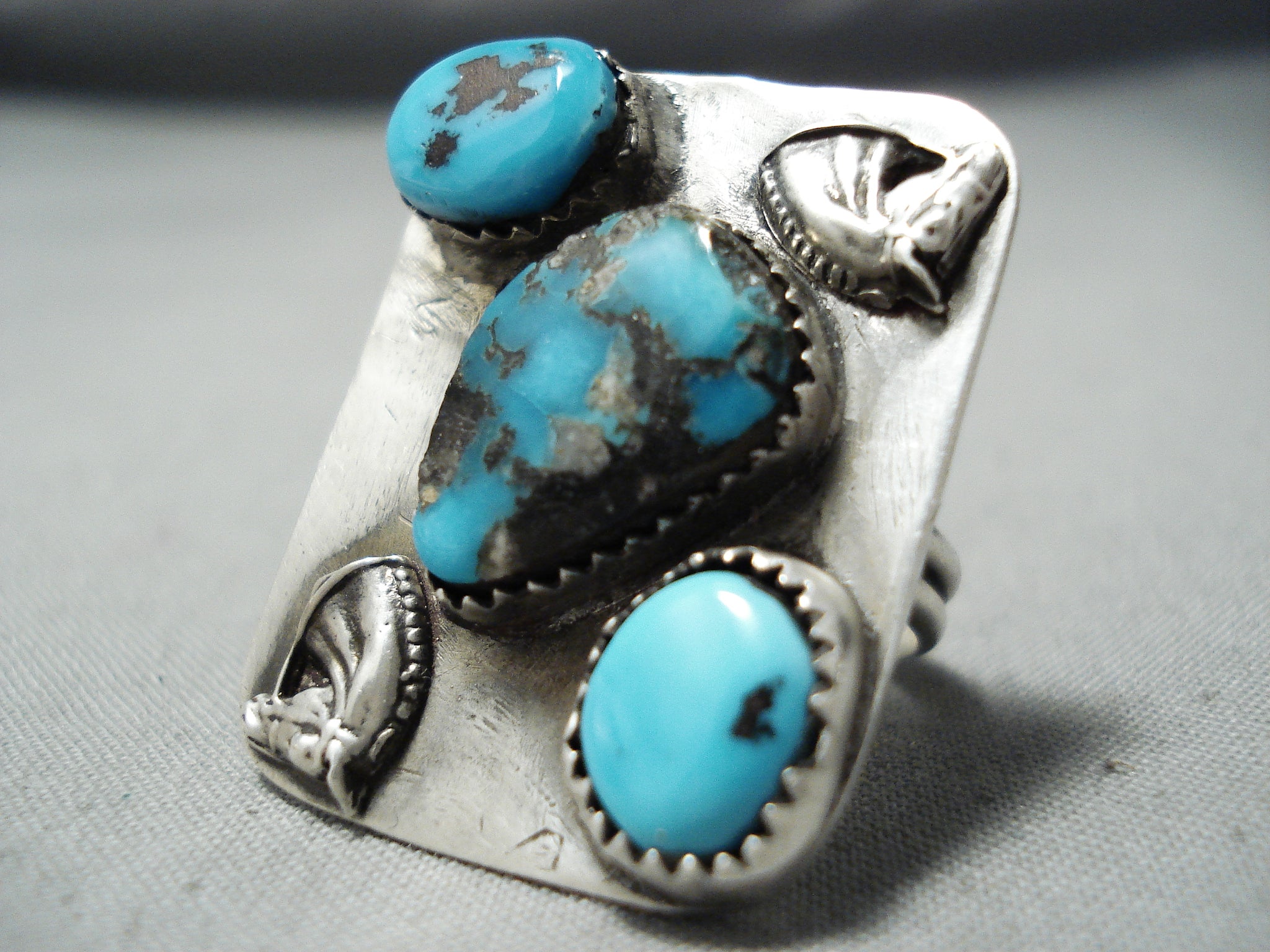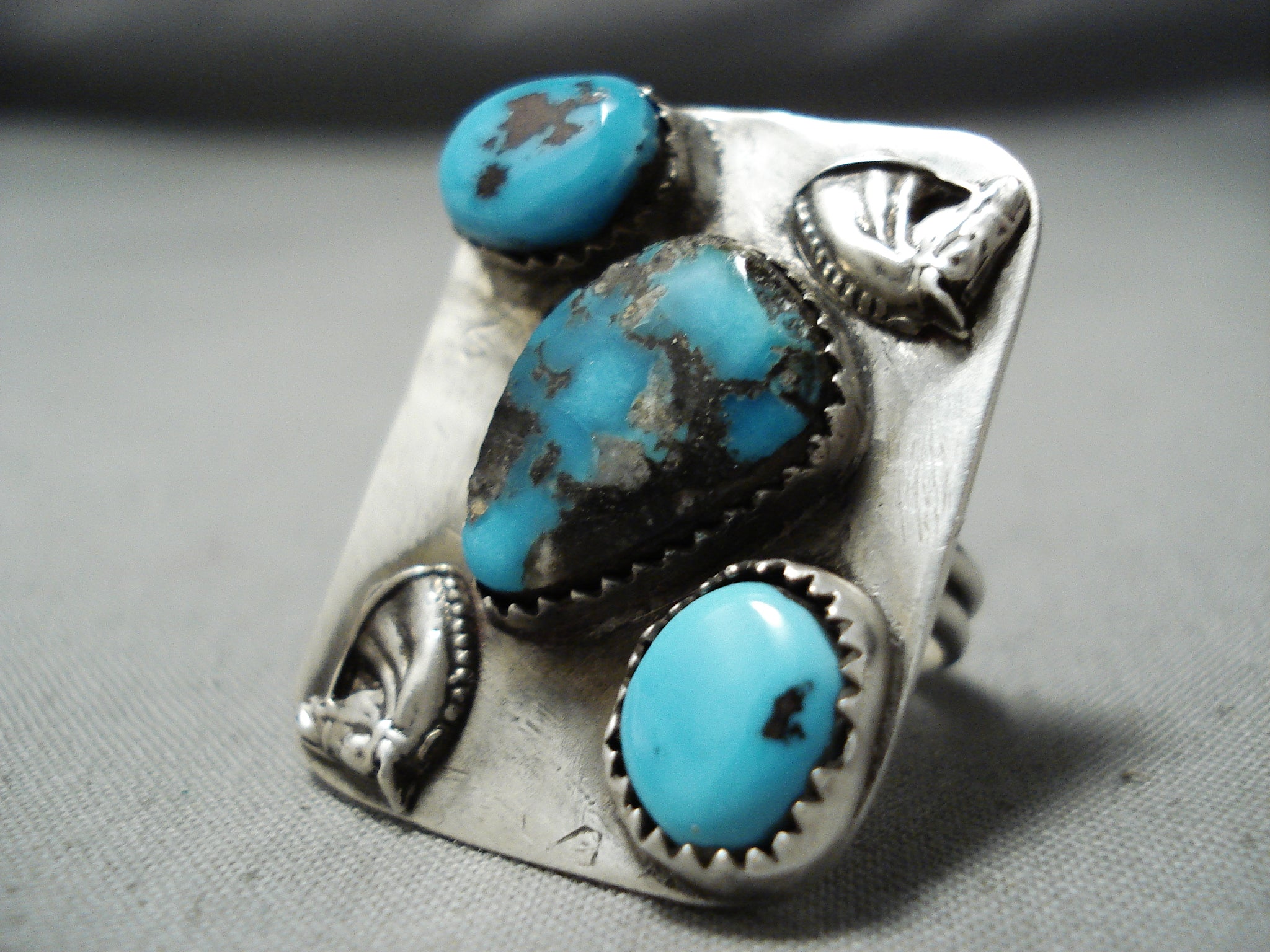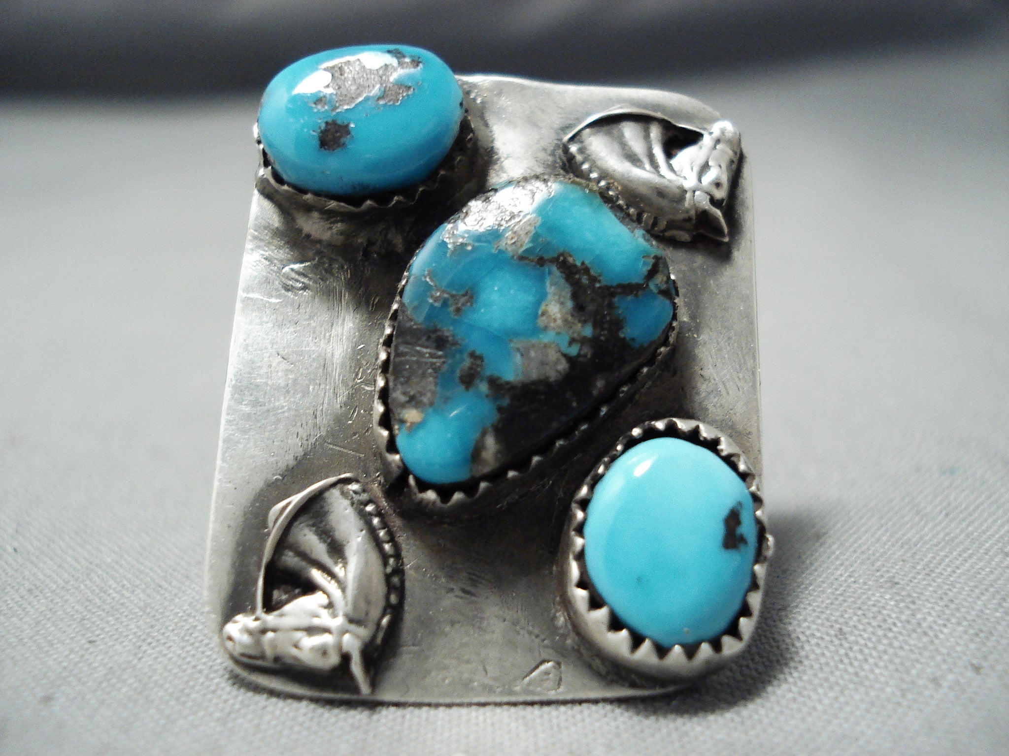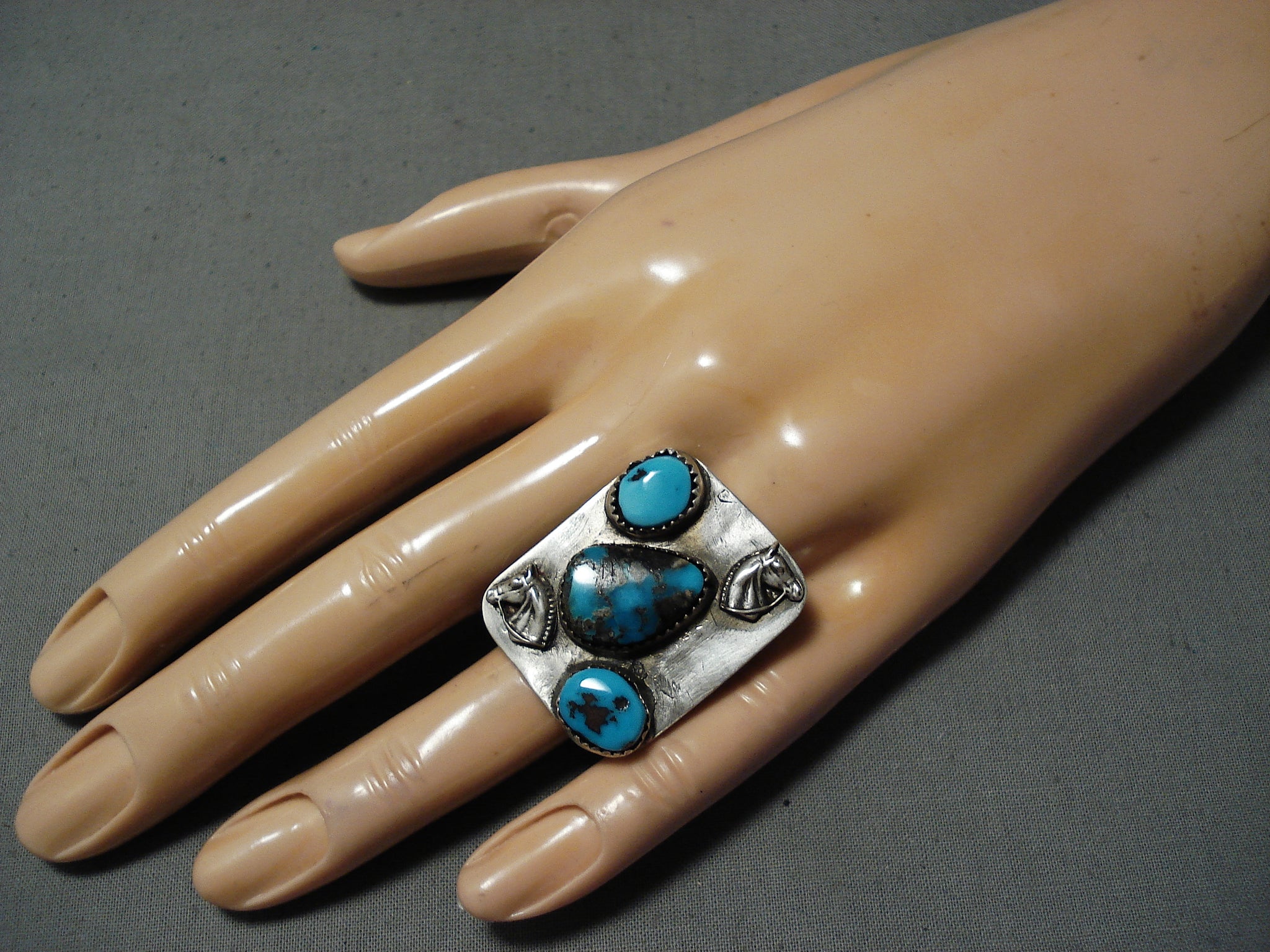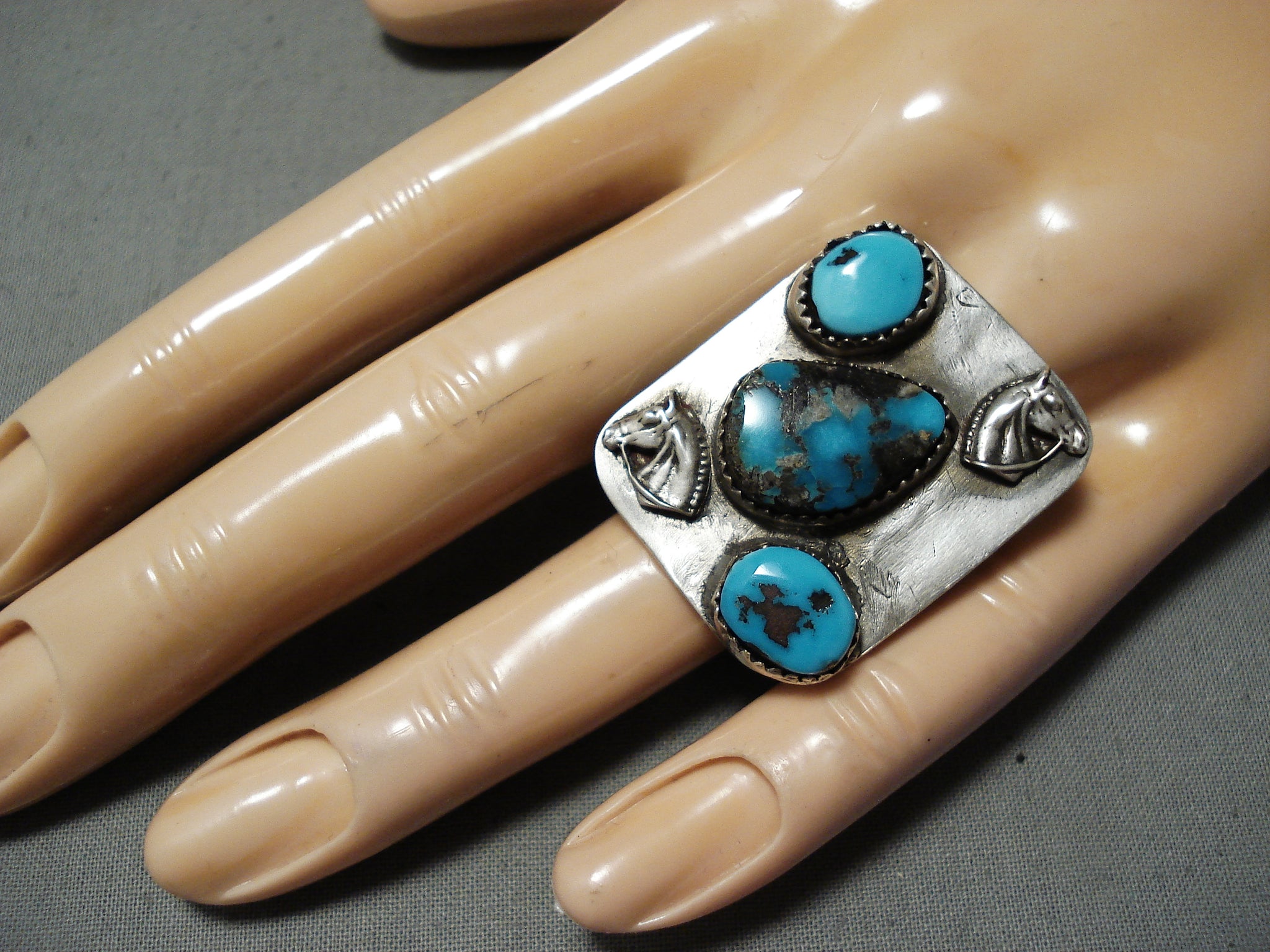 Colossal Vintage Native American Navajo Horse Turquoise Morenci Sterling Silver Ring Old