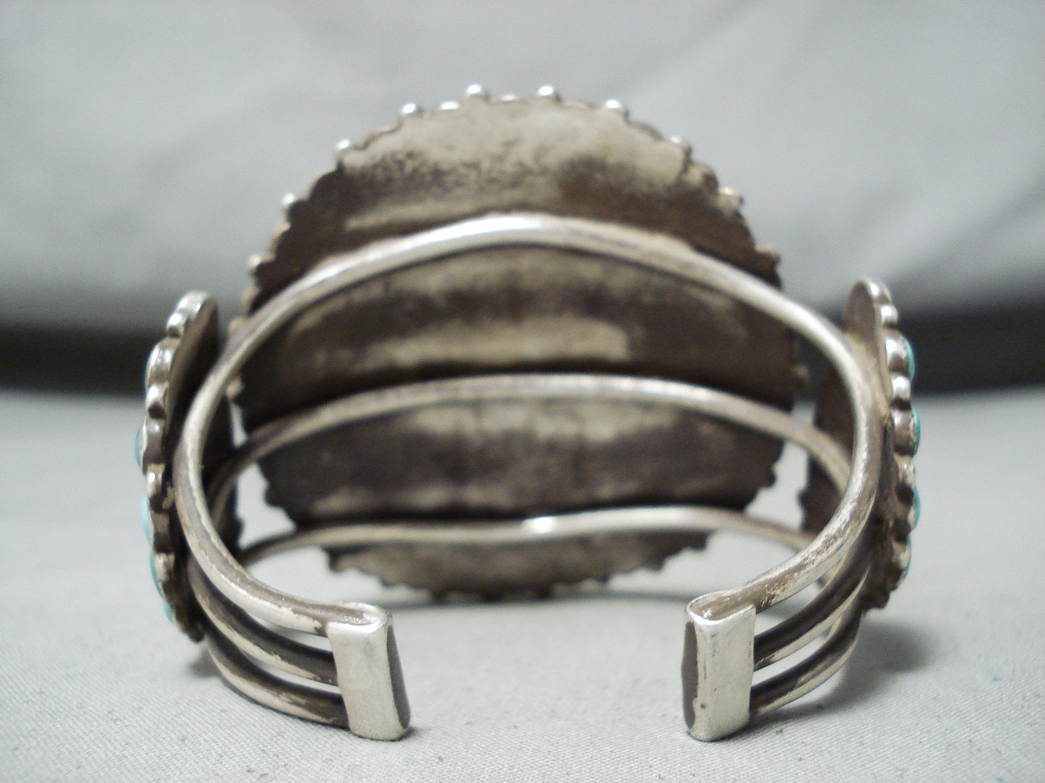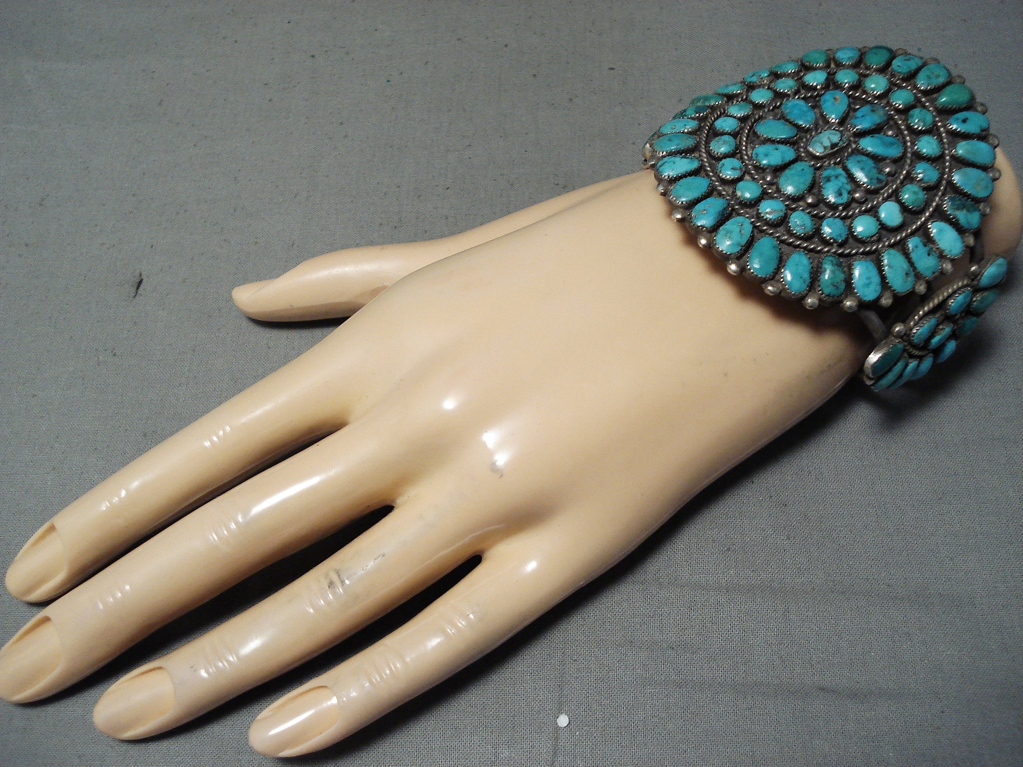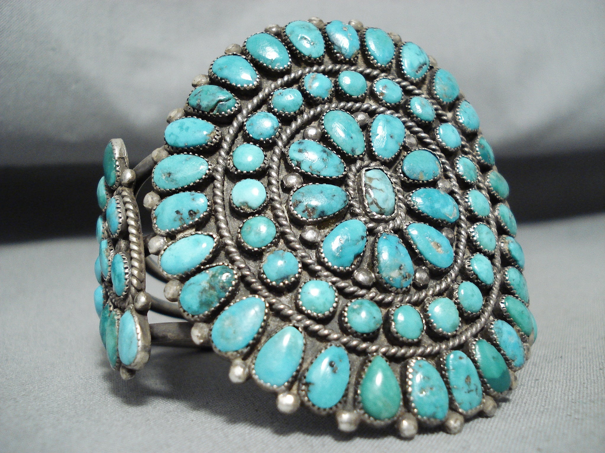 Colossal Vintage Native American Navajo Huge Turquoise Cluster Sterling Silver Bracelet