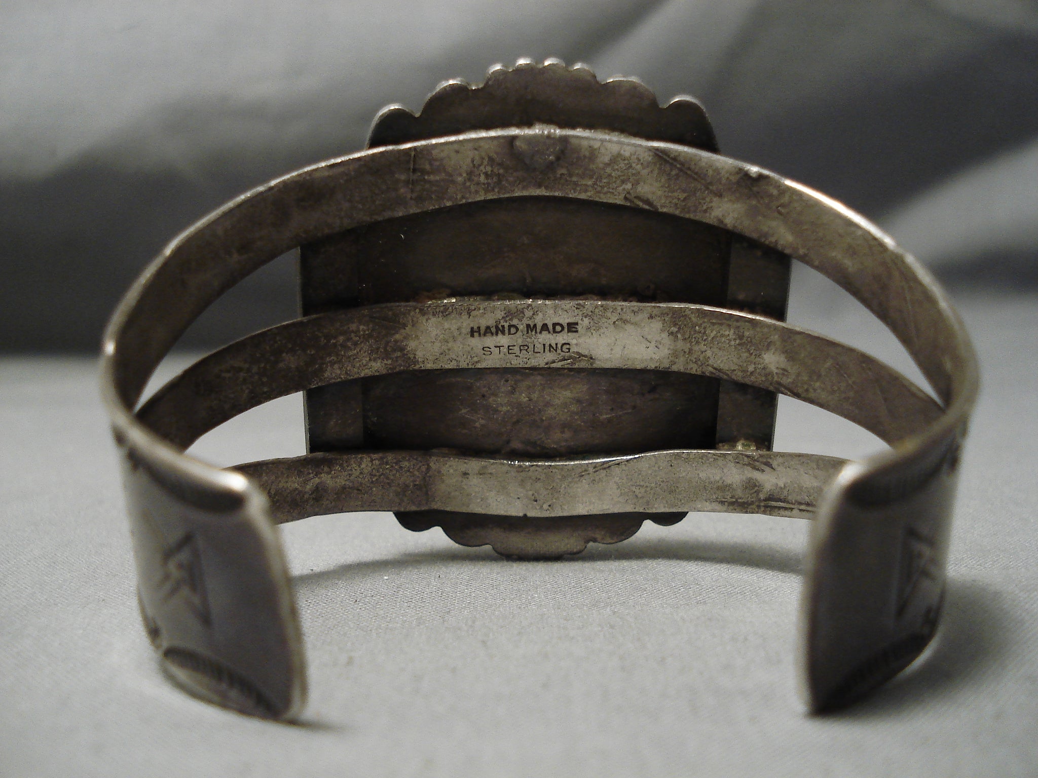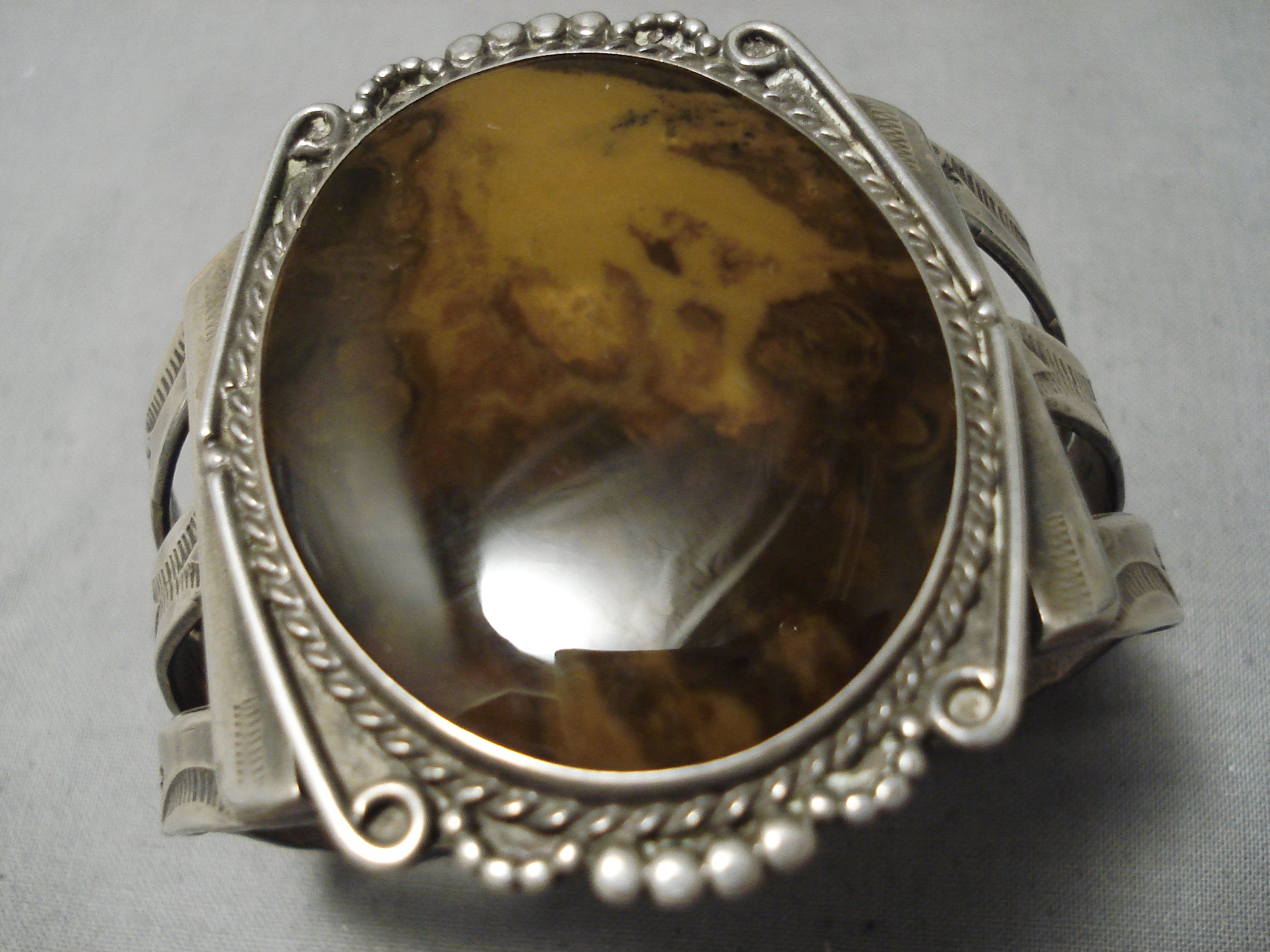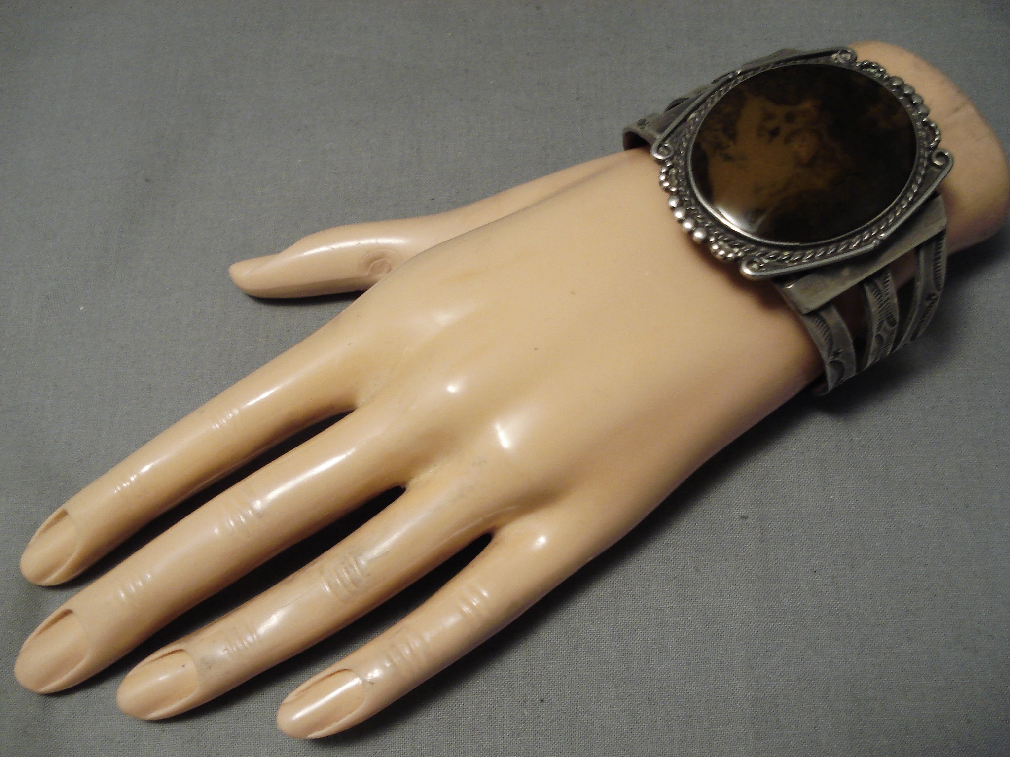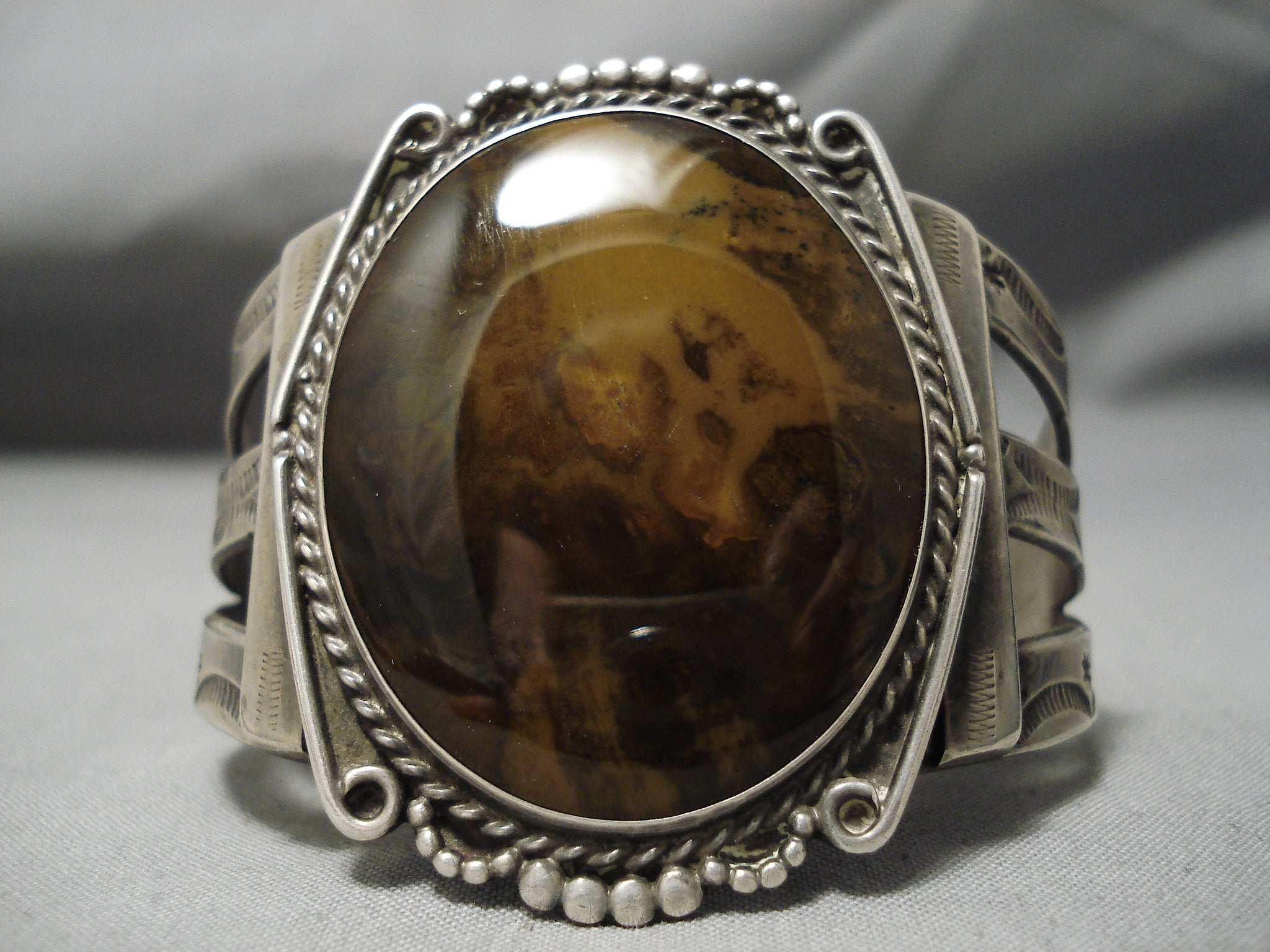 Colossal Vintage Native American Navajo Petrified Wood Sterling Silver Bracelet Old